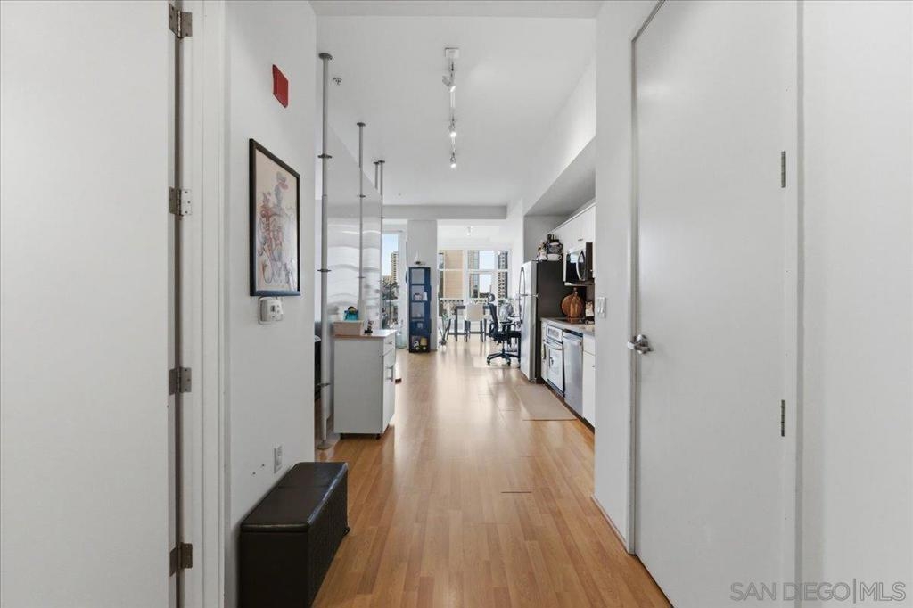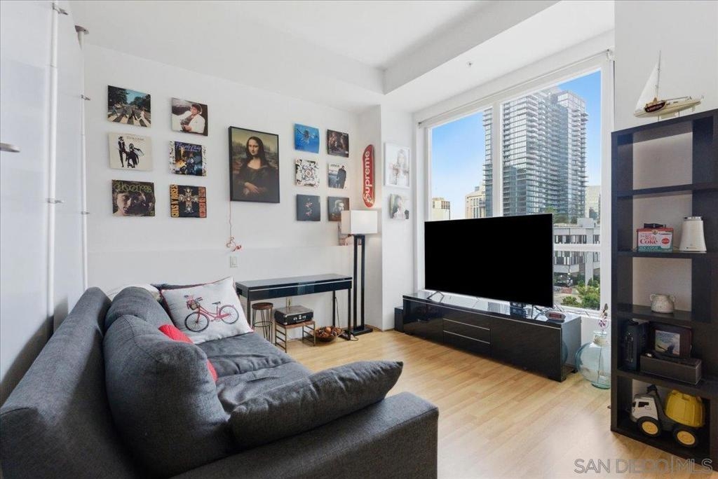 Live in the heart of Little Italy, one of San Diego’s most sought-after and fastest-growing neighborhoods. This spacious 697 sq ft studio that lives like a one-bedroom offers a functional open layout, abundant natural light, and beautiful city views from a private balcony. The thoughtfully designed floor plan features a flexible sleeping area, bright living and dining space surrounded by expansive windows, and a modern kitchen with stainless steel appliances and ample cabinetry. Enjoy unbeatable walkability just steps from the marina, the Embarcadero, and vibrant India Street, known for its renowned restaurants, cafés, and nightlife. Prime location directly across from Fit Athletic Club featuring resort-style amenities including a pool. Quick and convenient access to major freeways makes commuting effortless. Residents enjoy a well-maintained community with a recreation room, community center, and private storage space. The HOA is 106% funded, providing exceptional financial strength and long-term stability. Located in a secure community in one of San Diego’s hottest urban neighborhoods, this home offers the perfect blend of lifestyle, convenience, and investment potential. A rare opportunity to own prime real estate in the center of Little Italy with incredible walkability, modern comfort, and vibrant city living.