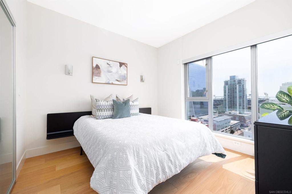 Welcome to this stunning one-bedroom condo in the heart of downtown! Located on a high floor, this modern residence offers breathtaking views of the iconic ballpark, making it a perfect retreat for sports enthusiasts and city dwellers alike. Upon entering, you'll be greeted by an open-concept layout that seamlessly connects the living, dining, and kitchen areas. Floor-to-ceiling windows bathe the space in natural light, while providing panoramic views of the ballpark and the vibrant downtown skyline. The contemporary design features sleek hardwood floors, high ceilings, and stylish finishes throughout. The gourmet kitchen is a chef's dream, equipped with stainless steel appliances, granite countertops, and ample cabinetry. The adjacent dining area provides an inviting space for entertaining guests while taking in the stunning views. Retreat to the spacious bedroom featuring large windows and a cozy atmosphere, perfect for unwinding after a long day.