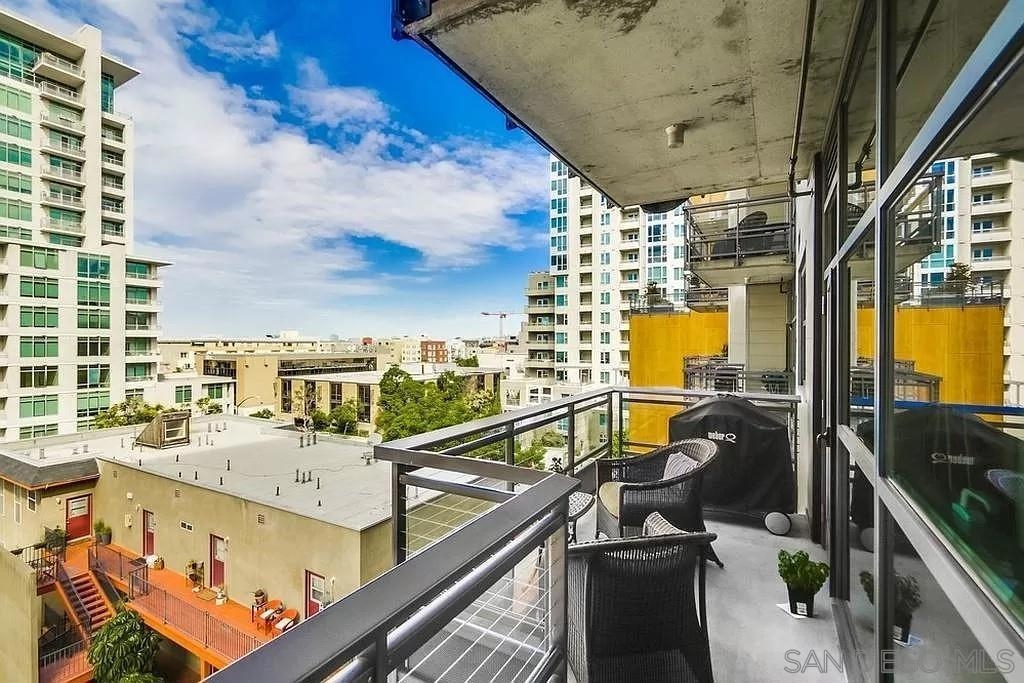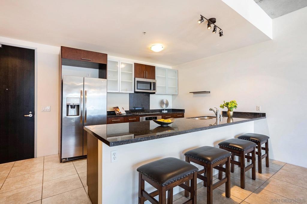 Welcome home to the heart of Little Italy at Aperture! This spacious home boasts the perfect combination of Modern and Urban life. High ceilings & exposed concrete elements, and a large balcony beyond the floor-to-ceiling glass along the Western wall poise you for enjoying awesome Northwest views! Kitchen highlights include the stainless-steel appliances with a gas stove, and an extra-long granite counter that doubles as an eat-in bar or dining area. Your next home also features upgraded lighting, an open floor plan, and a primary bedroom with spacious walk-in closet. Your reserved underground parking space and reasonable monthly HOA Dues round this property out to be a deal! Welcome home to the heart of Little Italy at Aperture! This spacious home boasts the perfect combination of Modern and Urban life. High ceilings & exposed concrete elements, and a large balcony beyond the floor-to-ceiling glass along the Western wall poise you for enjoying awesome Northwest views! Kitchen highlights include the stainless-steel appliances with a gas stove, and an extra-long granite counter that doubles as an eat in bar or dining area. Your next home also features upgraded lighting, an open floor plan, and a primary bedroom with spacious walk-in closet. Your reserved underground parking space and reasonable monthly HOA Dues round this property out to be a deal that won’t last!