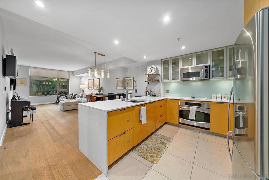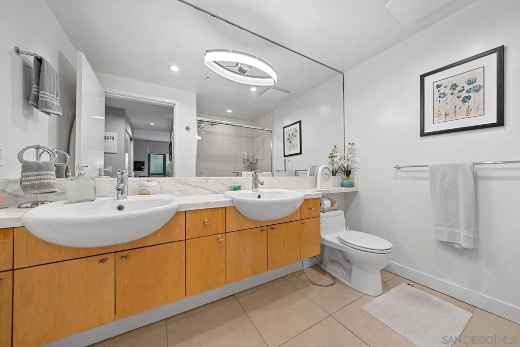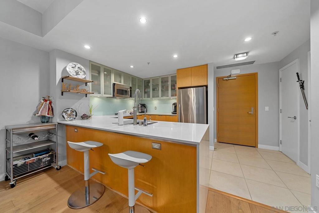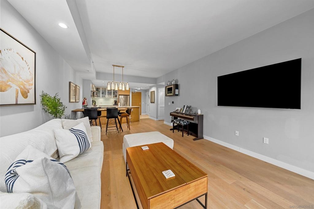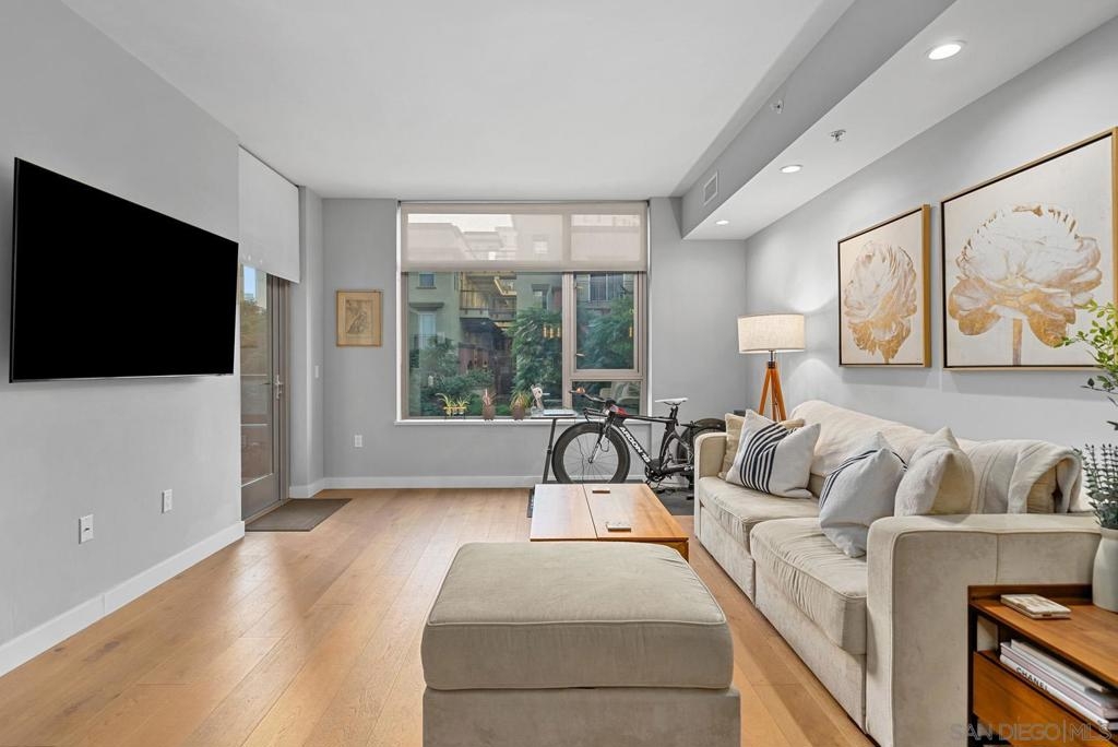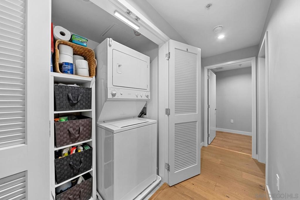 Located in the best building on Cortez Hill, this bright and airy 2 bedroom unit is an absolute gem. West facing so the condo is flooded with natural light during the day and jaw dropping sunsets behind the iconic El Cortez building in the evenings. Best of both worlds. The unit it self has been upgraded throughout with the following; built-in cabinets, extra lighting, cork (wood) flooring. "EcoBee" thermostat that is app operated, recently replaced shower cartridges, purified water in the kitchen. Aria is a first class building that features a pool, jacuzzi, gym, resident's lounge, community bike storage and full time building staff that includes evening security. Location is A+ with Little Italy, Gaslamp Quarter and the Embarcadero all within waking distance so you can enjoy all the cafes, restaurants, bars and farmer's markets Downtown San Diego has to offer.
