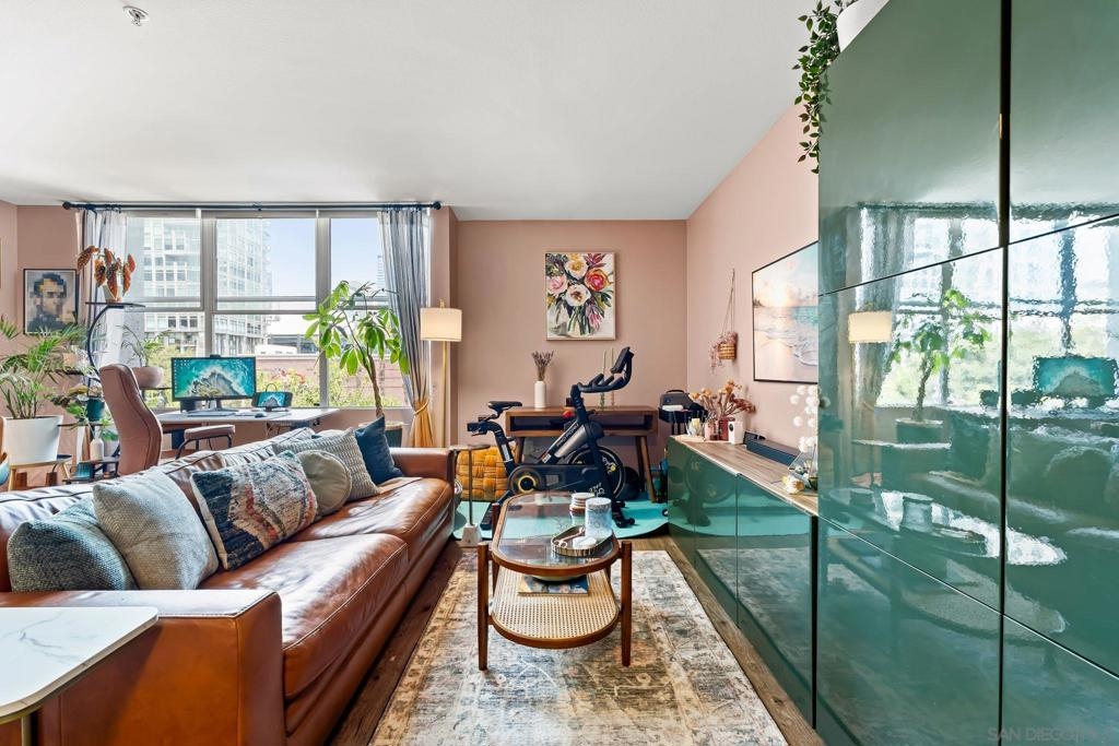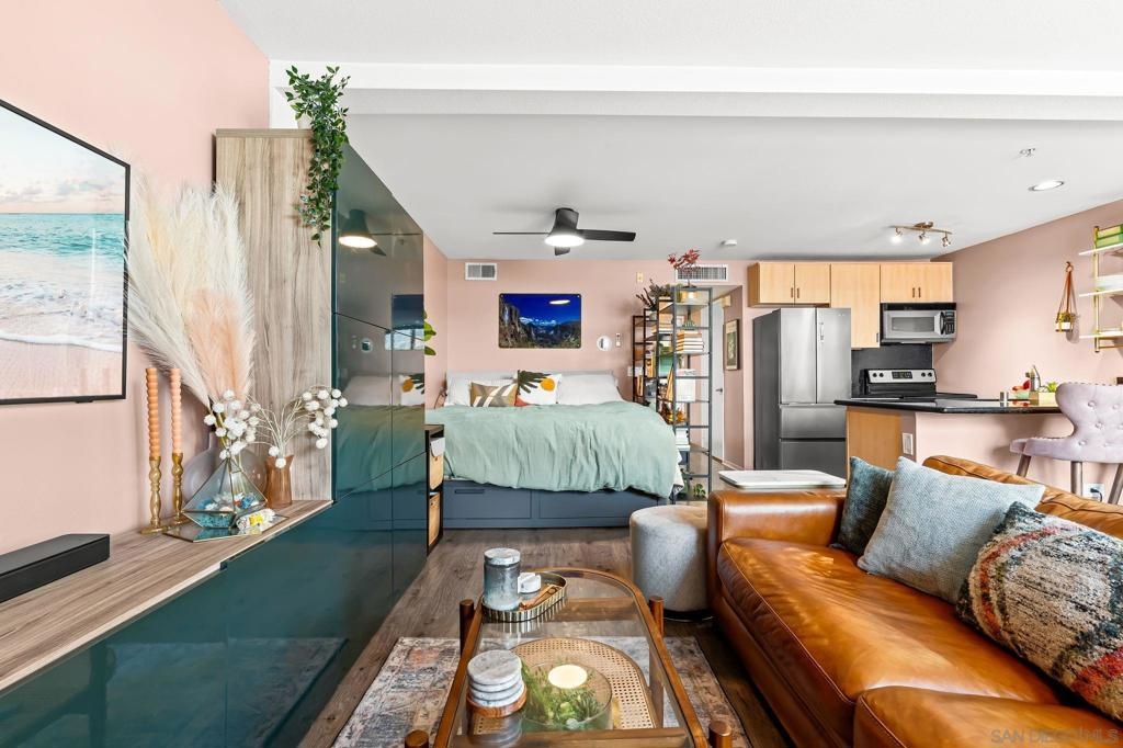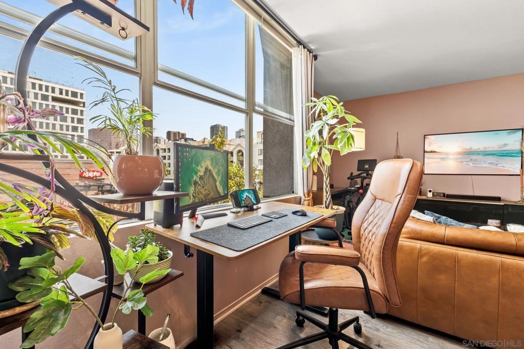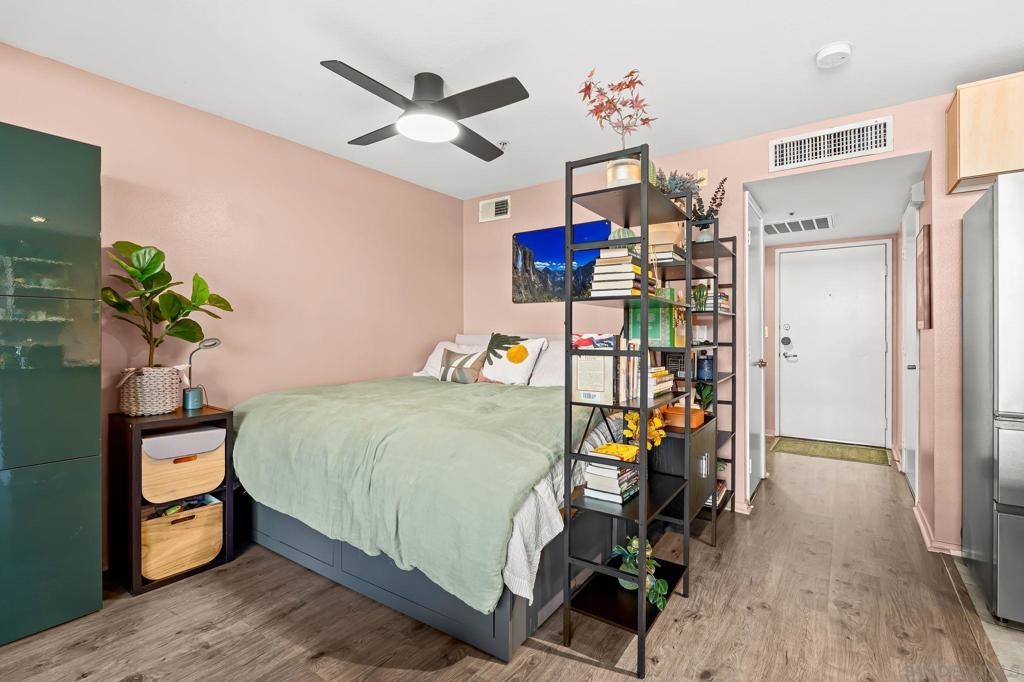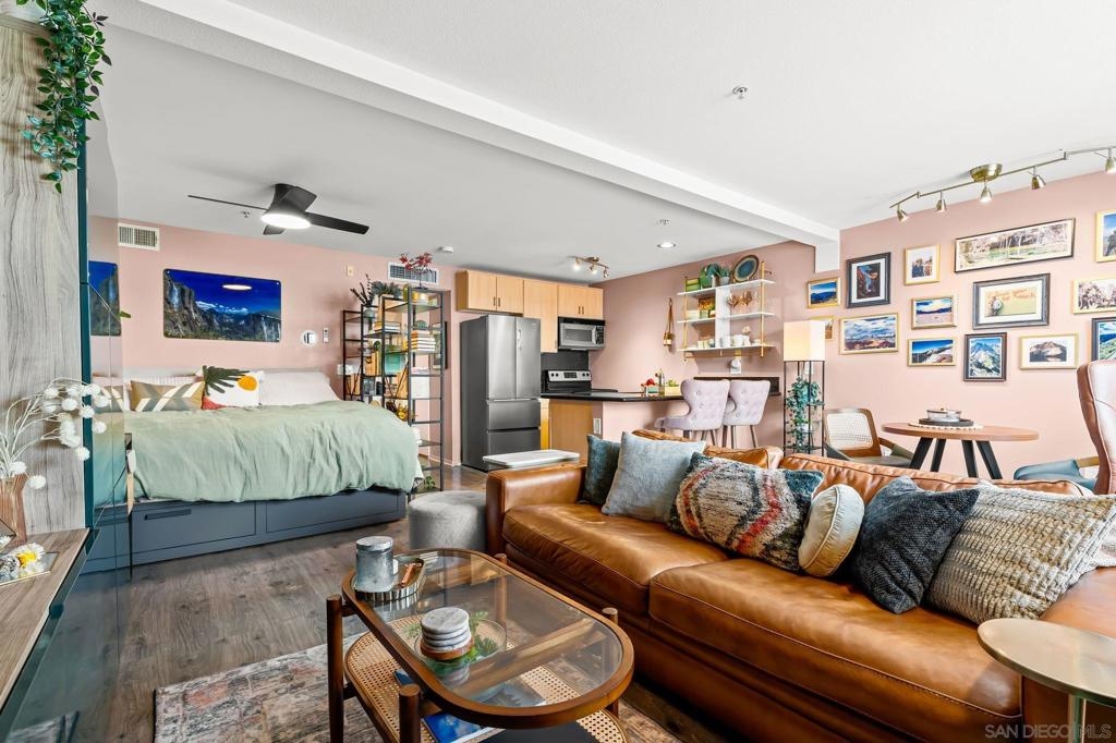 Welcome to your chic, spacious Marina District studio straight out of a magazine spread. Perfectly positioned in the highly sought-after Marina District of Downtown San Diego, this gem puts you at the center of it all. With over 500 square feet of stylish living space, this home offers everything you need to embrace vibrant city living. The thoughtfully designed kitchen boasts stainless steel appliances, including refrigerator, microwave, dishwasher, AND the ultimate urban luxury: a newer Samsung washer and dryer IN-UNIT. Also featured is a spacious custom closet, just shy of a walk-in, adding both style and functionality. This hidden gem is exactly what you’ve been looking for. You’re less than 10 blocks from the iconic Padres Stadium (Petco Park) and within walking distance to an endless array of restaurants, bars, coffee shops, fitness studios, shopping, entertainment, Seaport Village, the Convention Center, and more. The gorgeous Atria community offers a collection of beautiful and convenient amenities, including a 24-hour fitness center, on-site security, a professional conference room, and a stunning 4th-floor terrace complete with lounge seating, a BBQ area, and a cozy, atmospheric fireplace, all set against breathtaking views of the Downtown San Diego skyline. Additional features include a designated bike storage area and a secure package room for your convenience. FHA and VA approved! VA ASSUMABLE LOAN OPPORTUNITY: LOCK IN 2.875%!