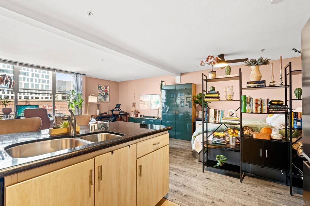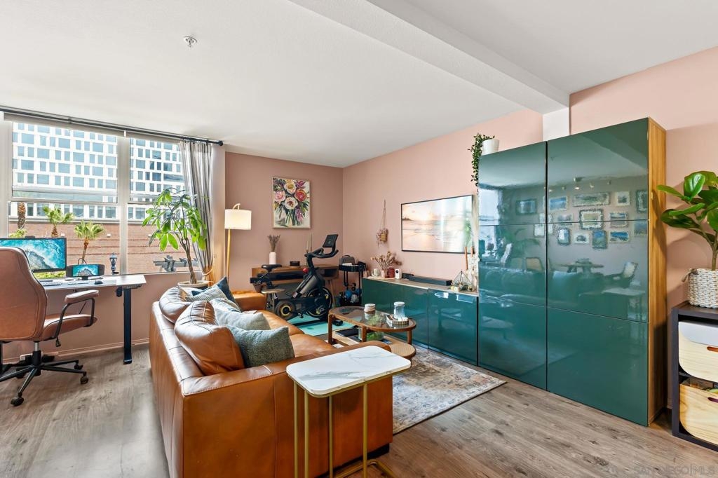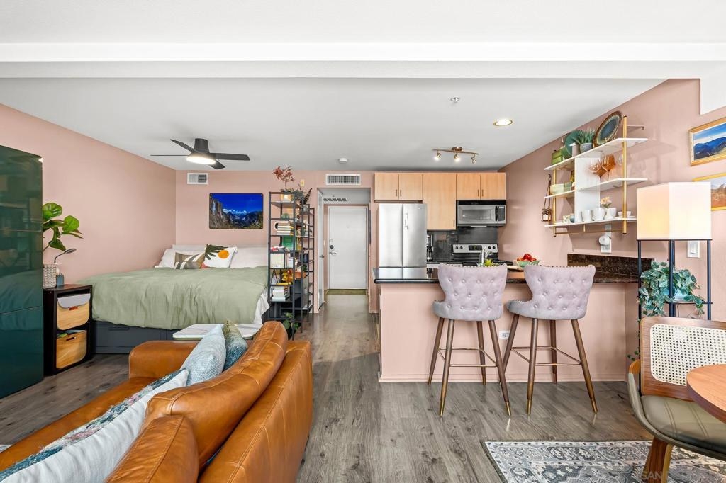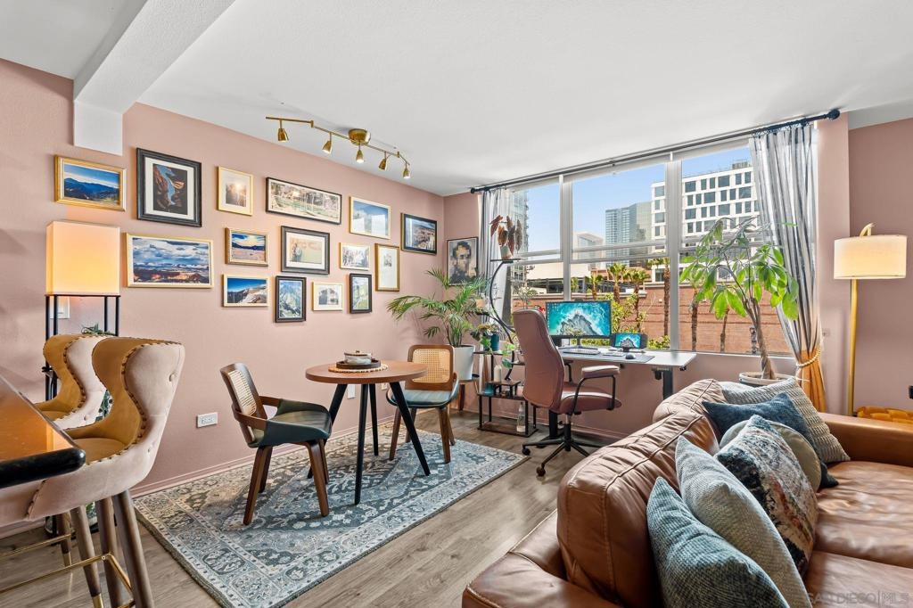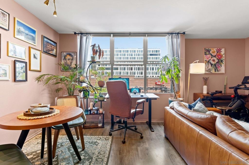 Welcome to your chic, spacious Marina District studio straight out of a magazine spread. Perfectly positioned in the highly sought-after Marina District of Downtown San Diego, this gem puts you at the center of it all. With over 500 square feet of stylish living space, this home offers everything you need to embrace vibrant city living. The thoughtfully designed kitchen boasts stainless steel appliances, including refrigerator, microwave, dishwasher, AND the ultimate urban luxury: a newer Samsung washer and dryer IN-UNIT. Also featured is a spacious custom closet, just shy of a walk-in, adding both style and functionality. This hidden gem is exactly what you’ve been looking for. You’re less than 10 blocks from the iconic Padres Stadium (Petco Park) and within walking distance to an endless array of restaurants, bars, coffee shops, fitness studios, shopping, entertainment, Seaport Village, the Convention Center, and more. The gorgeous Atria community offers a collection of beautiful and convenient amenities, including a 24-hour fitness center, on-site security, a professional conference room, and a stunning 4th-floor terrace complete with lounge seating, a BBQ area, and a cozy, atmospheric fireplace, all set against breathtaking views of the Downtown San Diego skyline. Additional features include a designated bike storage area and a secure package room for your convenience. FHA and VA approved! VA ASSUMABLE LOAN OPPORTUNITY: LOCK IN 2.875%!