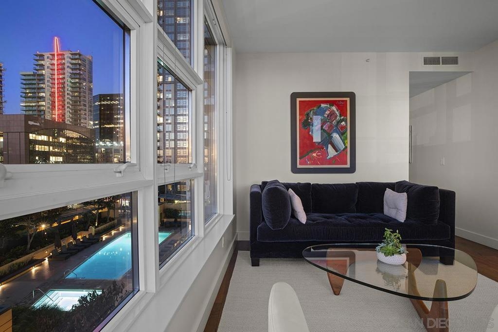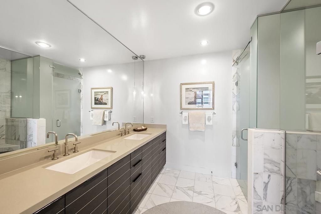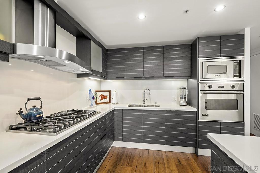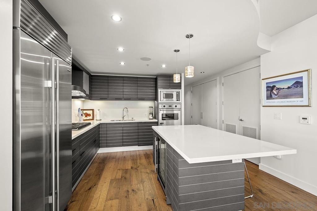 Bask in beautiful northwest views of Waterfront Park, city lights and the bay in this gorgeous, coveted 2 bedroom plus den/office corner residence in Bayside (2 balconies to boot)! Boasting expansive 9’ ceilings with expansive windows, flooding the space with natural light and capturing the views from every angle. Enjoy newer premier wide-plank “Nature Reserve Collection” engineered wood floor throughout, the open-concept kitchen is a chef’s dream, featuring premium stainless appliances by Viking and Subzero (plus upgraded beverage cooler), Caesarstone quartz countertops, Snaidero Italian cabinetry, and oversized center island, perfect for entertaining. The primary bedroom offers its own private balcony, professionally organized dual closets, and a spa-inspired ensuite bathroom with dual vanity, quartz counter, and walk-in shower. PLUS laundry closet with extra storage and stacked Whirlpool washer and dryer, great side-by-side parking, motorcycle spot, and a private storage unit. Experience luxury, style, and comfort all in one incredible home! Bask in beautiful northwest views of Waterfront Park, city lights and the bay in this gorgeous, coveted 2 bedroom plus den/office corner residence in Bayside (2 balconies to boot)! Boasting expansive 9’ ceilings with expansive windows, flooding the space with natural light and capturing the views from every angle. Enjoy newer premier wide-plank “Nature Reserve Collection” engineered wood floor throughout, the open-concept kitchen is a chef’s dream, featuring premium stainless appliances by Viking and Subzero (plus upgraded beverage cooler), Caesarstone quartz countertops, Snaidero Italian cabinetry, and oversized center island, perfect for entertaining. The primary bedroom offers its own private balcony, professionally organized dual closets, and a spa-inspired ensuite bathroom with dual vanity, quartz counter, and walk-in shower. PLUS laundry closet with extra storage and stacked Whirlpool washer and dryer, great side-by-side parking, motorcycle spot, and a private storage unit. Experience luxury, style, and comfort all in one incredible home! Old MLS listings quoted builder brochure/assessor record which showed 1474 sq.ft., assessor’s record now shows 1319 sq.ft.