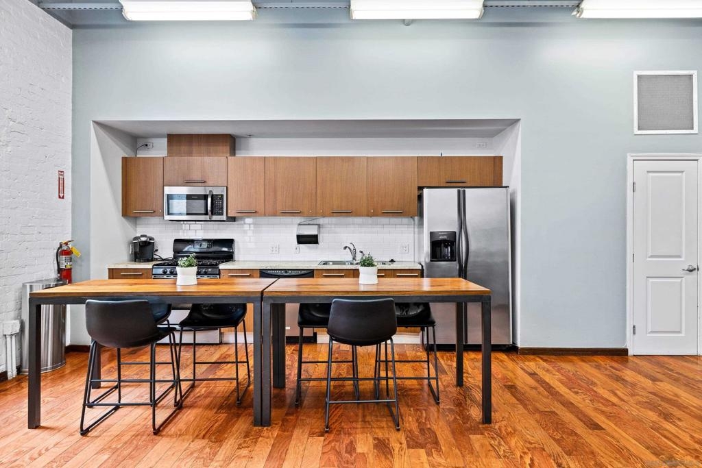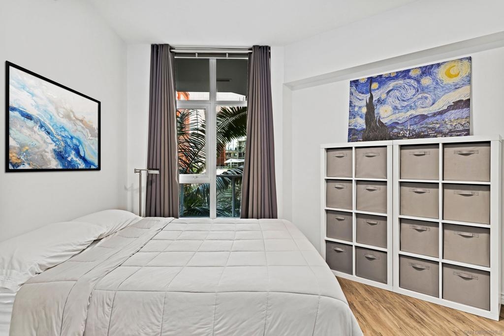 Welcome to Breeza, one of the most desirable residences in the Downtown's Little Italy neighborhood. This is one of only six oversized one-bedroom homes in the entire community—making it a truly rare opportunity and arguably one of the finest one-bedroom residences in the neighborhood. This beautifully maintained home showcases pride of ownership throughout and features a bright open-concept floor plan designed for comfortable living and effortless entertaining. The chef-inspired kitchen is centered around a large granite island with breakfast bar, complemented by stainless steel appliances, abundant cabinetry, and generous counter space. Soaring 10-foot ceilings in both the living room and bedroom enhance the sense of space, while beautiful wood flooring and large windows create a light and inviting atmosphere. The spacious bedroom offers direct access to the well-appointed bathroom with dual vanities, creating a convenient and functional layout. Step outside to your private oversized balcony, perfectly positioned among mature whispering palms overlooking Breeza’s award-winning courtyard—providing a peaceful and private retreat rarely found in urban living. Additional highlights include P-1 parking, new plumbing hardware, new washer and dryer, and updated lighting. Ideally located at the southwest edge of Little Italy and just one block from the waterfront, this home offers one of downtown San Diego’s most walkable lifestyles, moments from the scenic San Diego Bay and the beautiful Waterfront Park. Residents of Breeza enjoy a welcoming community atmosphere and resort-style amenities, including a heated pool and spa, fully equipped fitness center, community lounge, business center, Wi-Fi in common areas, on-site professional management, and a spectacular 8th-floor rooftop terrace with unobstructed views of the bay, sunsets, the historic Star of India, and the downtown skyline. Just steps from Little Italy’s celebrated restaurants, cafés, and the renowned weekly farmers market, and moments from Waterfront Park featuring playgrounds, open green space, pickleball and basketball courts, and a dog park. A rare and exceptional opportunity in one of downtown San Diego’s most sought-after communities—priced to sell.