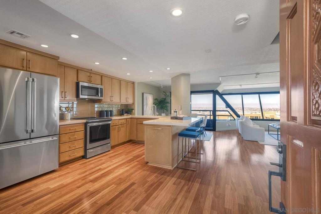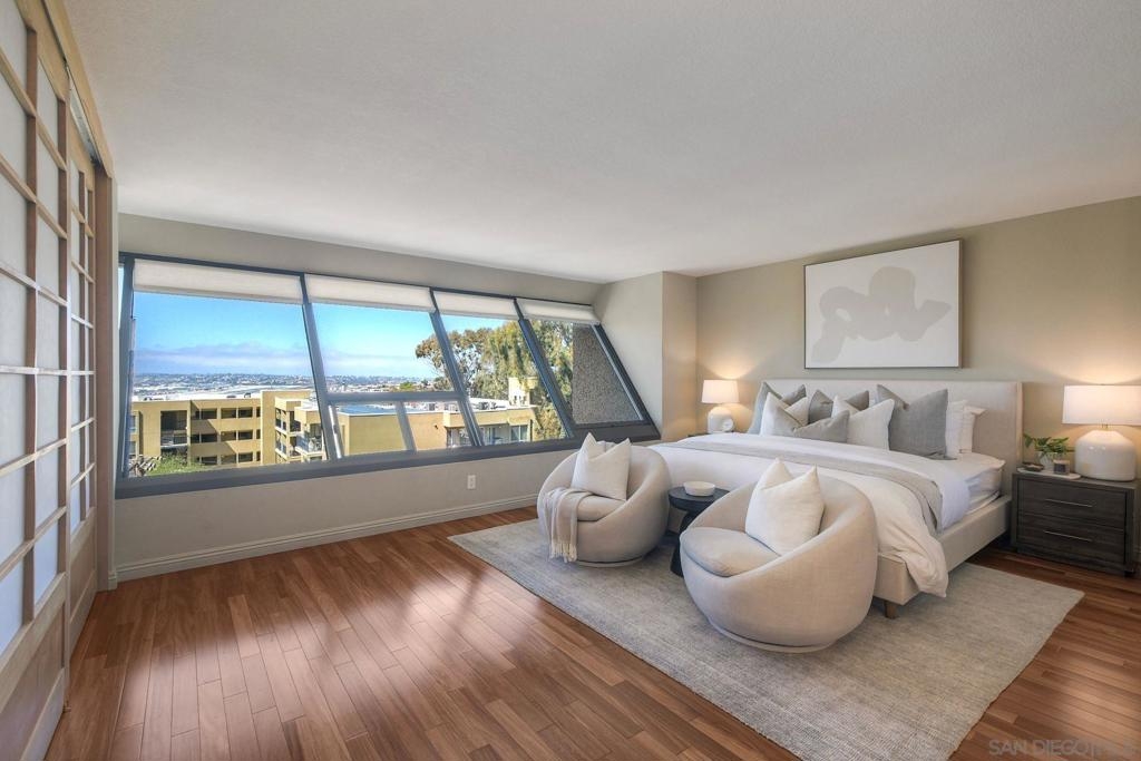 Welcome to The Brittany Tower where luxury living meets comfort and convenience. The views from your very own 6th floor sky lounge home are not only stunning, they nourish the heart and soul. Offering near unobstructed sights of the San Diego bay, the airport and beyond. The views are even more dramatic during sunrise and sunset. Thanks to San Diego’s microclimate, the ever changing clouds, sunlight, moonlight, the twinkling city lights and stars are yours for the viewing. But the real drama comes annually with a dazzling display of 4th of July fireworks! All this viewable from the comfort of your home. This unit has an open floor plan with beautiful wood floors, custom automatic electric shades, a remodeled kitchen, a new 2024 induction oven and range for precision cooking, a large renovated primary bathroom with dual sinks, a huge walk-in shower with built-in seating and it's own separate shower nozzle for comfortable washing & rinsing, a large primary walk-in closet, a redesigned 3rd bedroom/den and your own Tesla EV charging station. The many amenities include: a full time front desk staff to assist with deliveries, secure building and garage, gym, sauna, pool, indoor spa, bbq, a large clubhouse/meeting room and lovely guest suite that can be reserved for your guests at a nominal fee, and more. Welcome to comfortable luxury living in the heart of Banker's Hill! Welcome to The Brittany Tower where luxury living meets comfort and convenience. The views from your very own 6th floor sky lounge home are not only stunning, they nourish the heart and soul. Offering near unobstructed sights of the San Diego bay, the airport and beyond. The views are even more dramatic during sunrise and sunset. Thanks to San Diego’s microclimate, the ever changing clouds, sunlight, moonlight, the twinkling city lights and stars are yours for the viewing. But the real drama comes annually with a dazzling display of 4th of July fireworks! All this viewable from the comfort of your home. This unit has an open floor plan with beautiful wood floors, custom automatic electric shades, a remodeled kitchen, a new 2024 induction oven and range for precision cooking, a large renovated primary bathroom with dual sinks, a huge walk-in shower with built-in seating and it's own separate shower nozzle for comfortable washing & rinsing, a large primary walk-in closet, a redesigned 3rd bedroom/den and your own Tesla EV charging station. The many amenities include: a full time front desk staff to assist with deliveries, secure building and garage, gym, sauna, pool, indoor spa, bbq, a large clubhouse/meeting room and lovely guest suite that can be reserved for your guests at a nominal fee, and more. Welcome to comfortable luxury living in the heart of Banker's Hill! Buyer is advised to independently verify the accuracy of all information through personal inspection, with appropriate professional advice and consultation.