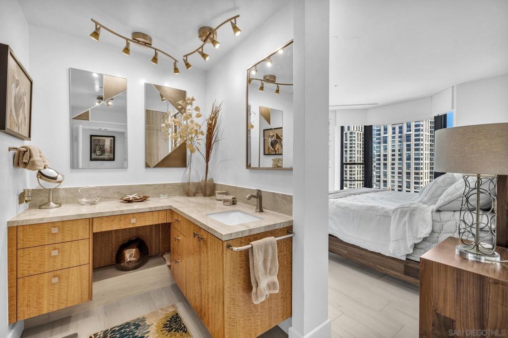 CityFront Terrace Penthouse – True Top Floor Luxury Living – Experience the pinnacle of downtown living in this updated northeast corner penthouse at CityFront Terrace. Positioned on the true top floor, this magnificent residence is bathed in natural light and showcases panoramic views of the city skyline, San Diego Bay, and the Coronado Bridge. Every detail has been thoughtfully customized, from the cabinetry with exceptional storage to the designer counters, beautifully tiled bathrooms, and stylish new recessed and pendant lighting. The home also features select new appliances and a spacious floor plan that flows seamlessly onto a large private terrace, perfect for entertaining or savoring the sparkling city lights. Continued below... Located in the highly desirable Marina District, residents enjoy a vibrant lifestyle just steps to shops, acclaimed restaurants, Seaport Village, and the bayfront’s scenic walking paths. CityFront Terrace offers some of the finest amenities in downtown, including two resort-style pools, a spa, sauna, expansive gym with aerobics studio, outdoor grilling and dining areas, entertainment room, 24-hour staffed lobby, freight elevator, and optional valet parking. Adding to its appeal, CityFront Terrace boasts one of the lowest HOA fees among luxury high-rises and the strongest reserves in downtown. This is a rare opportunity to own a true penthouse residence in one of San Diego’s most prestigious communities.