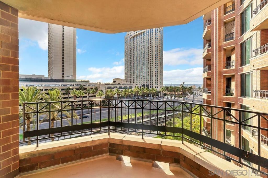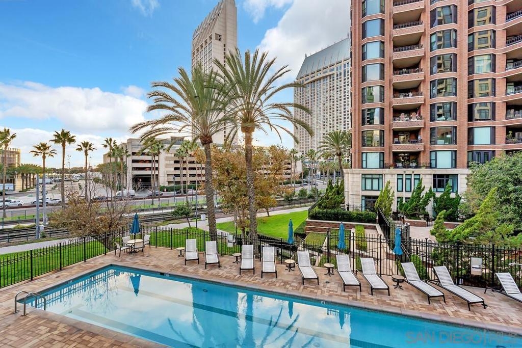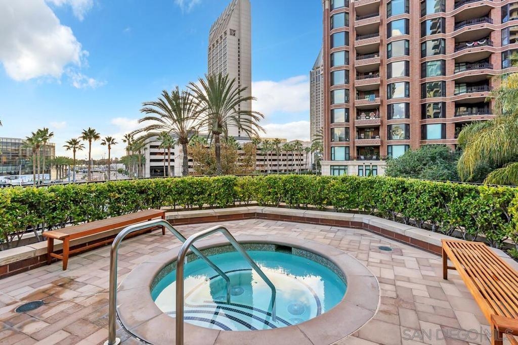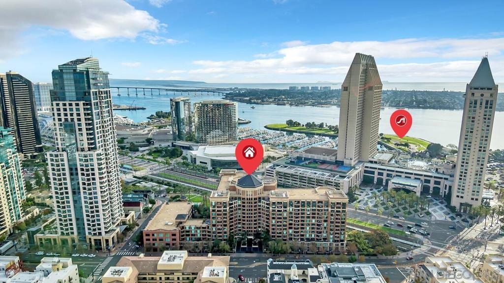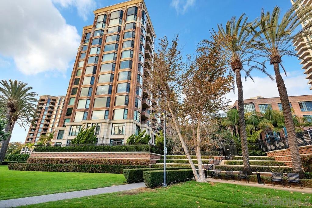 City Front Terrace residence 618, is a west facing 1 bedroom plus a den floor plan situated in the heart of the desirable Marina District. This unit features hardwood flooring, stainless steel appliances, custom cabinetry, California Closets system, jetted tub, in-unit washer and dryer, and beautiful private balcony, offering breathtaking city/harbor views. The unit also includes 1 assigned valet parking space. This building has 21,565 sq. ft. of common space with amenities such as two heated pools, heated spa, pavilion with BBQ, wet bar, outdoor dining, and fire pit. The building includes a common 1,600 sq. ft. entertainment room that is equipped with a full kitchen and TV with surround sound. Workout in the well-equipped fitness center spanning over 3,500 sq. ft. with showers and saunas conveniently adjacent. Residents also benefit from assigned storage lockers, bike storage rooms, electric vehicle charging availability, and a range of services such as valet parking from 6 am to midnight, 24-hour front desk staff, and dry cleaning drop-off and pick-up. This is the building and the home you have been waiting for!