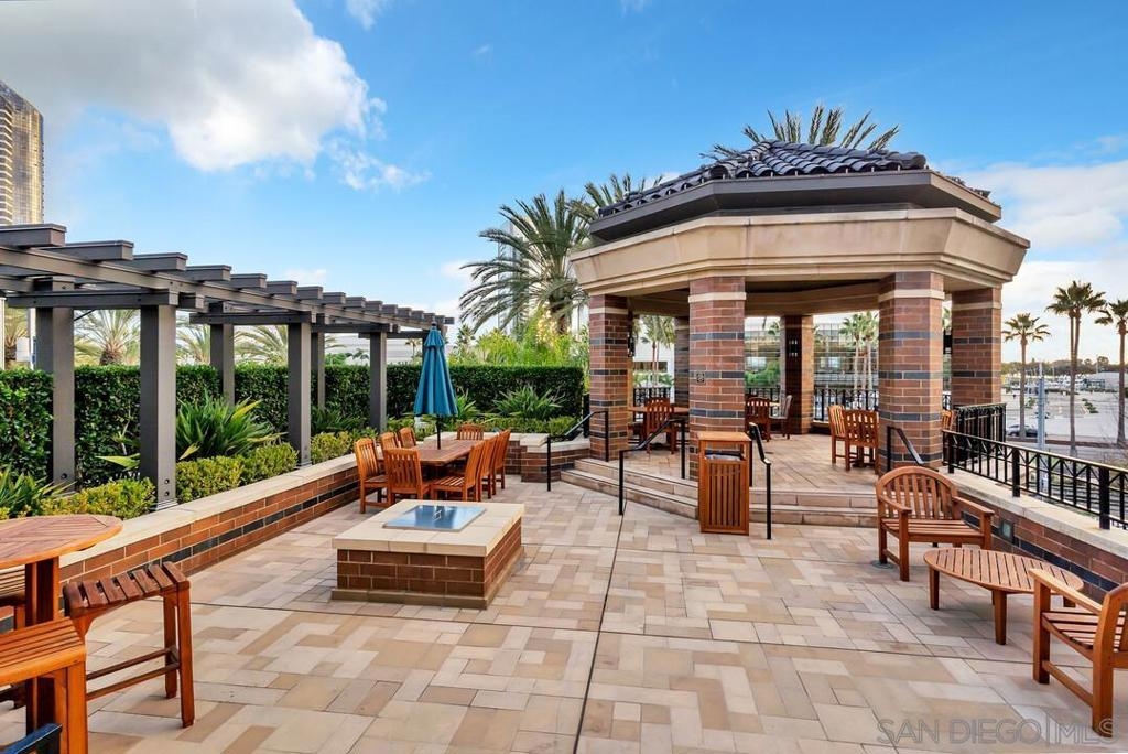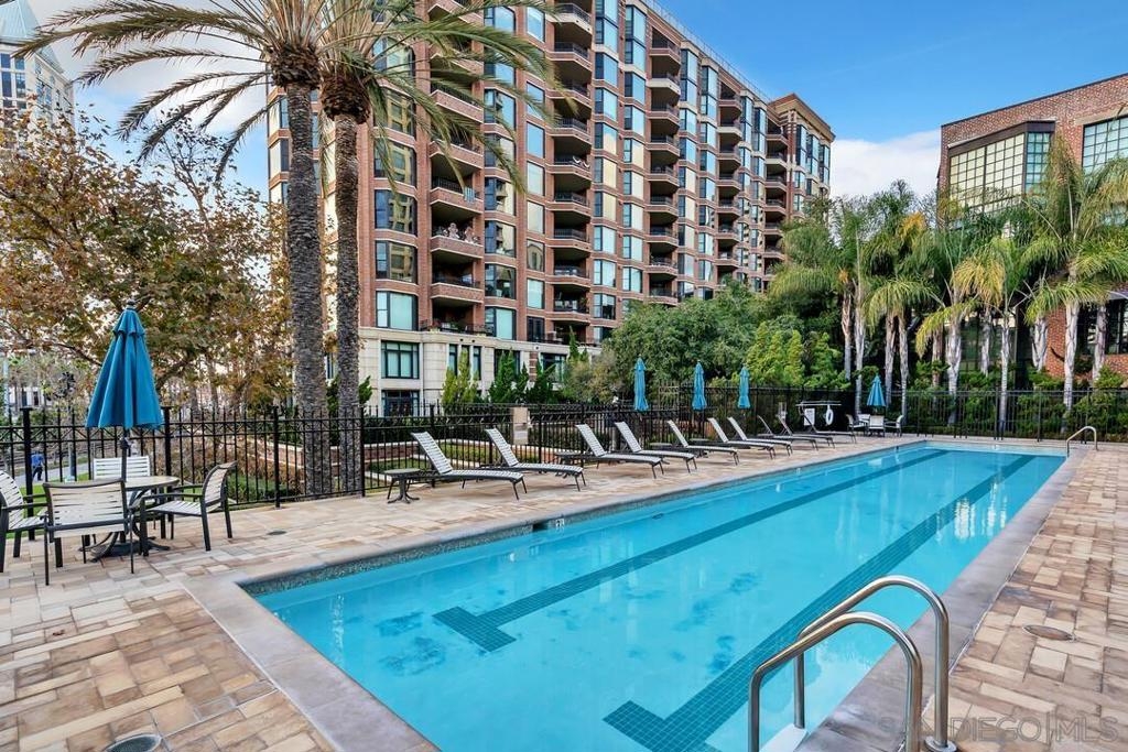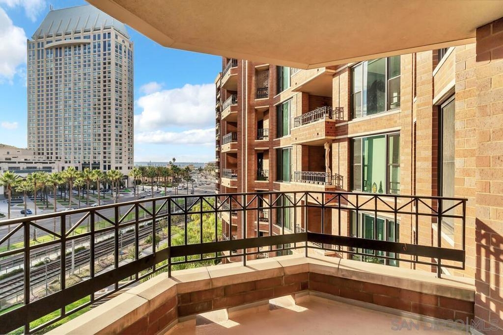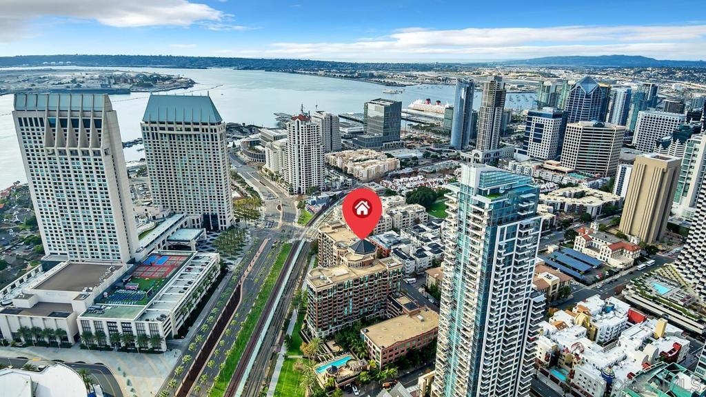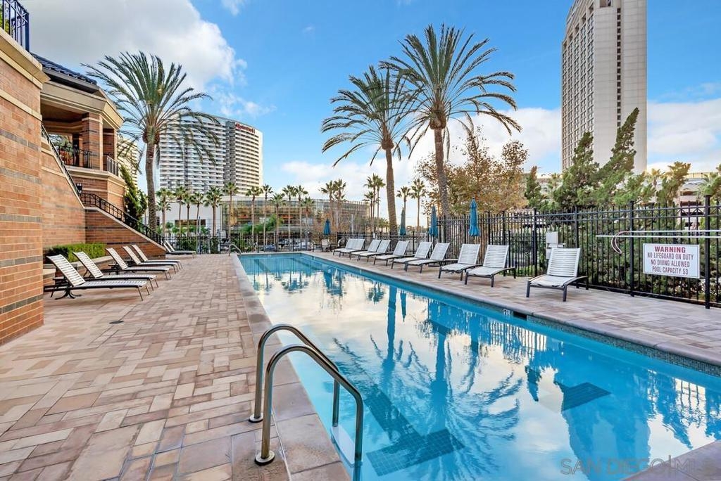 City Front Terrace residence 618, is a west facing 1 bedroom plus a den floor plan situated in the heart of the desirable Marina District. This unit features hardwood flooring, stainless steel appliances, custom cabinetry, California Closets system, jetted tub, in-unit washer and dryer, and beautiful private balcony, offering breathtaking city/harbor views. The unit also includes 1 assigned valet parking space. This building has 21,565 sq. ft. of common space with amenities such as two heated pools, heated spa, pavilion with BBQ, wet bar, outdoor dining, and fire pit. The building includes a common 1,600 sq. ft. entertainment room that is equipped with a full kitchen and TV with surround sound. Workout in the well-equipped fitness center spanning over 3,500 sq. ft. with showers and saunas conveniently adjacent. Residents also benefit from assigned storage lockers, bike storage rooms, electric vehicle charging availability, and a range of services such as valet parking from 6 am to midnight, 24-hour front desk staff, and dry cleaning drop-off and pick-up. This is the building and the home you have been waiting for!