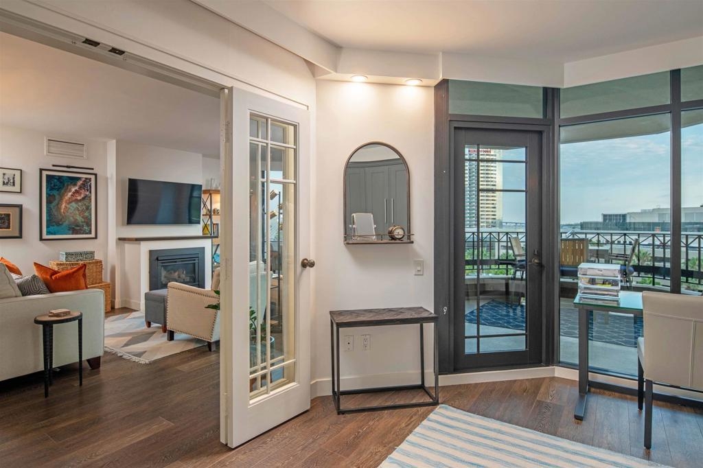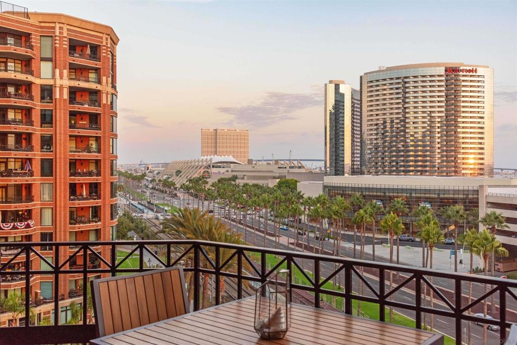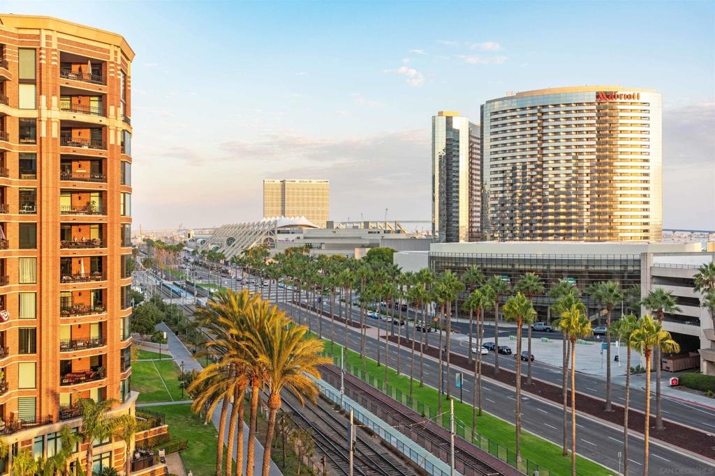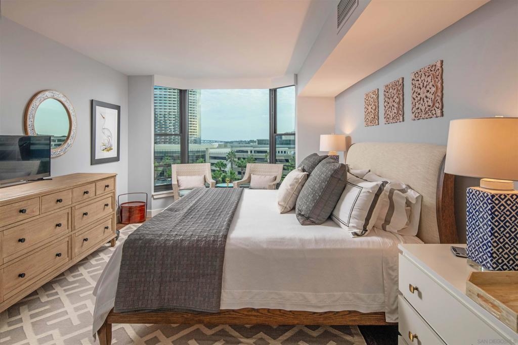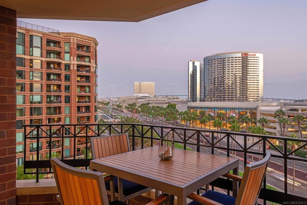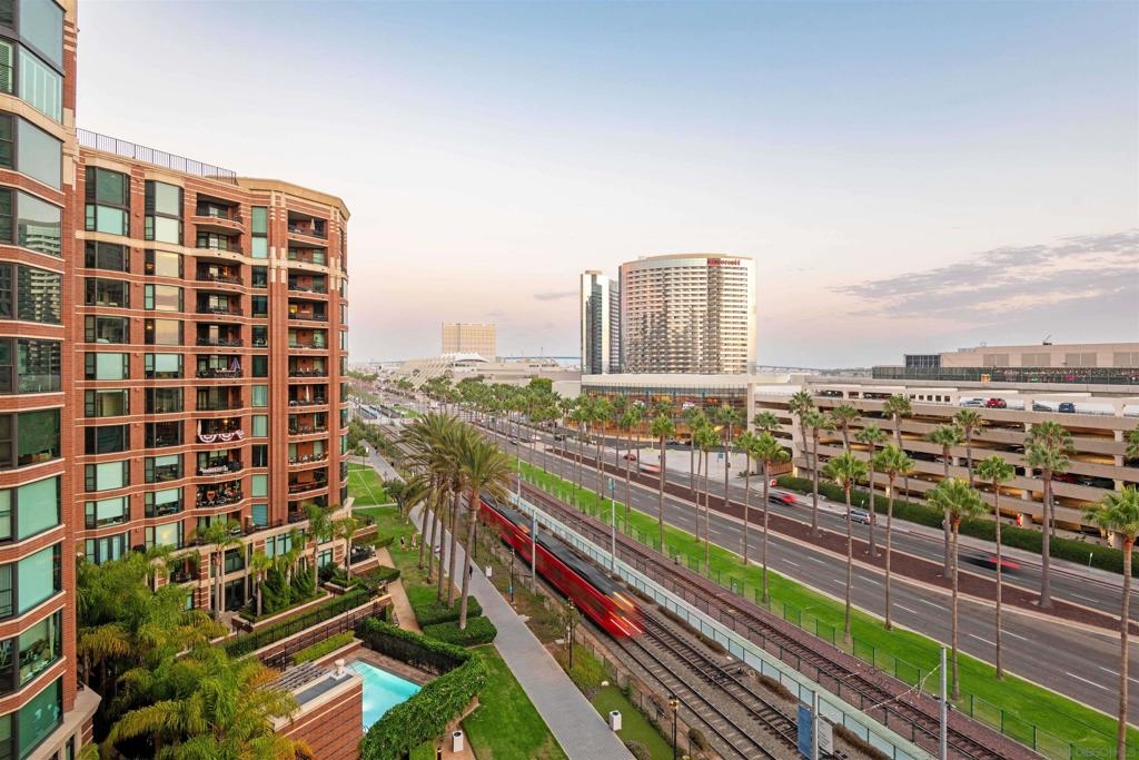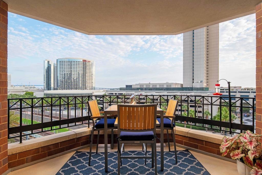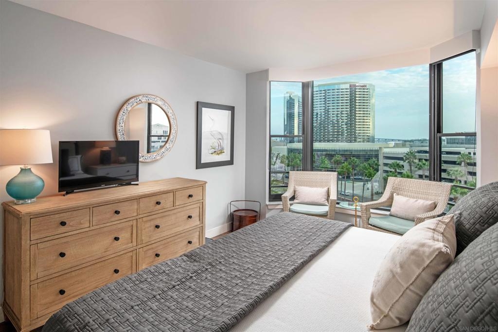 CITYFRONT TERRACE, Residence 804 ~ a pair of sunny south facing bay windows in one of CFT's most sought after split BR layouts and open to expansive views of the Harbor Drive Corridor & the bridge - richly detailed interiors, kitchen features shaker cabinetry with pull out shelving & Cambria quartz countertops, punctuated by premium brands by Viking & Bosch, BR2/den features a custom built in Murphy bed... CITYFRONT TERRACE offers a wealth of amenities, all in a service-rich environment attended by a staff of 30+, in one of San Diego's most distinctive landmark communities - 2 pools, including a 75’ lap pool, jacuzzi, sauna, a 3500sf fitness and aerobics center, The Citrus Room – an entertainment salon with full catering kitchen, 24hr attended lobby, valet parking, on-site management, and more.....CITYFRONT TERRACE is majestically located on 2.3 manicured acres on the famed Harbor Drive corridor at the foot of Market Street, it's brick and limestone exterior presenting a timeless edifice of classic proportions.....