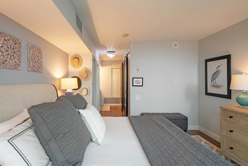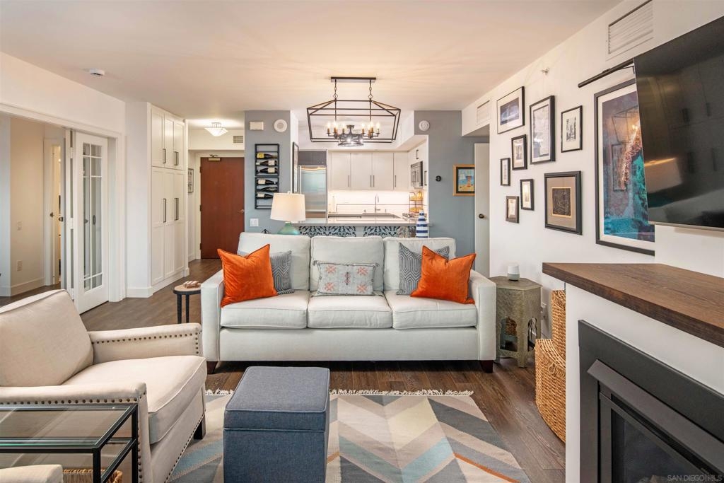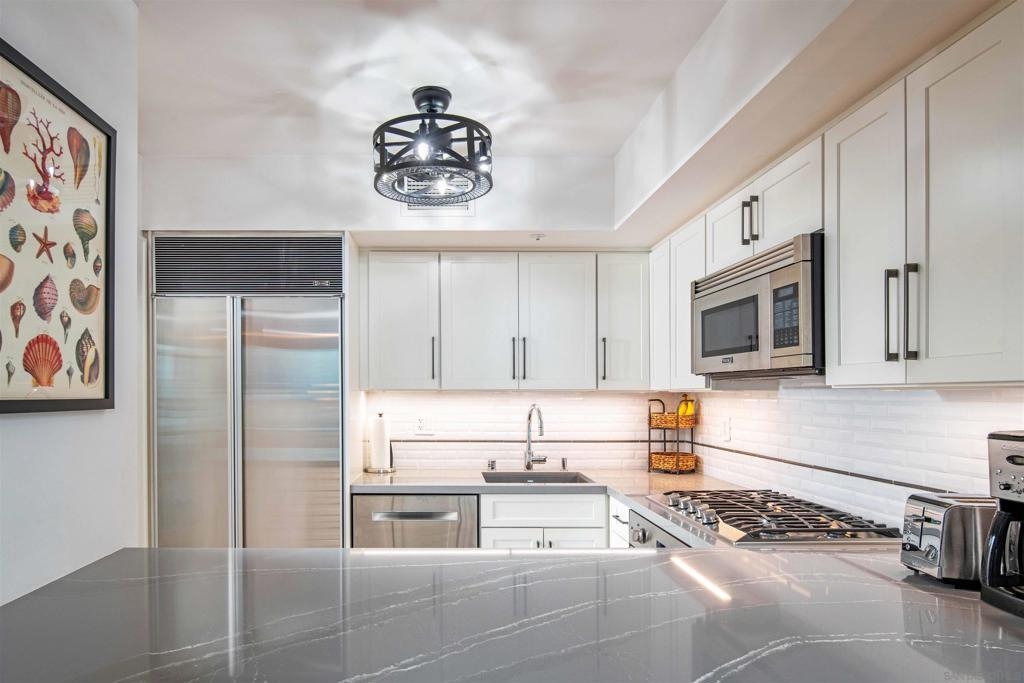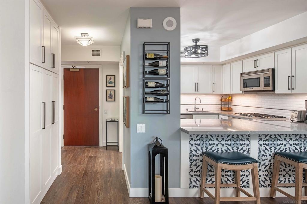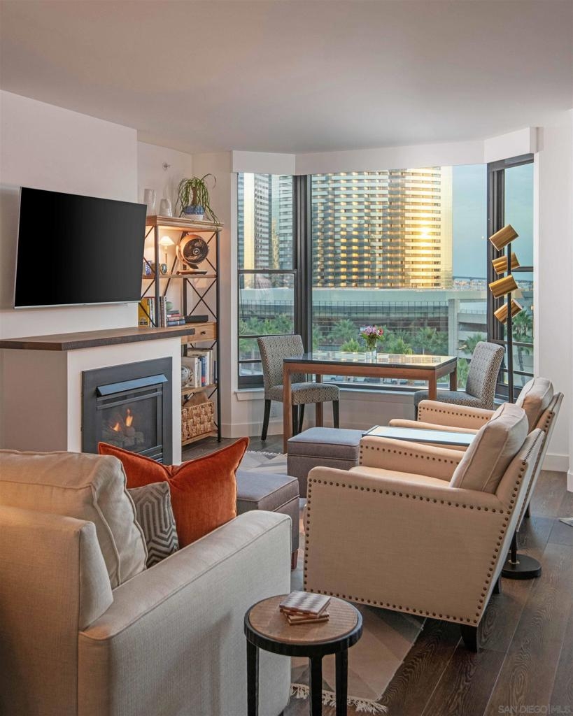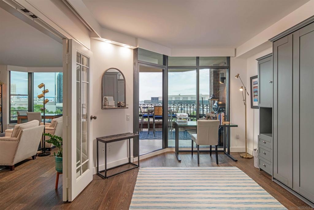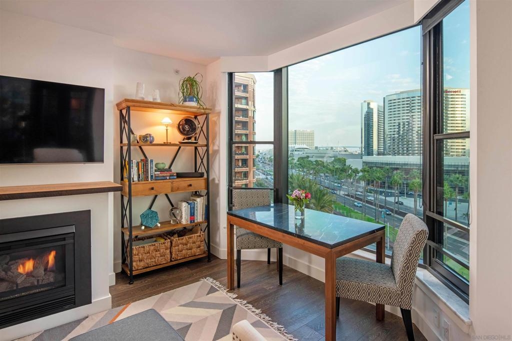 CITYFRONT TERRACE, Residence 804 ~ a pair of sunny south facing bay windows in one of CFT's most sought after split BR layouts and open to expansive views of the Harbor Drive Corridor & the bridge - richly detailed interiors, kitchen features shaker cabinetry with pull out shelving & Cambria quartz countertops, punctuated by premium brands by Viking & Bosch, BR2/den features a custom built in Murphy bed... CITYFRONT TERRACE offers a wealth of amenities, all in a service-rich environment attended by a staff of 30+, in one of San Diego's most distinctive landmark communities - 2 pools, including a 75’ lap pool, jacuzzi, sauna, a 3500sf fitness and aerobics center, The Citrus Room – an entertainment salon with full catering kitchen, 24hr attended lobby, valet parking, on-site management, and more.....CITYFRONT TERRACE is majestically located on 2.3 manicured acres on the famed Harbor Drive corridor at the foot of Market Street, it's brick and limestone exterior presenting a timeless edifice of classic proportions.....