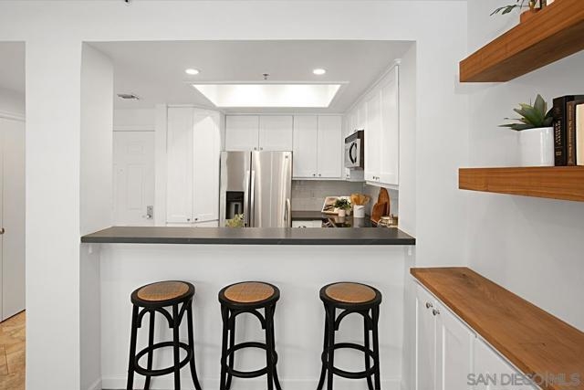 Furnished retreat in the Heart of Marina District, Downtown San Diego. Welcome to your own slice of urban paradise! This impeccably designed one-bedroom, one-bathroom condo offers a harmonious blend of modern elegance and city convenience, offering 735 square feet of thoughtfully crafted living space. Nestled in the prestigious Marina District of downtown San Diego, this condo offers a lifestyle that combines luxury, comfort, and unparalleled access to the vibrant energy of the city. This updated condo features custom paint, built ins, porcelain tile floors throughout, plantation shutters, granite surfaces, stainless-steel appliances, and a large primary suite with an organized, walk-in closet and spacious bathroom. One car underground garage spot included.