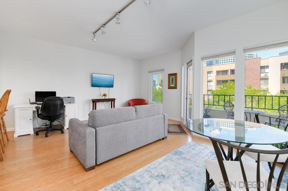 Nestled in the tranquil yet vibrant Marina District, this light and bright upgraded condo offers all your looking for! Easy walk to Little Italy, Waterfront Park and all the fantastic shopping/dining and nightlife these areas have to offer. Flowing floor plan with high ceilings lead to your covered patio that has amazing views of city scape and Pantoja Park! Upgrades include new flooring, fresh paint as well as new counter tops, cabinets, vanity and stall shower. Not to mention walk in closet in bedroom and stackable laundry!