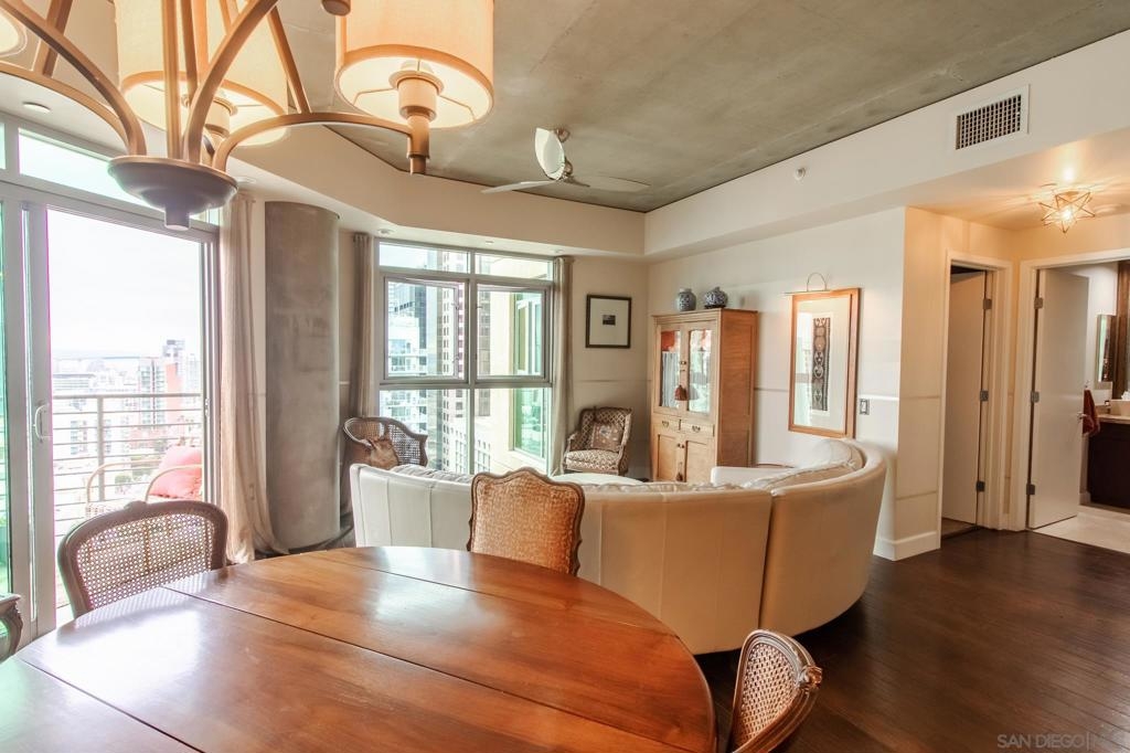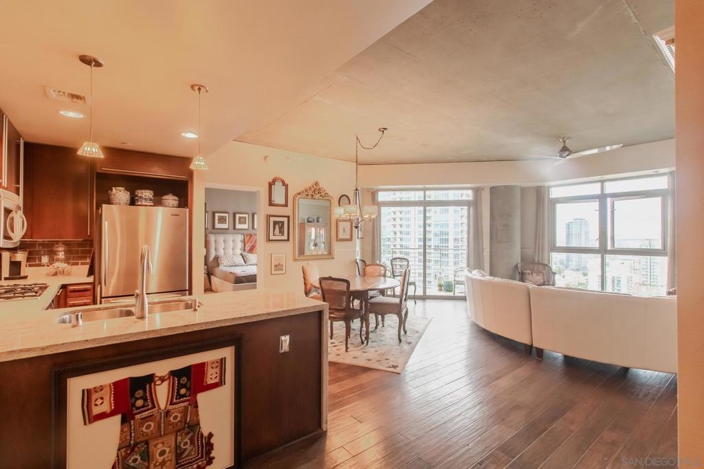 Nicely upgraded Cortez Blu 2/2 unit on the 15th floor facing southeast and southwest views, amazing city, bay and panoramic Coronado bridge skyline views from your private balcony. Main bedroom features a large walk-in closet & en-suite bathroom with soaking tub, walk-in shower, & dual vanity with Marble countertops throughout the entire unit. Security door system with camera to lobby access. Ample second room. Kitchen nicely upgraded with marble and tile backsplash. Stainless steel (original) appliances. A must see! Upgraded unit with great and classy finishes and amazing bay and city panoramic views. Highly sought Cortez Blu condo. Main bedroom features a large walk-in closet & en-suite bathroom with soaking tub, walk-in shower, & dual vanity. The open floor plan benefits from a large open kitchen with marble surfaces and tile backsplash, stainless appliances & a gas range. Open dining area combo room with living/family room. Other features include stackable washer & dryer closet, one (1) parking space and of course, did we mention the views? Architectural Style: A-Frame/Dome/Log View: A-Frame/Dome/Log Sewer: Sewer Connected Topography: RSLP