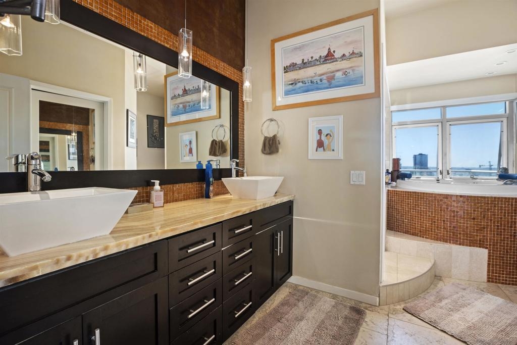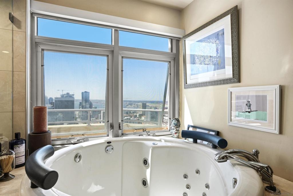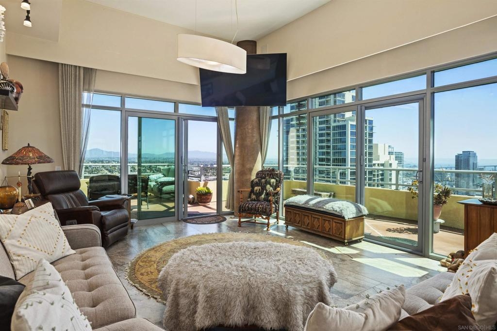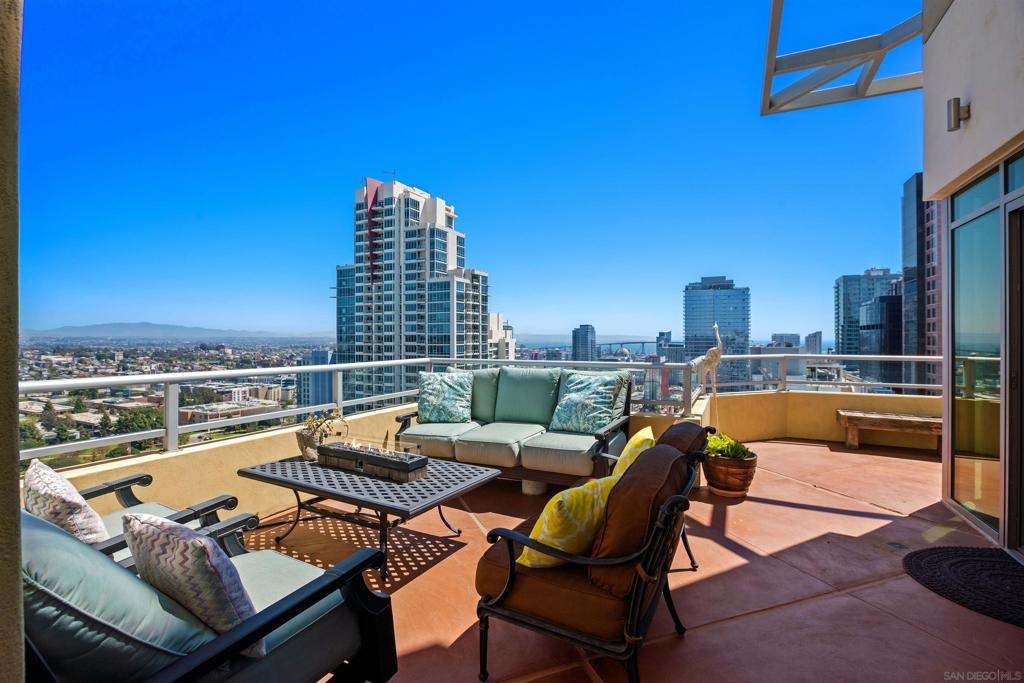These might be the best entire top floor Penthouse views in all of Downtown San Diego. Enter your home into this 360 degree panoramic view via one of the two private elevator accesses. This home features a wrap around deck with room for tons of outdoor entertainment. With unobstructed views of the city, you can see sunrises and sunsets. This home offers unparalleled serenity. This 1882 square foot masterpiece features 2 bedrooms, 2.5 bathrooms, a chef's kitchen with an island for a minimum of 4 to 5 barstools. The primary suite features a custom bathroom including a soaking jet tub, shower and walk-in closet. Each bedroom has access to the deck as well as tons of natural light. This will, without a doubt be one of the most spectacular homes you will see in all of Downtown San Diego. These might be the best entire top floor Penthouse views in all of Downtown San Diego. Enter your home into this 360 degree panoramic view via one of the two private elevator accesses. This home features a wrap around deck with room for tons of outdoor entertainment. With unobstructed views of the city, you can see sunrises and sunsets. This home offers unparalleled serenity. This 1882 square foot masterpiece features 2 bedrooms, 2.5 bathrooms, a chef's kitchen with an island for a minimum of 4 to 5 barstools. The primary suite features a custom bathroom including a soaking jet tub, shower and walk-in closet. Each bedroom has access to the deck as well as tons of natural light. This will, without a doubt be one of the most spectacular homes you will see in all of Downtown San Diego.