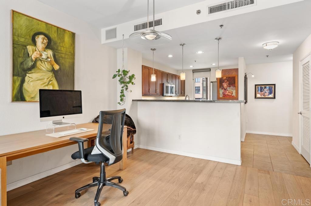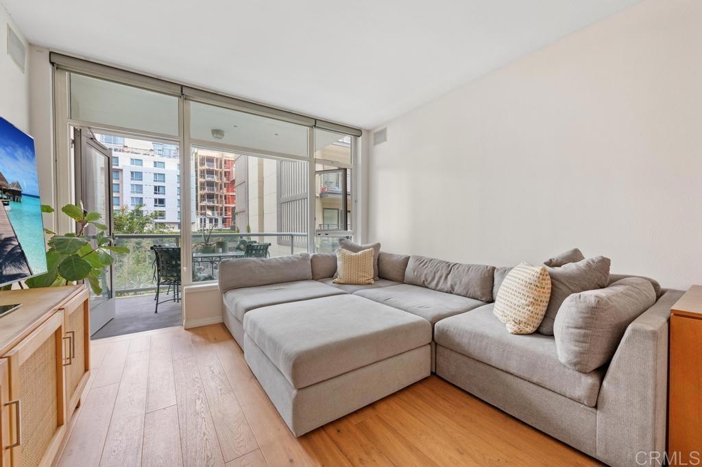 Diamond Terrace is located in the epicenter of East Village. This spacious 1 bedroom condo offers floor to ceiling windows, wood plank floors, and a large north-facing balcony. The kitchen is appointed with granite counters, stainless appliances - including an induction cook-top, and ample storage. There is an in-unit washer/dryer and newer HVAC system. (The unit is on the quiet side of the building.) Take in a Padres game from the common area roof terrace with views into Petco Park, entertain in the dining area and BBQ while watching the game. Other amenities include a fitness center and community lounge. Conveniently located near tons of dining and entertaining options, Gaslamp, Convention Center and the bay. One assigned parking space #39.