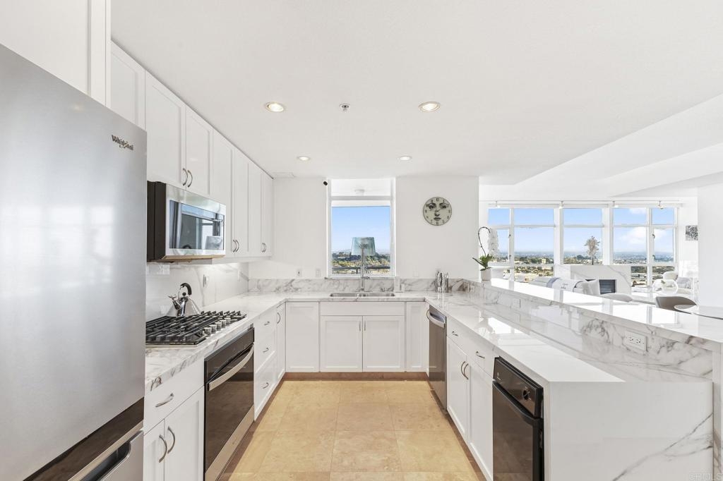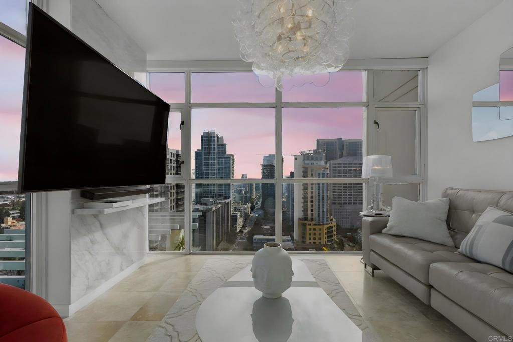 PRICE REDUCTION - FANTASTIC OPPORTUNITY! Experience the height of modern elegance in this impeccably designed 2Br 2Ba residence with den, offering the perfect blend of style and urban sophistication. Discovery at Cortez Hill is a contemporary full service luxury building offering residents comfort, convenience, and security. Expansive open-plan living areas flow seamlessly across honed travertine floors, illumilnated by statement lighting and spectacular views framed by floor to ceiling windows with automated roll-down shades and a beautiful gas fireplace. Entertain guests at the elegant bar or move to the private balcony with views of Balboa Park and the beautiful mountains to the east. Peek bay views to the west and south add to the ambiance. The chef’s kitchen is both beautiful and functional, featuring sleek Italian porcelain countertops, custom cabinetry, and top-tier stainless steel appliances; an entertainer’s dream that anchors the home’s refined aesthetic. The serene primary suite invites relaxation with blackout shades and drapes, for a restful night's sleep and a spa-inspired bath with dual marble vanity, soaking tub, walk-in shower and generous storage. The 2nd bedroom and bath provides comfort for family or guests while the versatile den provides the ideal setting for a home office, media lounge, or creative space. An in-unit laundry and walk-in pantry provide storage and convenience. The building features 24-hour concierge, a state of the art fitness center with separate weight room and cardio equipment, steam room, and sauna. The rooftop lap pool, spa, barbecues, fire-pit, and outdoor dining area are like living at a private resort. A bicycle room, business center, conference room, deeded storage and 2 secure side by side underground parking spaces round out the building amenities. This residence delivers an effortless lifestyle in one of the quietest downtown neighborhoods; placing the best of urban living, fine dining, and vibrant culture right at your doorstep.