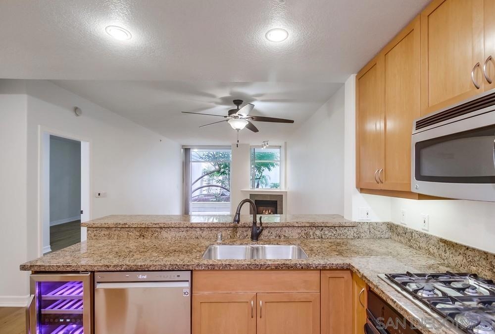 Welcome to residence #213, a coveted second floor corner unit at the stunning Discovery at Cortez Hill. This spacious condo boasts an inviting and open floor plan, complete with a charming fireplace in the living room. The well-appointed kitchen showcases stylish stainless steel appliances, including a brand new wine-cooler, and brand new engineered wood flooring flows seamlessly throughout. Convenience is key with a washer and dryer nestled within the unit, along with a well-designed closet featuring an organizer. Discovery building has some of the best amenities in Downtown San Diego. Welcome to residence #213, a coveted second floor corner unit at the stunning Discovery at Cortez Hill. This spacious condo boasts an inviting and open floor plan, complete with a charming fireplace in the living room. The well-appointed kitchen showcases stylish stainless steel appliances, including a brand new wine-cooler, and brand new engineered wood flooring flows seamlessly throughout. Convenience is key with a washer and dryer nestled within the unit, along with a well-designed closet featuring an organizer. The custom paint adds a touch of personality to the space. This special residence also offers unique amenities, including the outdoor patio, a private storage unit on the same floor, and a generously-sized car space in the secure underground garage. Discovery building has some of the best amenities in Downtown San Diego. Most of the amenities are on the 10th floor w/amazing views to the City and Balboa park, a heated lap pool, SPA, BBQ , dry sauna, steam room , gym & several cabanas with chairs and tables for entertainment. There is a business center & meeting room on the second floor & a fantastic Concierge service.