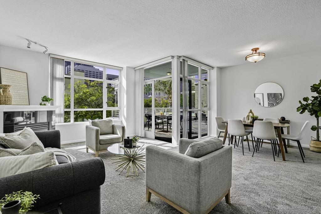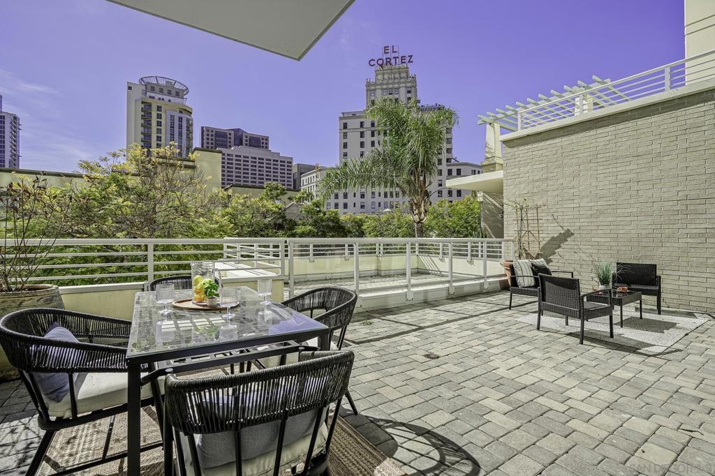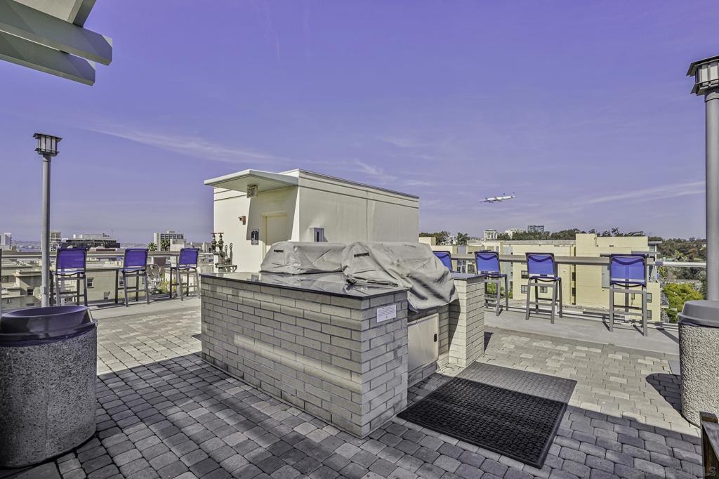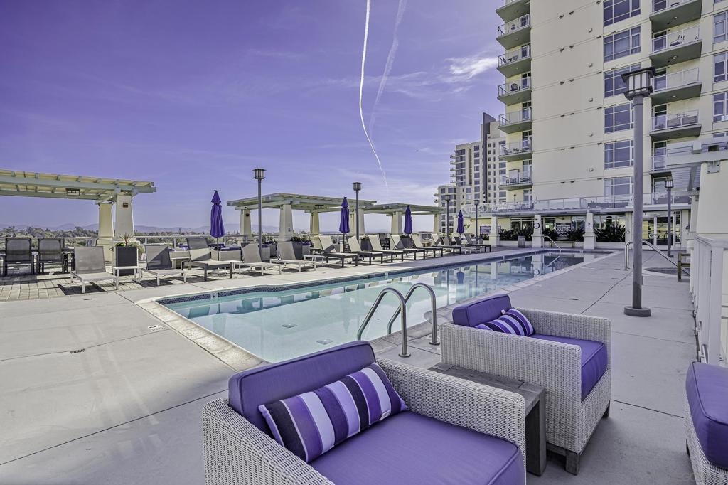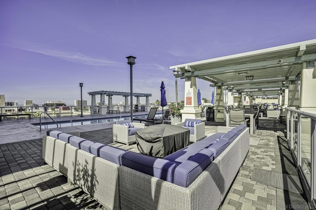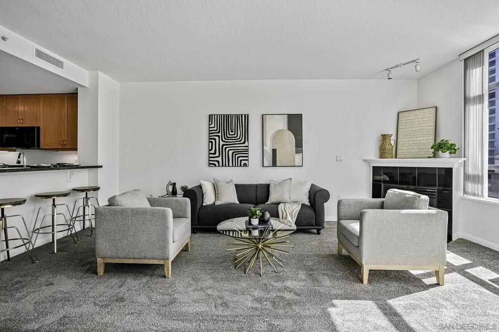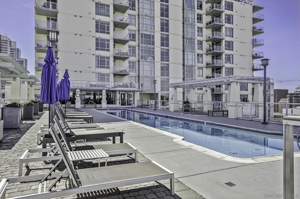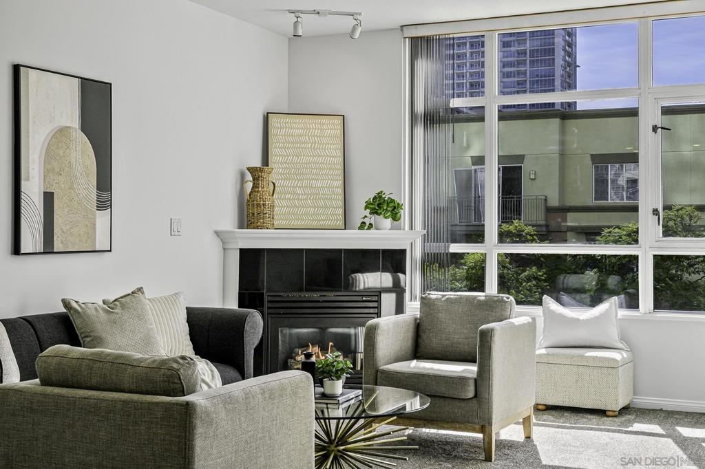 Experience the best of downtown living in this 3rd-floor condo at Discovery, a luxury high-rise perfectly positioned near Balboa Park, Little Italy, and San Diego’s vibrant dining and entertainment scene. The unit’s southern exposure fills the space with abundant natural light throughout the day, creating a warm and inviting atmosphere. The standout feature of this unit is the expansive 300-square-foot private patio—ideal for relaxing, entertaining, or dining al fresco. Freshly updated with all-new carpet and paint, this home features a granite fireplace and a modern kitchen with granite countertops. Two dedicated parking spaces in the underground garage, a storage locker, and a thoughtfully designed floor plan add to the home’s convenience, comfort and security. Discovery offers resort-style amenities, including a heated rooftop pool and spa with stunning city views, a state-of-the-art fitness center, dry sauna, steam room, cabanas, and BBQ areas. A business center, meeting room, concierge services, and doorman make everyday living effortless. Enjoy the perfect blend of luxury, convenience, and community in one of San Diego’s most desirable locations.