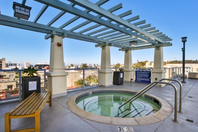 Imagine waking up every morning in this luxury hi-rise and looking out at the fabulous city views from this spacious 1 bed, 1.5 bath condo! Beautiful bamboo flooring throughout the unit, the bright and airy living room features a cozy fireplace. Gorgeous kitchen includes granite counters and high-end stainless steel appliances. The spacious master bedroom has an en suite bath and fitted walk-in wardrobe. This unit comes with its own secure storage, in-unit laundry and its own private 12x10' balcony with views of the beautiful courtyard. The building is meticulously managed features an elegant lobby, 24/7 security, rooftop pool/spa, cabanas, sauna, fitness center, fire pit and barbecue area. Enjoy the downtown life with minutes walk to Gaslamp and Little Italy! Complex Features: ,,,,, Equipment: Dryer, Range/Oven, Washer Sewer: Public Sewer Topography: LL