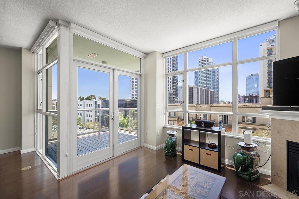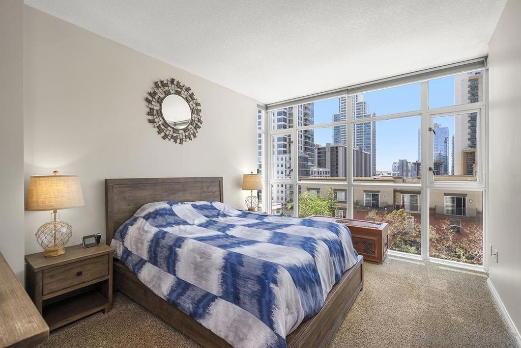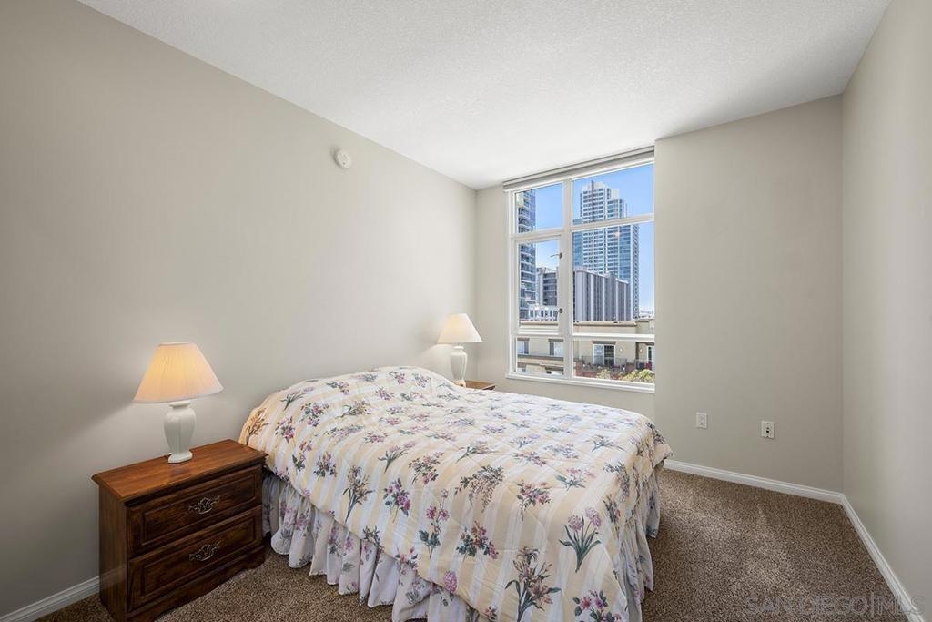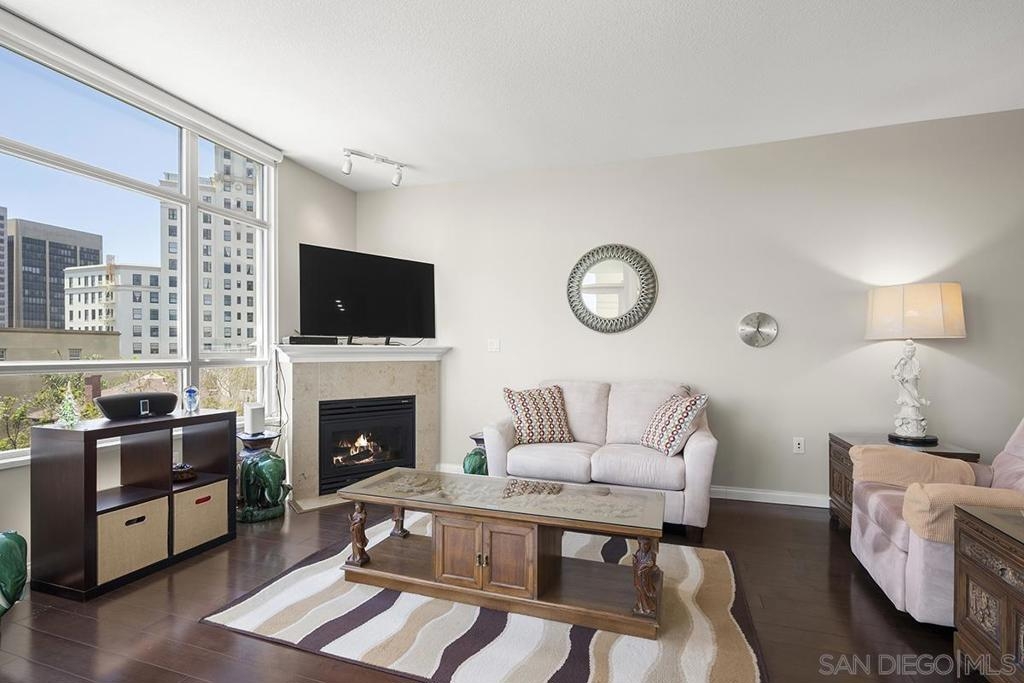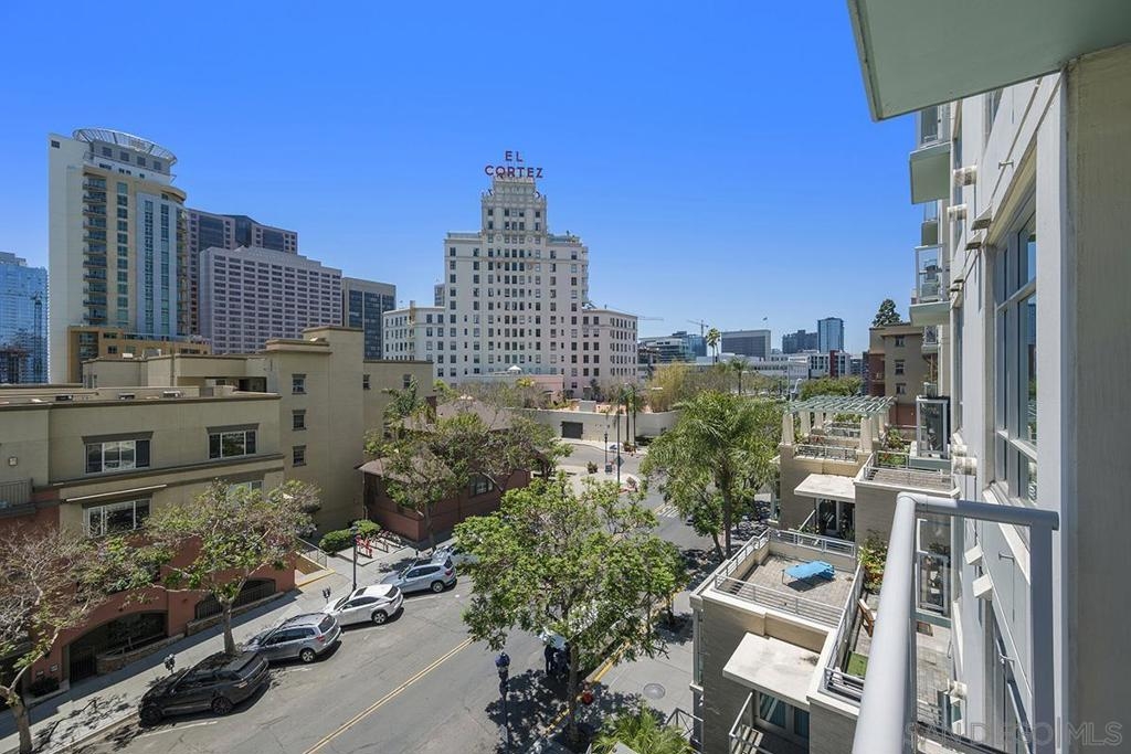 A hidden gem at Discovery in Cortez Hill! Step into this bright, south-facing residence and soak in city views with a peek of the iconic Coronado Bridge also visible from your private balcony. The living areas feature engineered wood floors, expansive windows, and an ambient fireplace. The kitchen is equipped with granite countertops, stainless appliances, an integrated wine chiller, pantry, and recessed lighting. The spacious primary suite offers plush carpet, a custom-organized walk-in closet, and an ensuite bath with a step-in shower. Enjoy the convenience of two parking spaces (not tandem) and a dedicated storage unit. Come experience why Discovery and Cortez Hill are among Downtown San Diego’s best-kept secrets! Perched atop Cortez Hill, Discovery offers resort-style living in one of Downtown San Diego’s most charming and established neighborhoods. Residents enjoy secure underground parking, 24-hour concierge service, an elegant lobby, and thoughtfully designed shared spaces including the lush 2nd-floor Fern Grotto Garden and a stylish social lounge. The business center is equipped with commercial-grade office tools, and the 10th-floor rooftop deck features a heated lap pool, cabanas, spa, BBQ grills, and panoramic city views. A top-tier fitness center includes a sauna and steam room for full wellness access. Just steps away are local favorites like Tweet Street Park, Hob Coffee, and Soleluna Café, with Little Italy and Balboa Park within walking distance. Plus, enjoy quick freeway access to I-5 and Hwy 163 from this peaceful urban retreat. Old MLS listings quoted 1230 sq.ft., builder brochure quoted 1221 sq.ft., assessor record shows 1133 sq.ft.