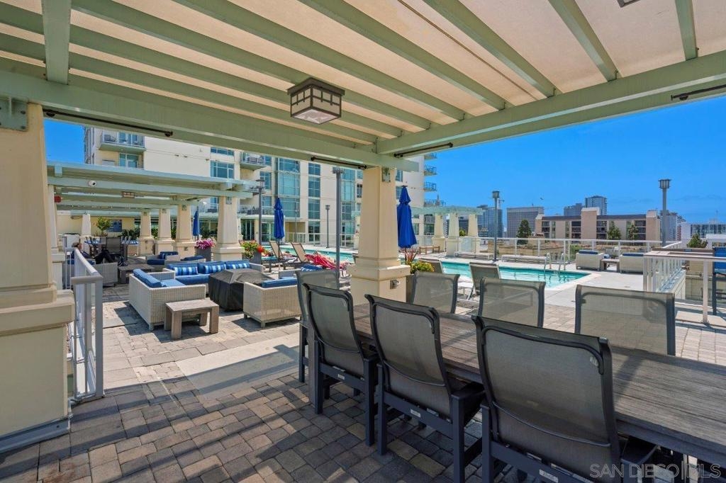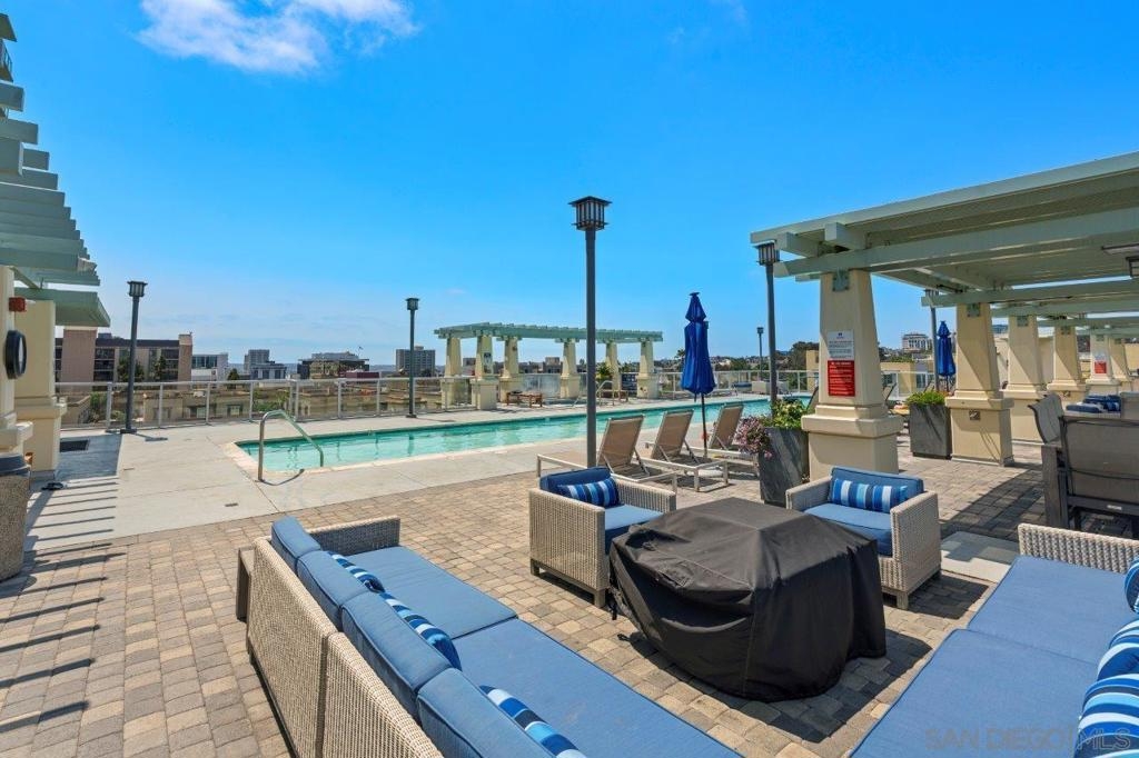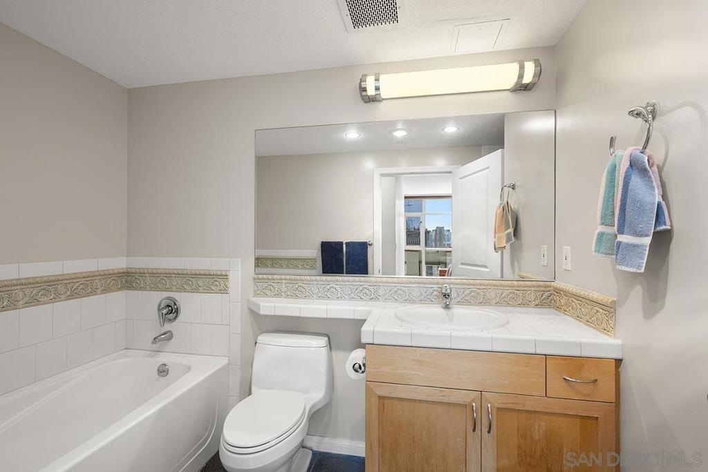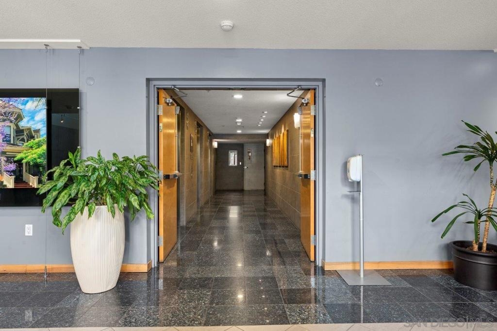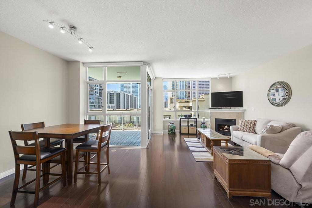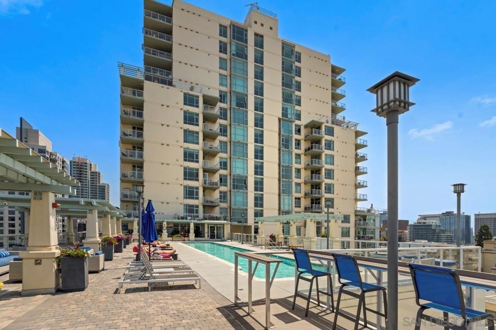 A hidden gem at Discovery in Cortez Hill! Step into this bright, south-facing residence and soak in city views with a peek of the iconic Coronado Bridge also visible from your private balcony. The living areas feature engineered wood floors, expansive windows, and an ambient fireplace. The kitchen is equipped with granite countertops, stainless appliances, an integrated wine chiller, pantry, and recessed lighting. The spacious primary suite offers plush carpet, a custom-organized walk-in closet, and an ensuite bath with a step-in shower. Enjoy the convenience of two parking spaces (not tandem) and a dedicated storage unit. Come experience why Discovery and Cortez Hill are among Downtown San Diego’s best-kept secrets! Perched atop Cortez Hill, Discovery offers resort-style living in one of Downtown San Diego’s most charming and established neighborhoods. Residents enjoy secure underground parking, 24-hour concierge service, an elegant lobby, and thoughtfully designed shared spaces including the lush 2nd-floor Fern Grotto Garden and a stylish social lounge. The business center is equipped with commercial-grade office tools, and the 10th-floor rooftop deck features a heated lap pool, cabanas, spa, BBQ grills, and panoramic city views. A top-tier fitness center includes a sauna and steam room for full wellness access. Just steps away are local favorites like Tweet Street Park, Hob Coffee, and Soleluna Café, with Little Italy and Balboa Park within walking distance. Plus, enjoy quick freeway access to I-5 and Hwy 163 from this peaceful urban retreat. Old MLS listings quoted 1230 sq.ft., builder brochure quoted 1221 sq.ft., assessor record shows 1133 sq.ft.