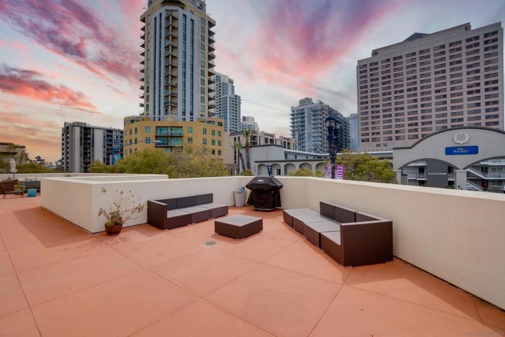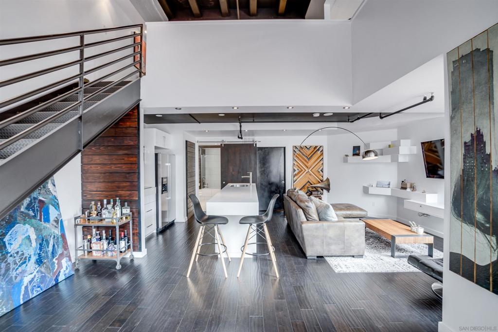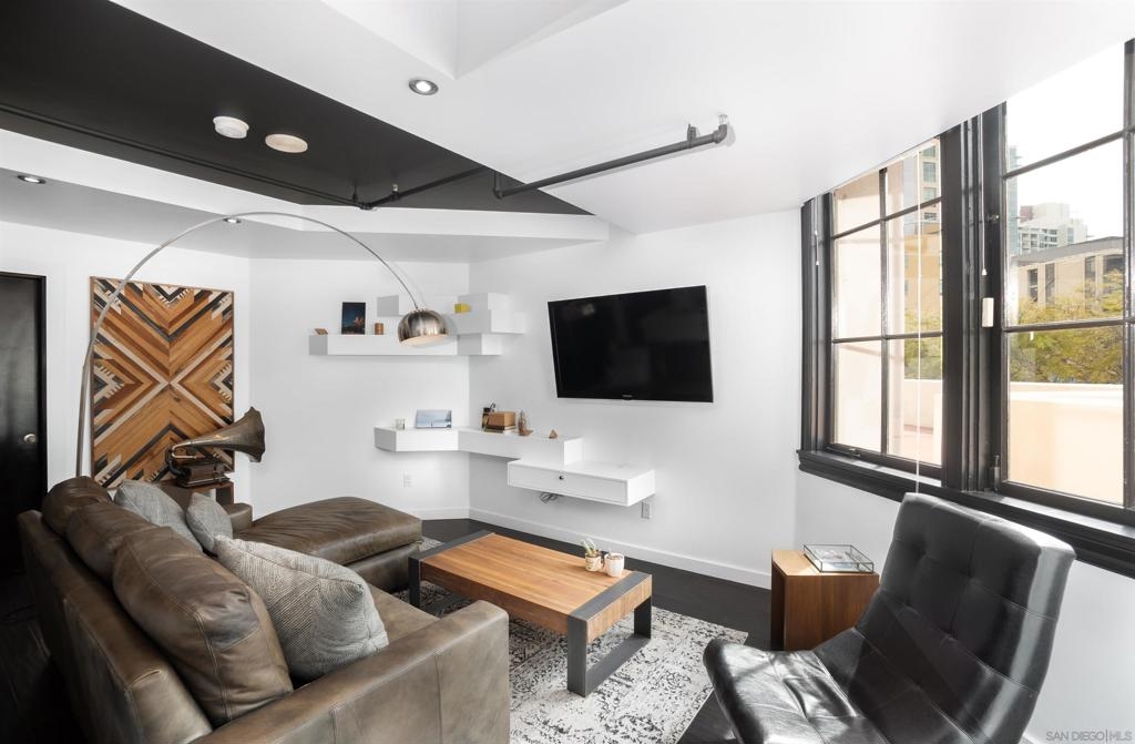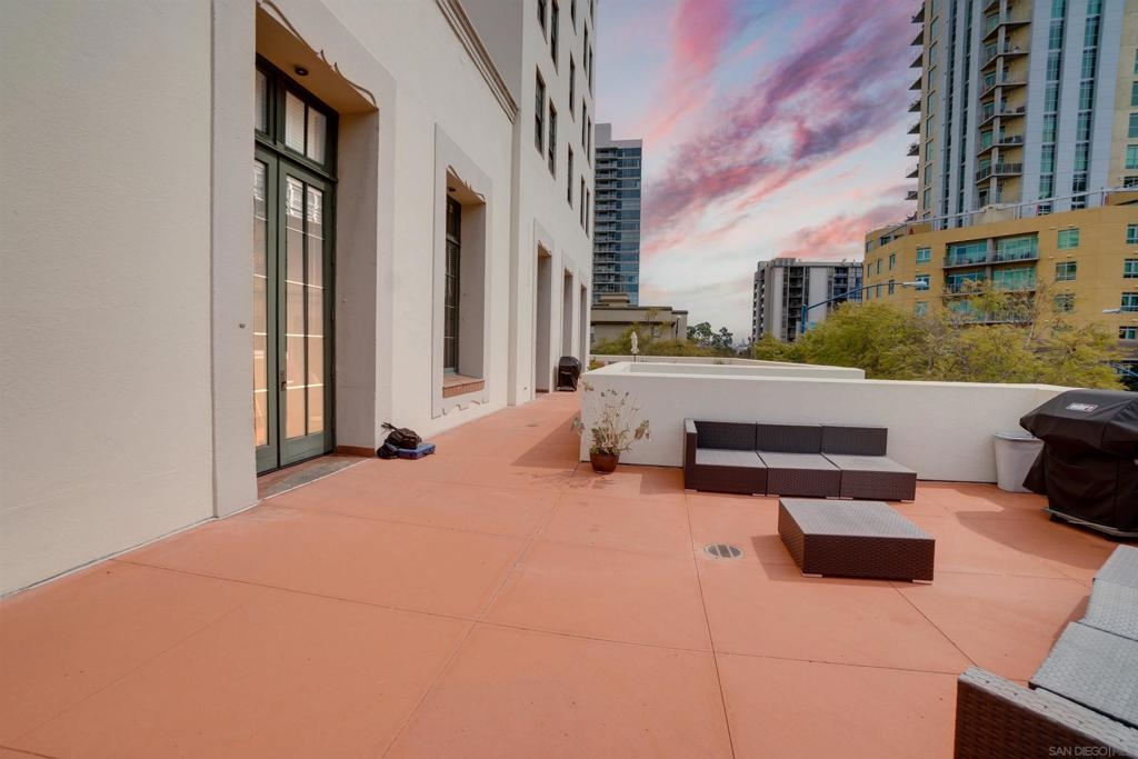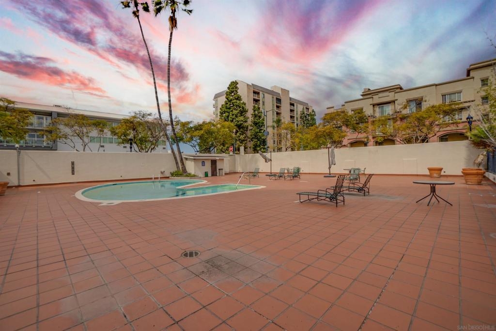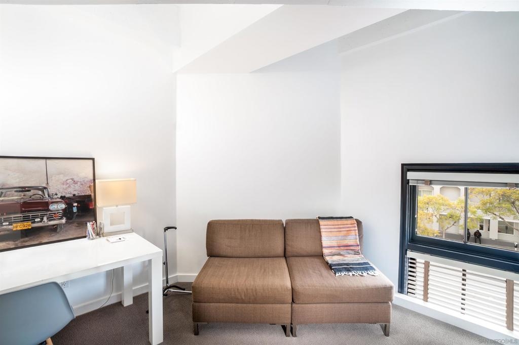 MILLS ACT. Save on property taxes and experience unparalleled living in this 2-story loft at the iconic El Cortez. This exceptional unit offers an exclusive lifestyle, featuring a serene private patio, a spacious walk-in pantry for ample storage, and a convenient full bath downstairs. The tranquility is unmatched with no neighbors above, ensuring a peaceful environment. Ascend to the upstairs loft bedroom, revealing a flexible living space complete with an additional nook or den, perfect for an office setup, all under the impressive expanse of 20 ft ceilings that evoke the openness and style of Brooklyn lofts. Unique to this unit is the direct access, allowing for a private entrance without the need to navigate through the building. Dine in style at the Osteria Cotto e Mangiato, the building's on-site restaurant, get in a workout at The Little Yoga Studio, followed by the coffee shop just across the street catering to your morning routine, while the El Cortez Gourmet Mart within the building ensures your culinary needs are always met. Located in the quieter part of downtown, residents enjoy the calm while being a short walk away from all the action. Zoned for live/work, this unit provides the perfect blend of professional utility and personal comfort. It’s a rare opportunity, as these units in the El Cortez seldom hit the market, offering a chance to be part of San Diego’s vibrant history while enjoying modern amenities such as a pool, exercise room, and the convenience of a parking garage.