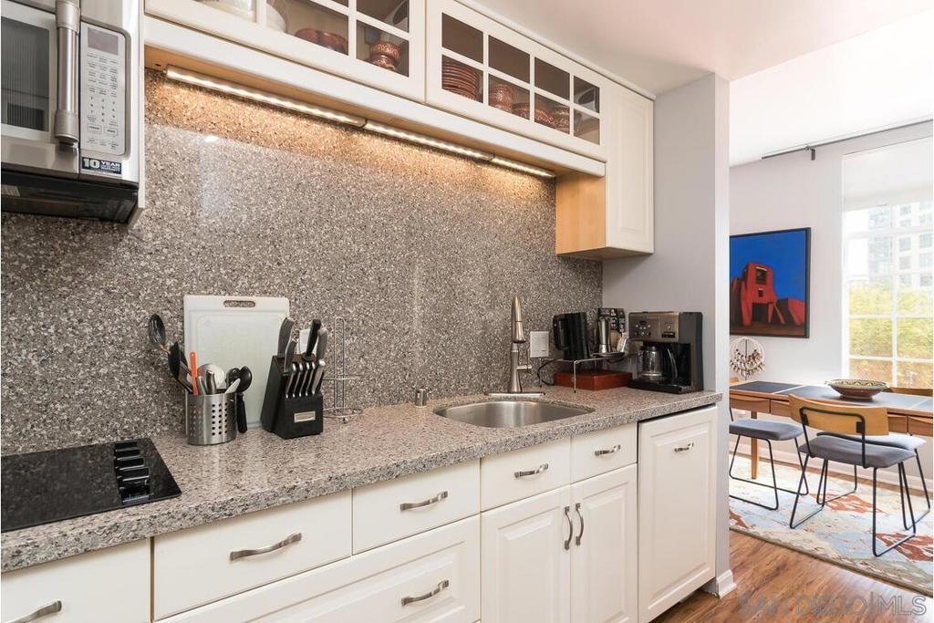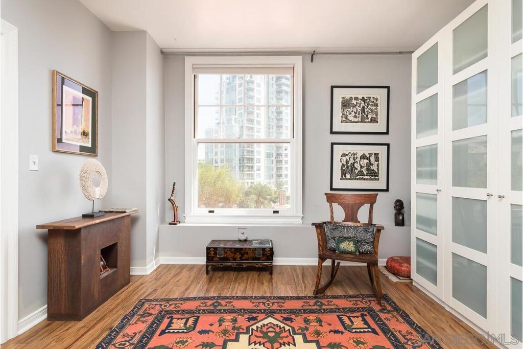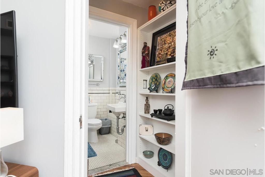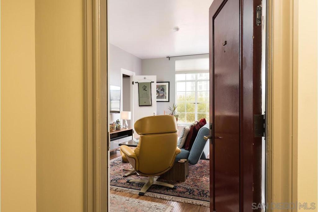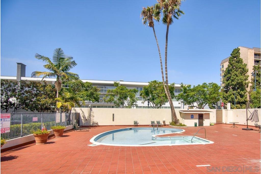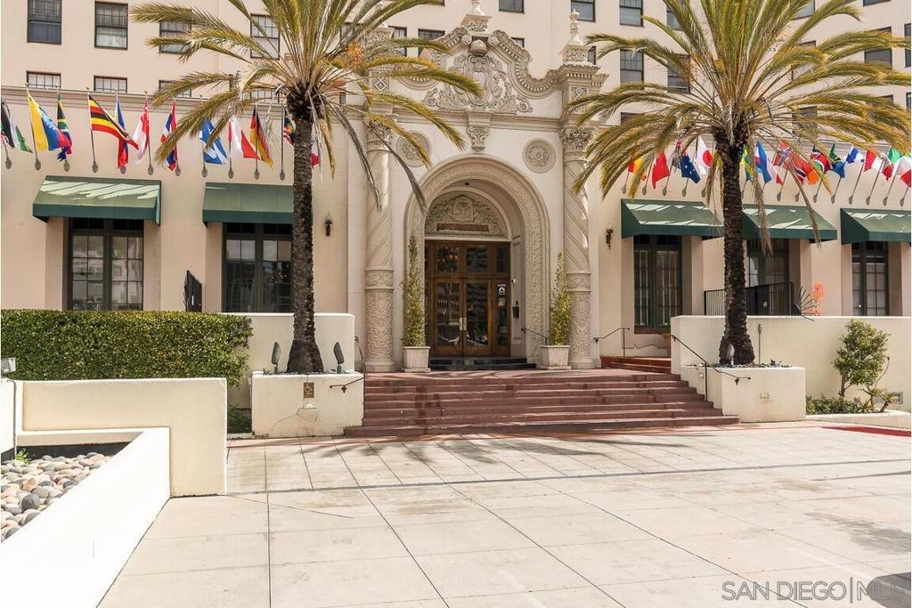 Enjoy living at the historic and elegant El Cortez. At the same time enjoy the savings benefit of the Mills Act Tax Credit. This chic 2bd/2bth split floor plan is light and open. Historic large windows open with views over the community open space courtyard, pool, & Cortez Hill cityscape. There is a built-in closet system in Main bedrm, added storage in closets in both bedrms and hall spaces. Kitchen features upgraded cabinetry, granite countertops, pull out drawers, & glass stovetop. Fixtures are upgraded. Stacked w/d in unit. Concierge greets you at the entrance, manager on site. Minutes to Tweet Street Park, Petco Park, & 15 min walk to Balboa Park, Little Italy and the Gaslamp. Enjoy living at the historic and elegant El Cortez. At the same time enjoy the savings benefit of the Mills Act Tax Credit. This chic 2bd/2bth split floor plan is light and open. Historic large windows open with views over the community open space courtyard, pool, & Cortez Hill cityscape. There is a built-in closet system in Main bdrm, added storage in closets in both bdrms and hall spaces. Kitchen features upgraded cabinetry, granite countertops, pull out drawers, & glass stovetop. Fixtures are upgraded. Stacked w/d in unit. Concierge greets you at the entrance, manager on site. Minutes to Tweet Street Park, Petco Park, & 15 min walk to Balboa Park, Little Italy and the Gaslamp. The second floor has a stunning huge community patio overlooking downtown. It's a great space to catch some sun, work at home with a view, or entertain friends while watching the sun go down.