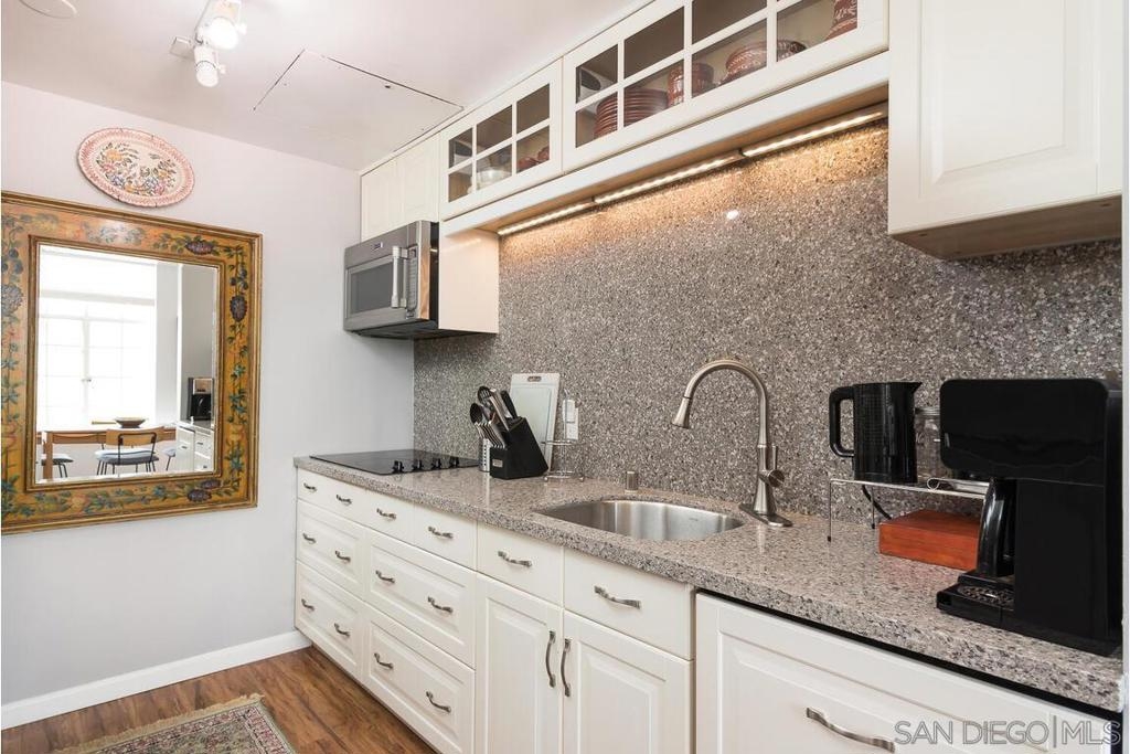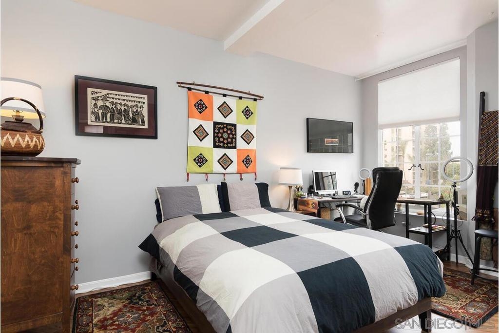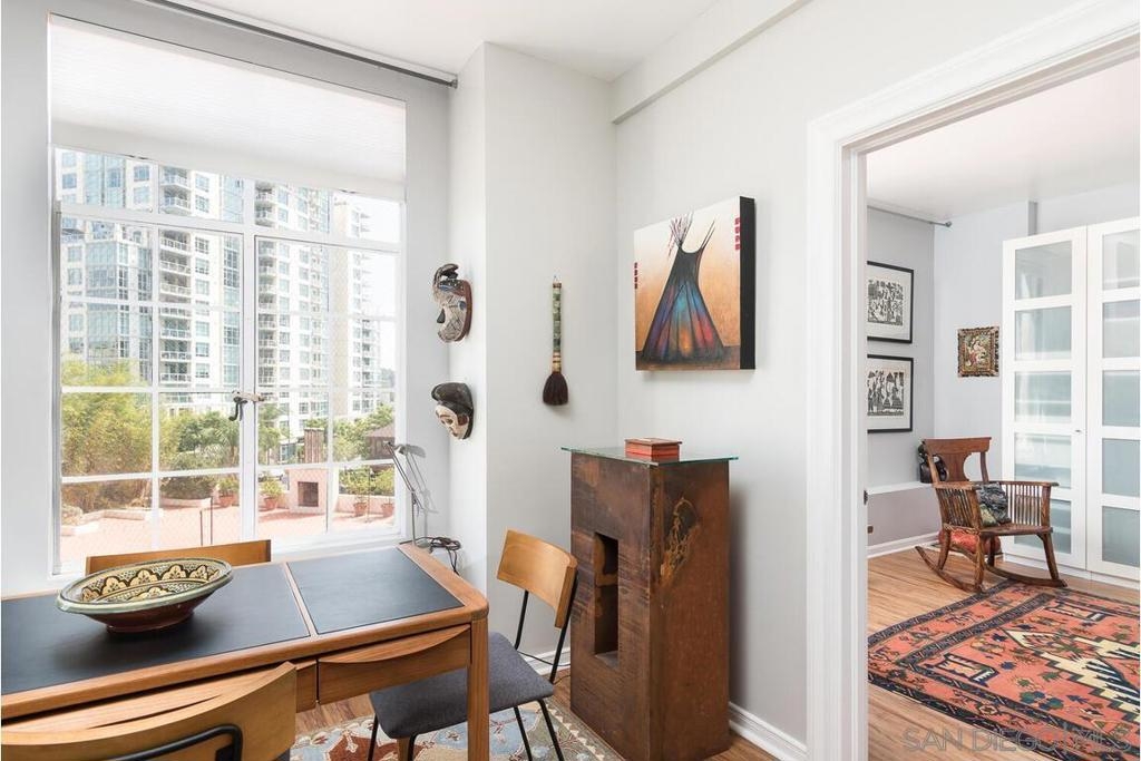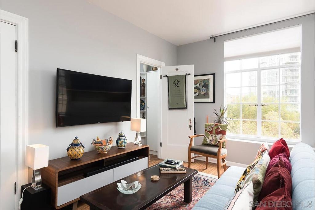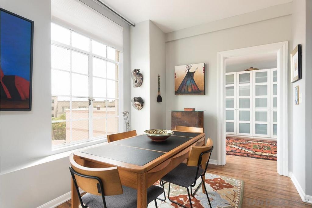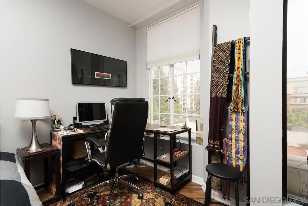 Enjoy living at the historic and elegant El Cortez. At the same time enjoy the savings benefit of the Mills Act Tax Credit. This chic 2bd/2bth split floor plan is light and open. Historic large windows open with views over the community open space courtyard, pool, & Cortez Hill cityscape. There is a built-in closet system in Main bedrm, added storage in closets in both bedrms and hall spaces. Kitchen features upgraded cabinetry, granite countertops, pull out drawers, & glass stovetop. Fixtures are upgraded. Stacked w/d in unit. Concierge greets you at the entrance, manager on site. Minutes to Tweet Street Park, Petco Park, & 15 min walk to Balboa Park, Little Italy and the Gaslamp. Enjoy living at the historic and elegant El Cortez. At the same time enjoy the savings benefit of the Mills Act Tax Credit. This chic 2bd/2bth split floor plan is light and open. Historic large windows open with views over the community open space courtyard, pool, & Cortez Hill cityscape. There is a built-in closet system in Main bdrm, added storage in closets in both bdrms and hall spaces. Kitchen features upgraded cabinetry, granite countertops, pull out drawers, & glass stovetop. Fixtures are upgraded. Stacked w/d in unit. Concierge greets you at the entrance, manager on site. Minutes to Tweet Street Park, Petco Park, & 15 min walk to Balboa Park, Little Italy and the Gaslamp. The second floor has a stunning huge community patio overlooking downtown. It's a great space to catch some sun, work at home with a view, or entertain friends while watching the sun go down.