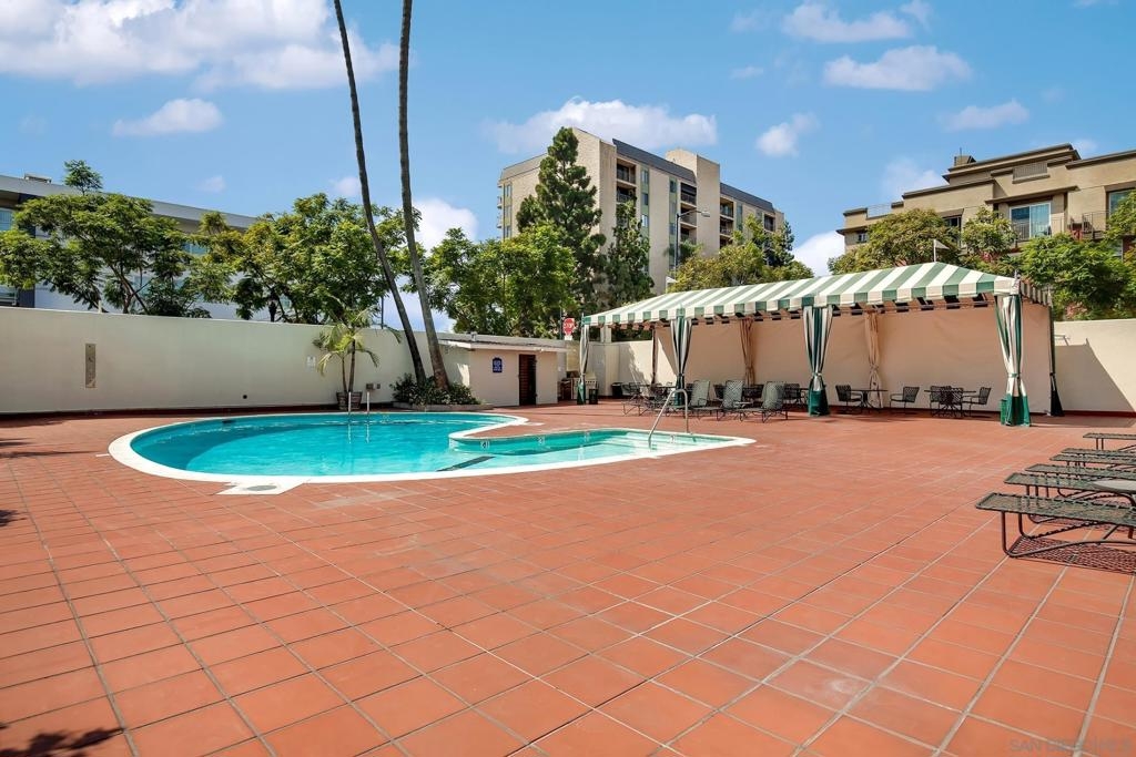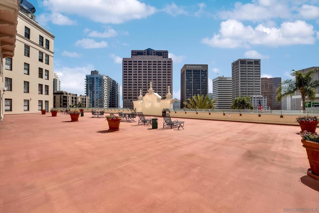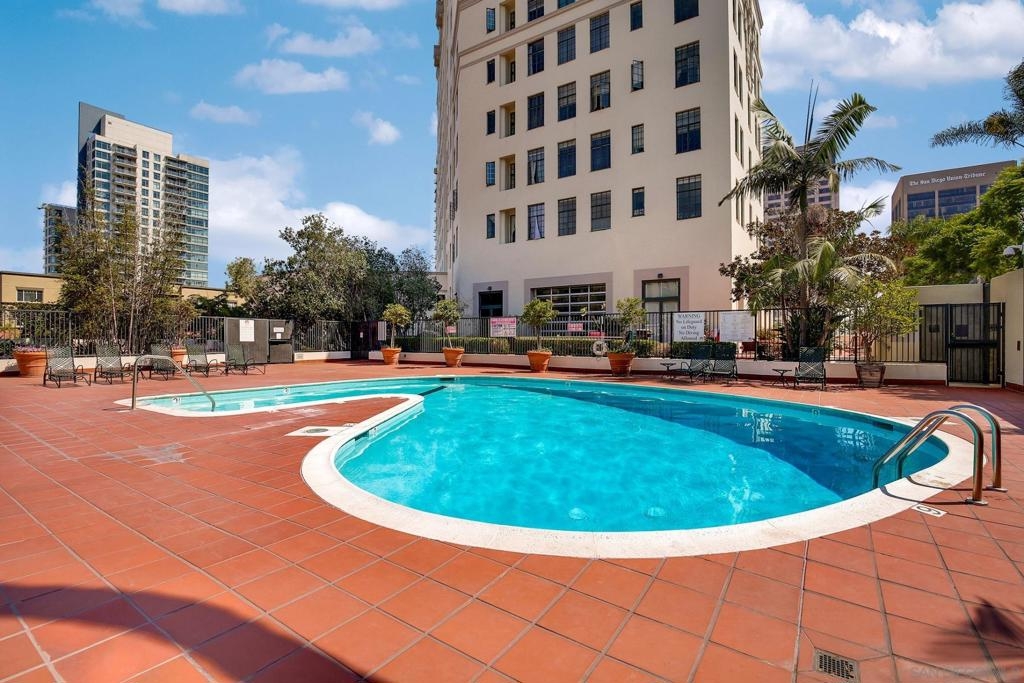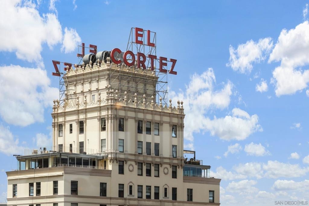 Welcome to the historic El Cortez building, where timeless charm meets modern luxury! This spacious residence located on the 3rd floor offers a unique blend of comfort and convenience in the heart of downtown. As you step into this secure building, you'll be captivated by the historic ambiance that surrounds you. The location boasts world-class dining, shopping, and nightlife. Convenient in unit washer/dryer. The modern updated kitchen is a chef's dream, featuring pristine white cabinetry and stainless-steel appliances that add a touch of sophistication. The large primary suite is a retreat in itself, offering ample closet space for your wardrobe collection and its own en-suite bath This residence is equipped with central AC to keep you comfortable year-round, and the laminate flooring adds a contemporary touch to the space. Beyond the confines of your home, the community offers a plethora of amenities to enhance your lifestyle. Stay active in the gym, take a refreshing dip in the pool, or host gatherings in the BBQ and banquet facility. Parking is a breeze in the community garage with one assigned space. Potential to get HUGE tax savings with the historical building's Mills Act program, most units have been approved.