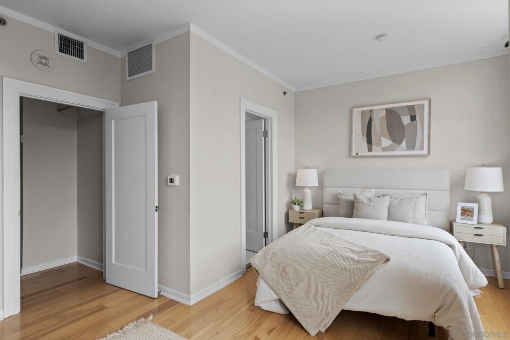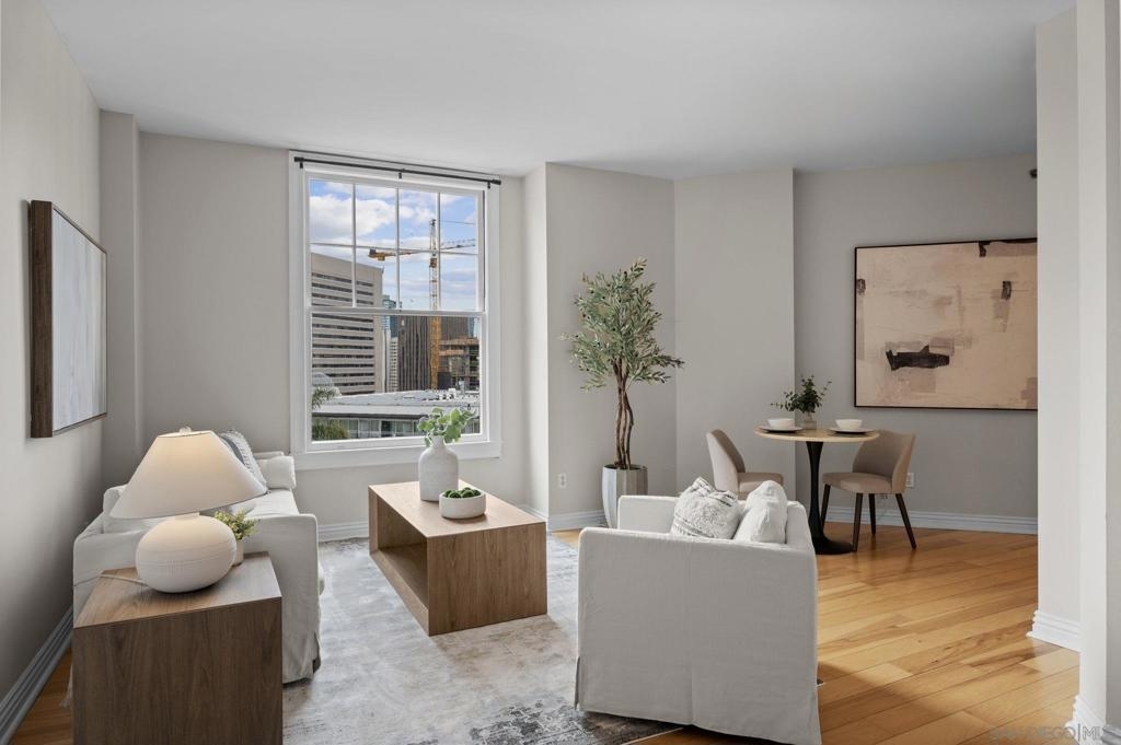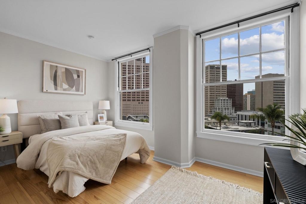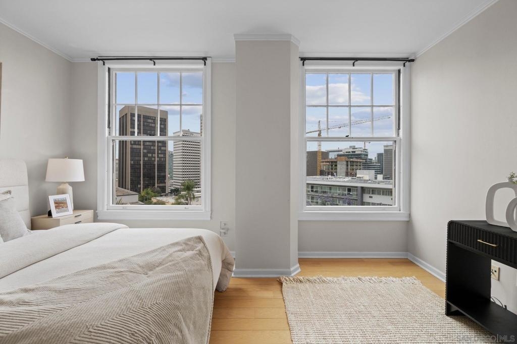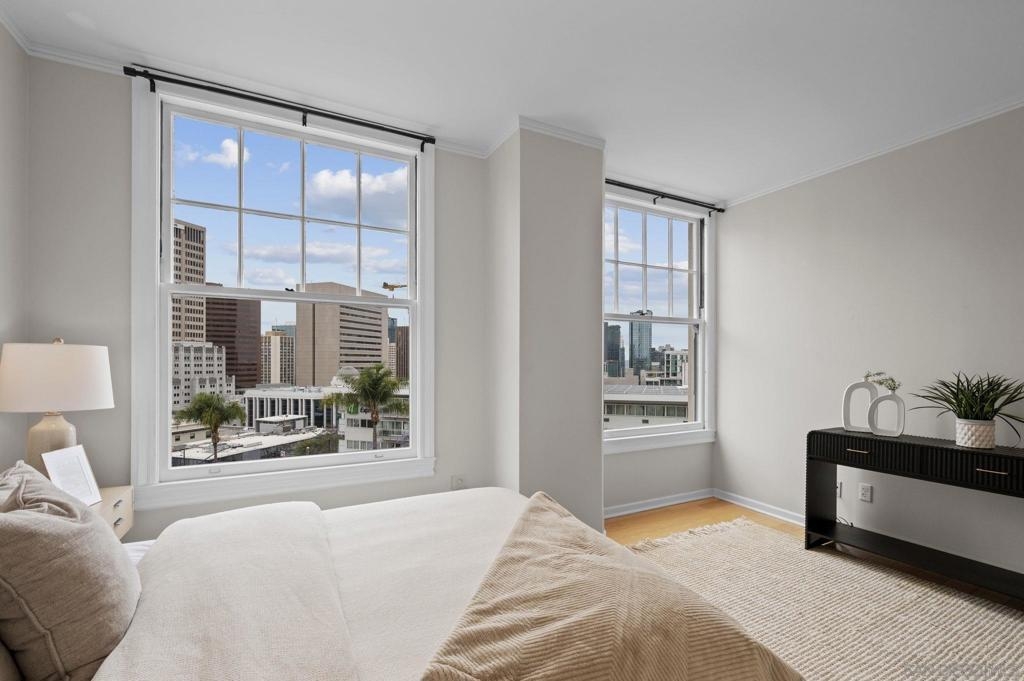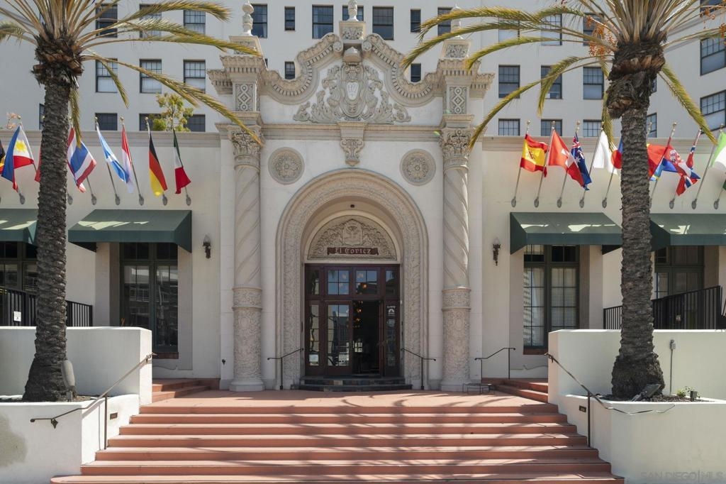 Step into history at the legendary El Cortez - one of San Diego’s crown jewels of vintage architecture. This light-filled unit offers sweeping city views, high ceilings, and original character. Historically designated, owners can apply & benefit from the Mills Act property tax reduction program & enjoy significant tax savings. Located in the heart of Cortez Hill, residents have access to two large terraces, fitness center, and pool. Additional amenities include secure parking & entry, EV charging, and a BBQ. With easy freeway access & just minutes to Little Italy, Balboa Park, Petco Park & more! Whether you're looking for a stylish home or an investment with iconic appeal, this condo delivers both charm and convenience in one unforgettable address.