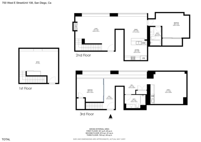 This amazing 3-level custom Marina District loft is one of the biggest unit in the complex. It offers a 2 large bedrooms,lower level den & library, private movie theater room, street access, & walls of windows including 2 paring spaces side-by-side. Amenities incl. pool/spa, gym, wet & dry hot saunas, 24 hr concierge & amazing views and walking distance the waterfront, Seaport Village, and fun activities nearby. This unit is a perfect urban loft to live, work & entertainment for downtown San Diego. Complex Features: ,,,,,,, Equipment: Dryer Other Fees: 0 Sewer: Sewer Connected Topography: LL