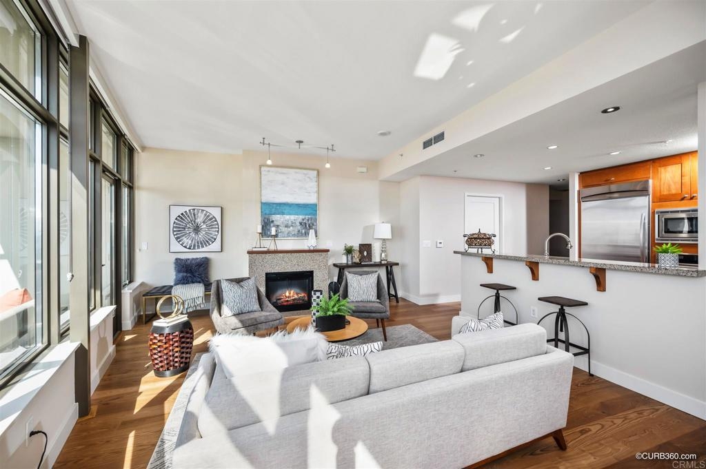 This beautiful 11th floor 2 Bedroom, 2 Bath plus Office corner condo boasts spectacular views from every room in this desirable luxury tower which is Electra. Expansive windows along with top-of-the-line appliances, hardwood floors and granite counters in the open kitchen with views to the west. Located in the Columbia District and one block from the exciting waterfront. Just steps from the excitement of the Embarcadaro, Gaslamp, Petco Park, shopping and entertainment. Amenities Include: The beautiful Conservatory, 4 Elevators, kitchen facilities & fireplace, Spacious Landscaped Gardens, Closed circuit cameras providing 24-Hour security, Gated underground parking for residents, individual storage , Bicycle storage, Professional Property Management, Facility Director & Maintenances staff, outdoor Swimming Pool, Whirlpool Spa, Sauna & Steam Rooms, roaming attendant, Buyer to verify all prior to close of escrow.