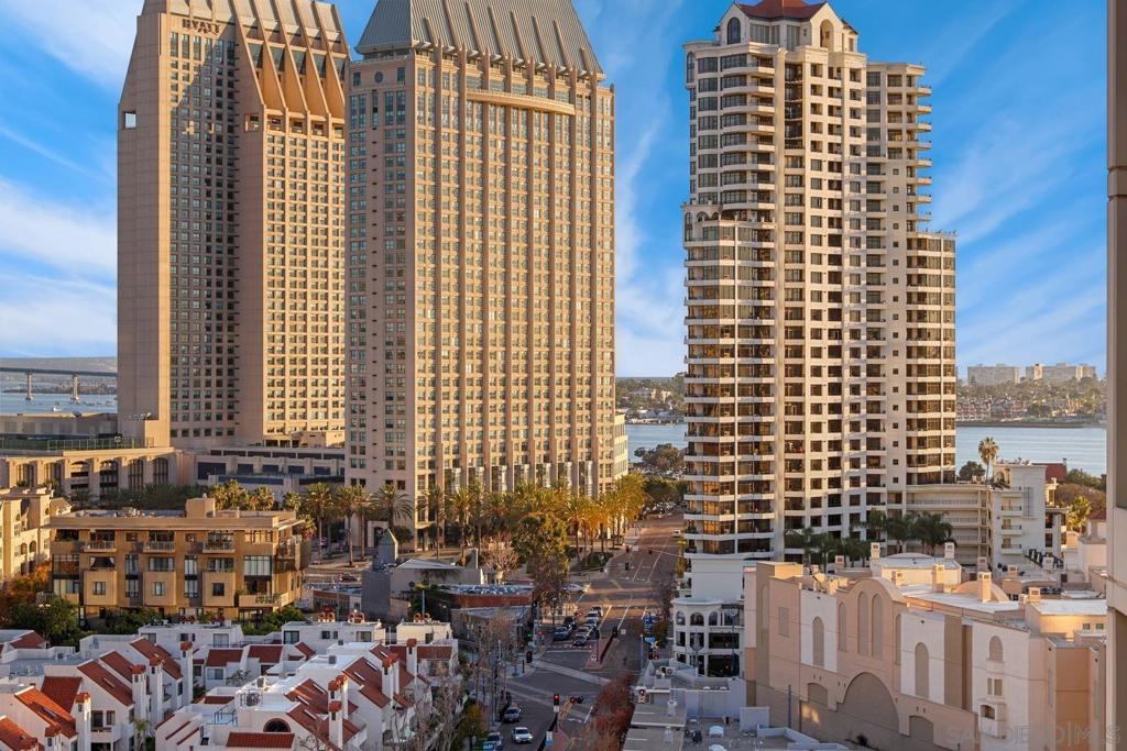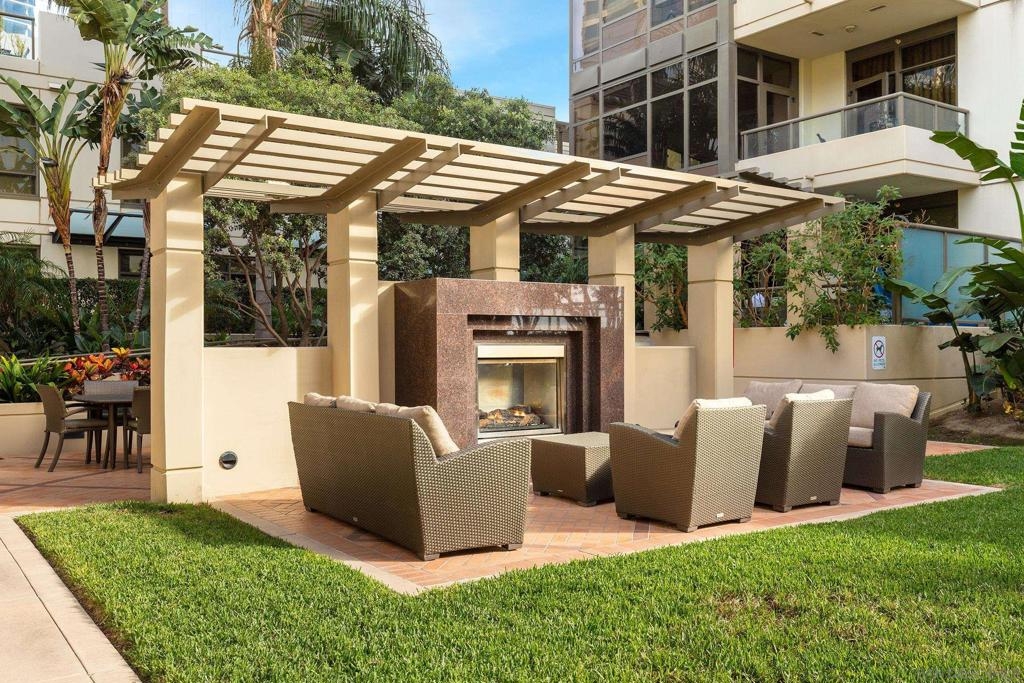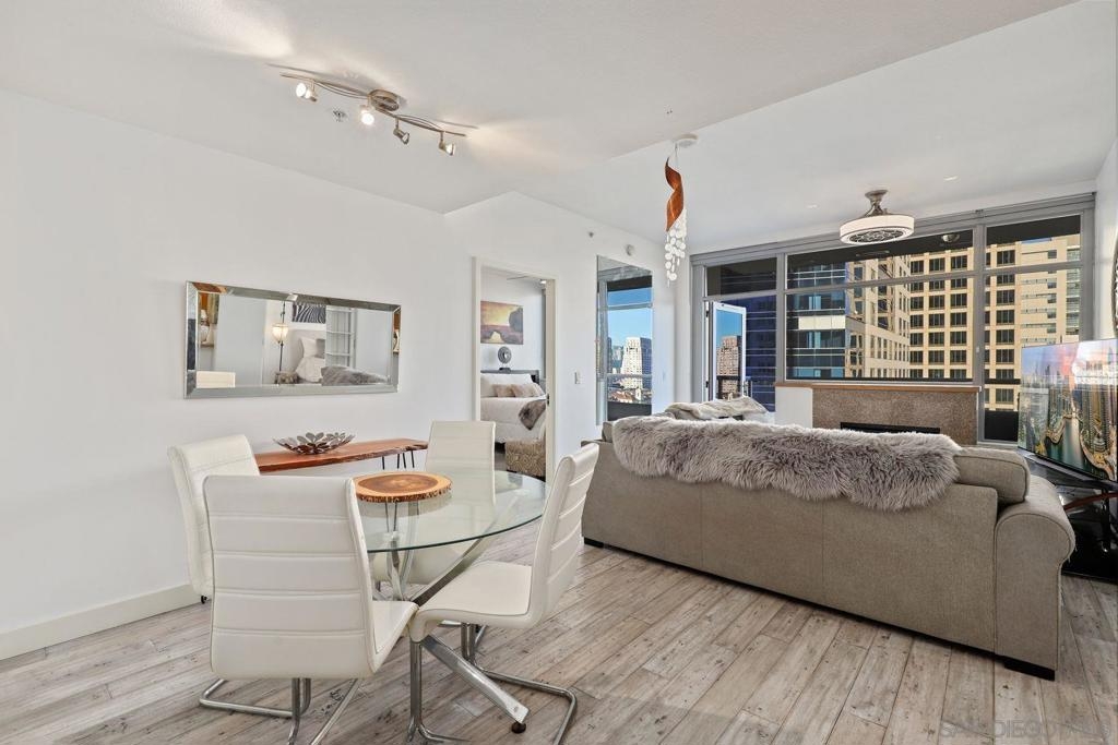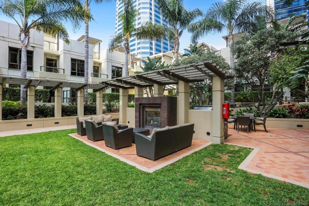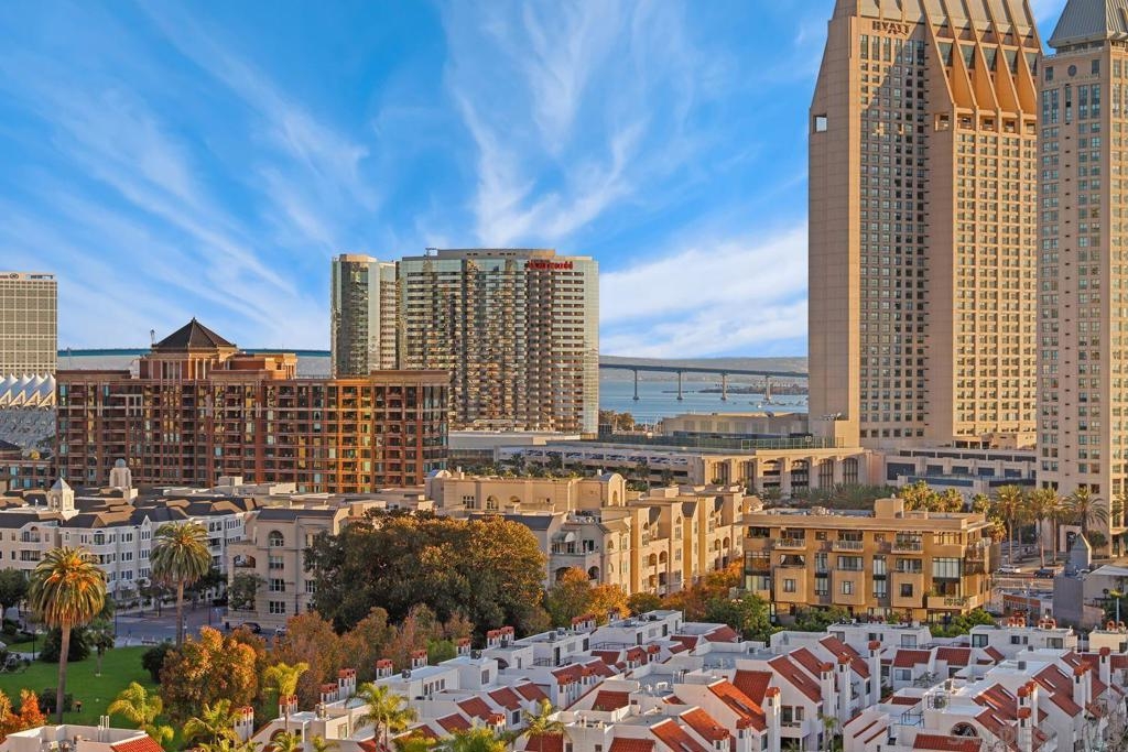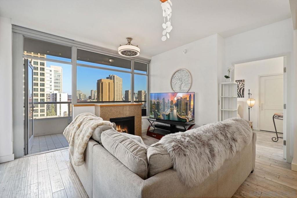 Take this opportunity to live your best life in the lap of luxury at the historical Electra building in the heart of the Marina District! This 13th floor unit enjoys sweeping views of Downtown providing spectacular sunsets and twinkling city lights all year long. Exquisite designer finishes surround you with luxurious living. The light and bright open floor plan is surrounded by windows that bathe the interior in natural light and provide commanding city views. The kitchen, dining area and living room with a cozy fireplace flow seamlessly together for ease of daily living and entertaining. A beautifully appointed kitchen boasting recessed lighting, granite countertops, stainless steel appliances, and warm honey-hued cabinetry with breakfast counter seating that opens to the living area. Sit on the balcony, day or night, sip your favorite beverage while taking in the idyllic San Diego weather. The primary bedroom offers two walk-in closets and its own en-suite bathroom. The secondary bedroom is a generous size, has a walk-in closet, and balcony access. The full-size stackable washer and dryer will take the chore out of laundry day. Electra offers its residents unparalleled amenities and services including a sparkling pools and hot tub, sauna, fully-equipped fitness center, outdoor grilling area, on-site guard, and Concierge. Dog and cat friendly complex. Parking is a breeze with one assigned space with an EV charger in the community garage. In the heart of Downtown, you have all that makes living in San Diego great at your fingertips. To see it is to love it!