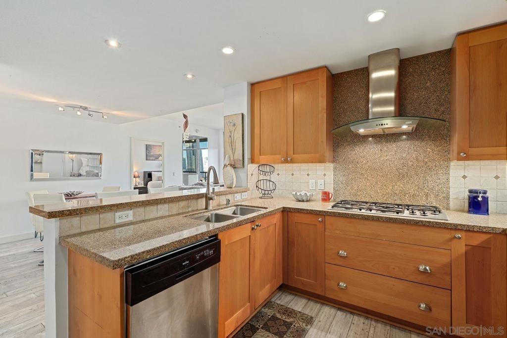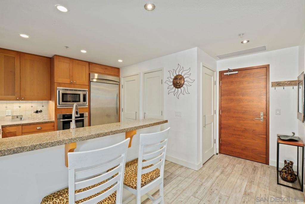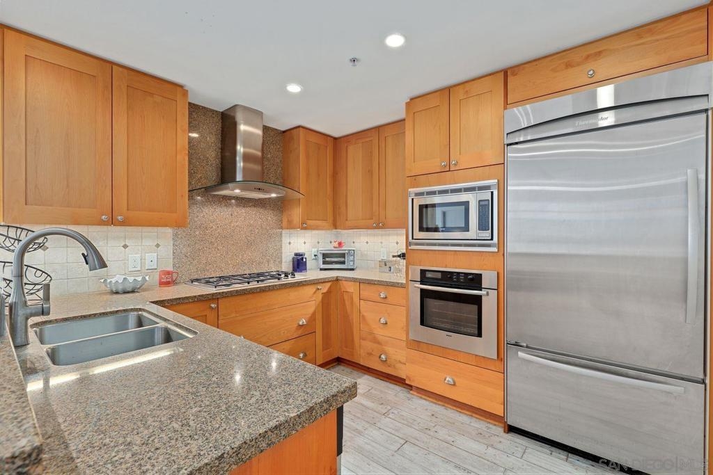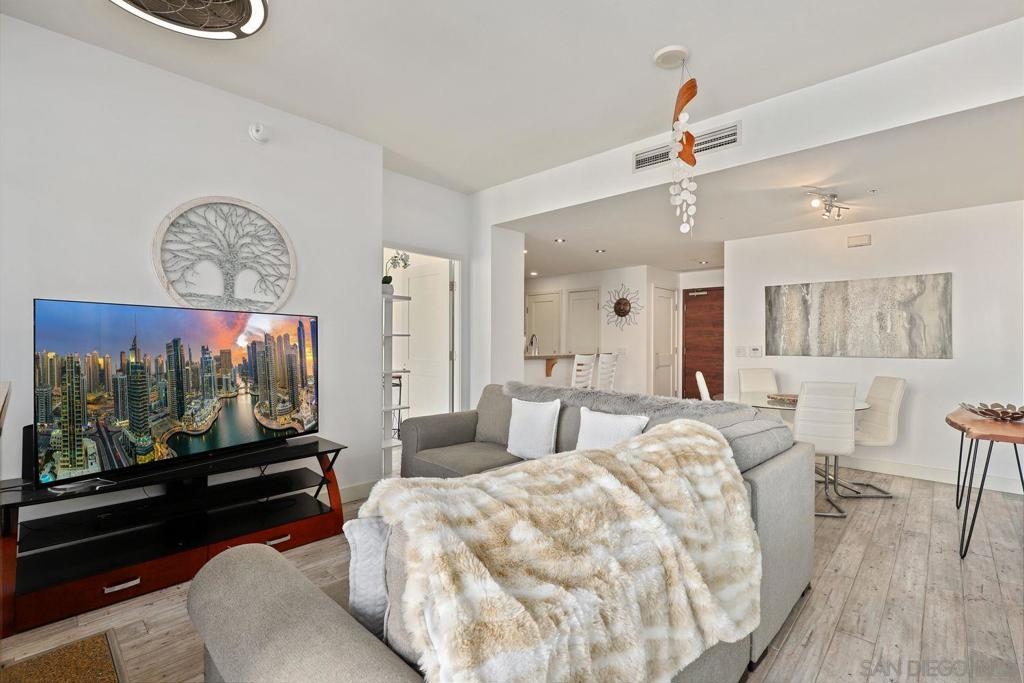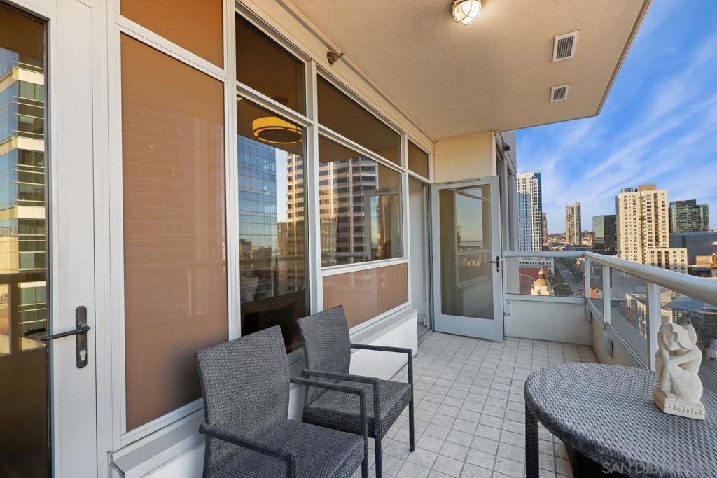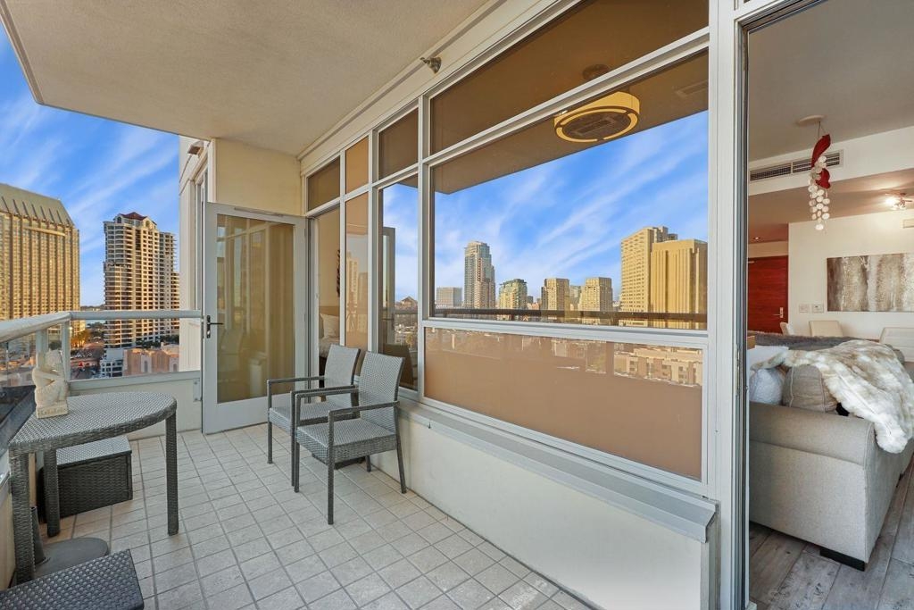 Take this opportunity to live your best life in the lap of luxury at the historical Electra building in the heart of the Marina District! This 13th floor unit enjoys sweeping views of Downtown providing spectacular sunsets and twinkling city lights all year long. Exquisite designer finishes surround you with luxurious living. The light and bright open floor plan is surrounded by windows that bathe the interior in natural light and provide commanding city views. The kitchen, dining area and living room with a cozy fireplace flow seamlessly together for ease of daily living and entertaining. A beautifully appointed kitchen boasting recessed lighting, granite countertops, stainless steel appliances, and warm honey-hued cabinetry with breakfast counter seating that opens to the living area. Sit on the balcony, day or night, sip your favorite beverage while taking in the idyllic San Diego weather. The primary bedroom offers two walk-in closets and its own en-suite bathroom. The secondary bedroom is a generous size, has a walk-in closet, and balcony access. The full-size stackable washer and dryer will take the chore out of laundry day. Electra offers its residents unparalleled amenities and services including a sparkling pools and hot tub, sauna, fully-equipped fitness center, outdoor grilling area, on-site guard, and Concierge. Dog and cat friendly complex. Parking is a breeze with one assigned space with an EV charger in the community garage. In the heart of Downtown, you have all that makes living in San Diego great at your fingertips. To see it is to love it!