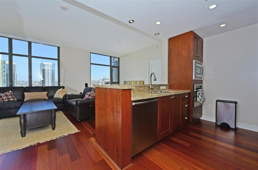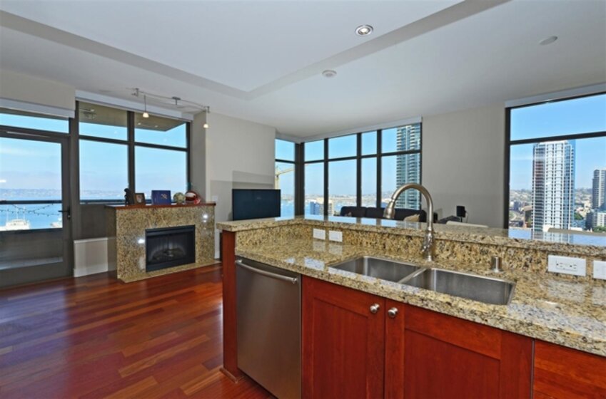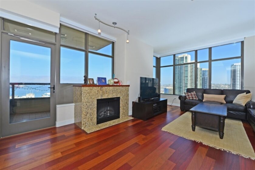 Beautiful 2 bedroom, 2 full bath property in pristine condition w/ stunning panoramic views of San Diego Waterfront from the 14th floor. Interior finishes include Hardwood floors, Black Sapphire Granite Counters & stainless steel Appliances. One of the more popular floor plans boasting split bedroom design w/ walk-in master closet. Includes 1 assigned parking space & additional storage. ARGUABLY THE BEST ADDRESS ON THE WEST COAST. Electra is a Full-Amenity Residential Tower. Please see supplements below! Neighborhoods: Columbia District Complex Features: ,,,,,,,,, Equipment: Dryer,Fire Sprinklers,Garage Door Opener, Range/Oven, Washer Other Fees: 0 Sewer: Sewer Connected Topography: LL
