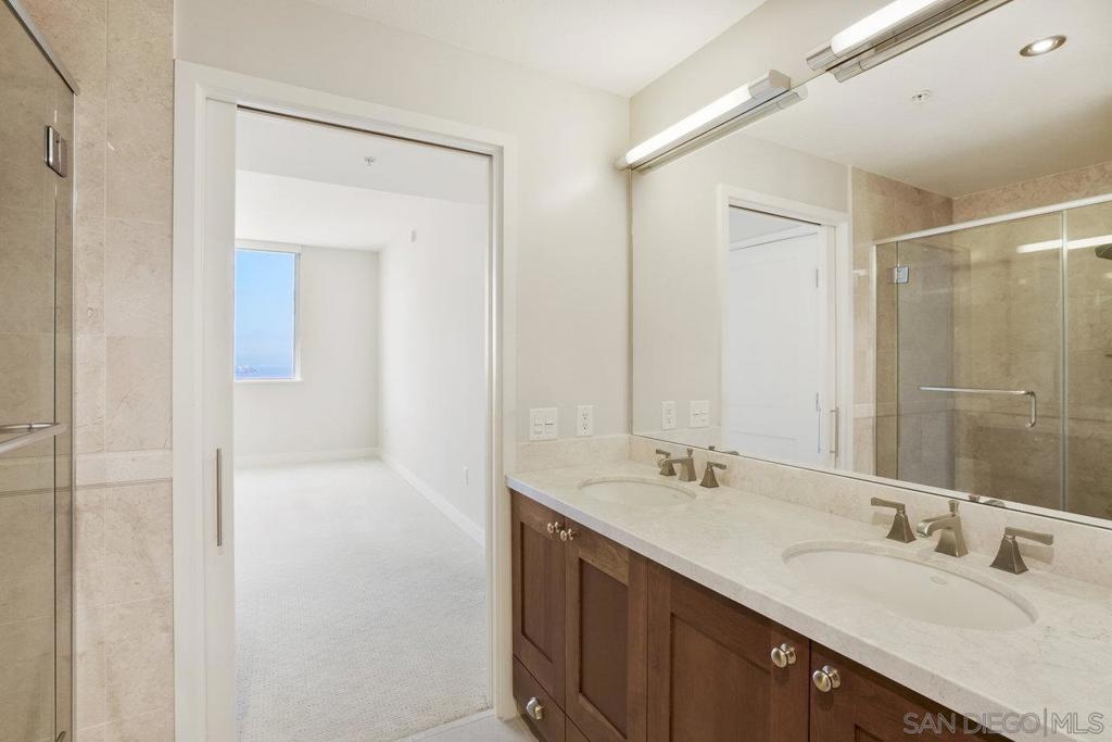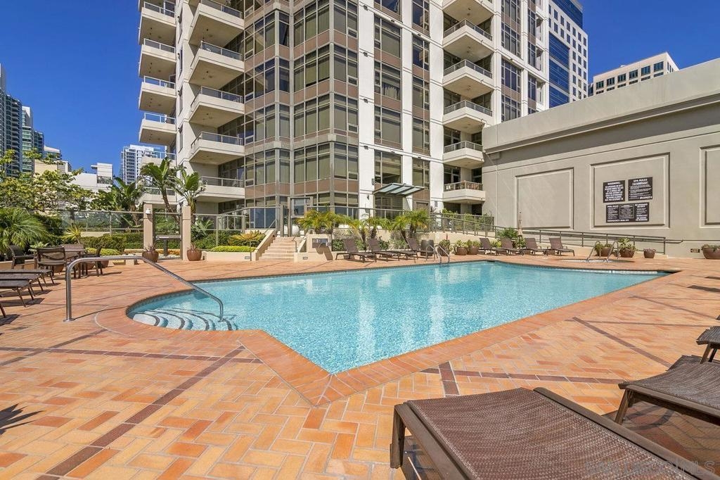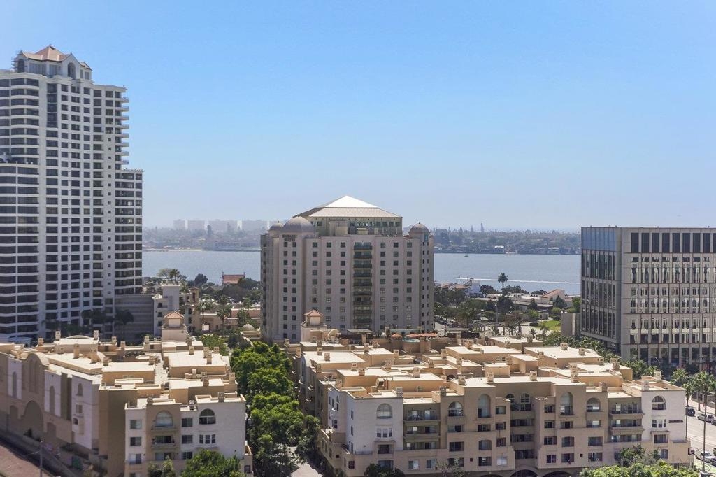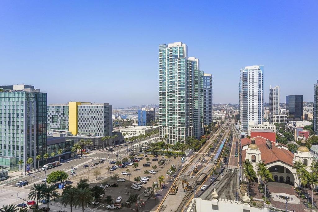 Experience water facing views and luxury high-rise living at the Electra in downtown San Diego. This modern, elegant 2-bedroom, 2-bath residence offers breathtaking water views of San Diego Bay and sweeping cityscape ambience. The open-concept living area is bathed in natural light from floor-to-ceiling windows. Step out onto your balcony to immerse yourself in the view! The sleek kitchen features Thermador refrigerator, Bosch 5 burner gas range, oven, microwave, dishwasher, washer, and dryer and ample storage. The primary suite includes a spacious en-suite bathroom, and the second bedroom offers room for second bedroom, office, or guest room with its own bath. Enjoy exclusive amenities such as a pool, spa, sauna, gym, and 24-hour concierge and security services. Elevate your lifestyle in this prestigious address. Electra is unique built on the historical San Diego Gas & Electric station. Life at Electra is elevated with an array of luxury amenities and close to Santa Fe Train Station, Seaport Village, Rady's Shell at Jacobs Park a stunning music venue and home of the San Diego Symphony! The 24-hour concierge and security service ensure peace of mind and convenience.