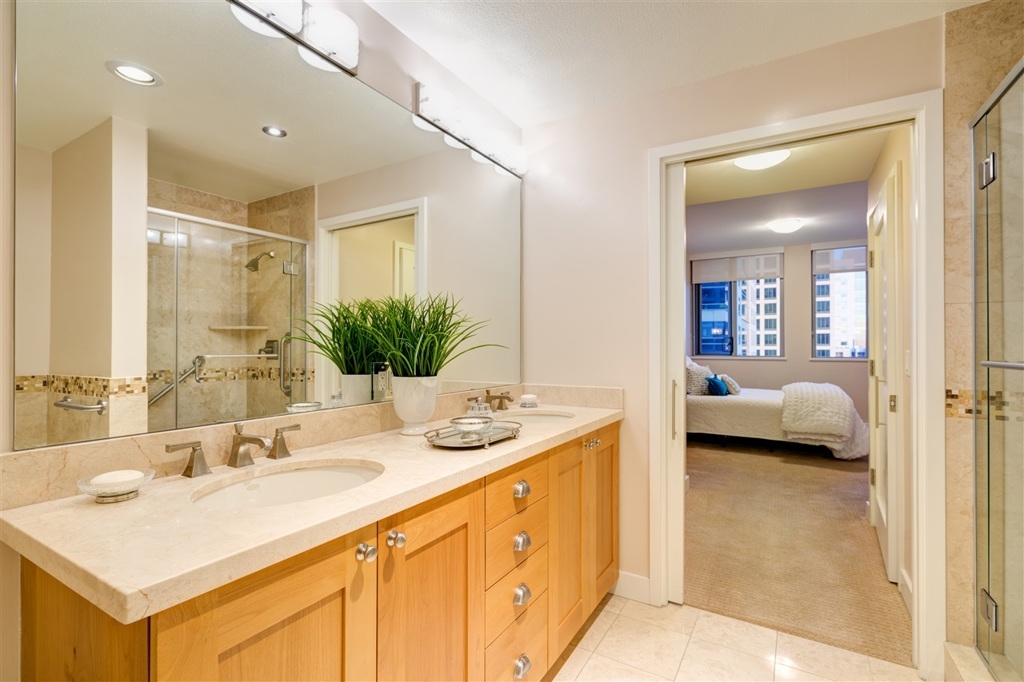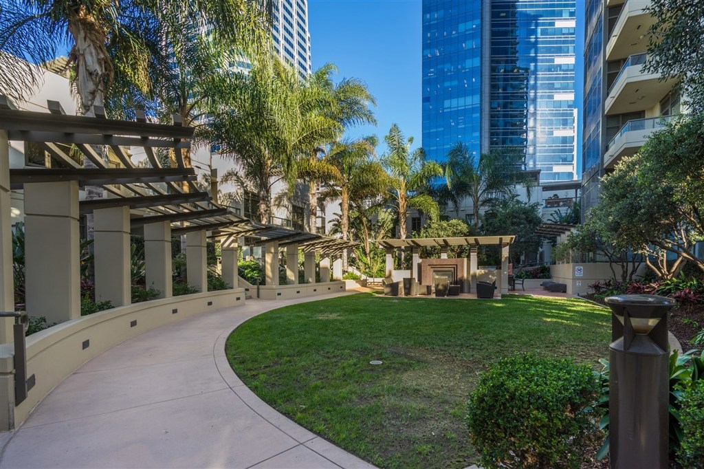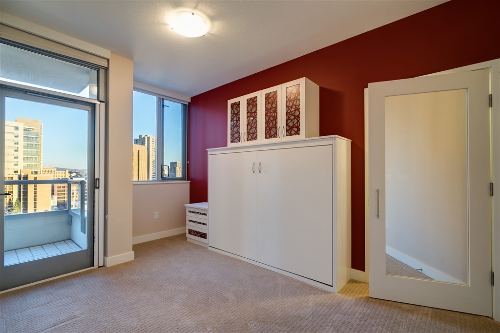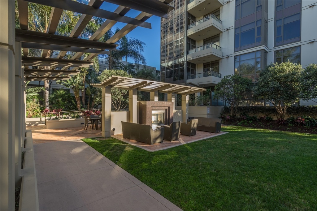 You know you've arrived when the concierge greets you on the way to your new home at Electra. This highly coveted residence is unique in that it is known as the tallest residential tower in San Diego County and is built atop the historic 1928 San Diego Gas & Electric building. Walls of windows and a spacious balcony flood this residence with natural light offering bay and city views as well as of the iconic Coronado Bridge and local mountains. See supplement for numerous upgrades and more! This southeast facing residence offers a spacious open floor plan that boasts numerous upgrades including bamboo hardwood floors, upgraded carpet, fireplace with granite surround, recessed and custom lighting thruout. Cozy up to the breakfast bar or get your chef on in this gourmet kitchen featuring granite counters and backsplash, Bosch cook-top and stainless steel high-end appliances. You will love the master bedroom with 2 walk-in closets, en-suite bath with dual sinks, deep soaking tub and separate walk-in shower. The guest bedroom offers a walk-in closet, custom California Closets Murphy Bed and cabinets and includes a 2nd entrance out to the patio allowing your guests to enjoy the marvelous sunsets. This amazing restoration within the idyllic Columbia District boasts a grand resident lobby with 60' ceilings and skylights drenching it in natural light. This residence has the distinction of being rated 93 on Walkscore which means this is a walkers paradise and very bikeable. A short walk to Waterfront Park, Seaport Village, The Headquarters, Little Italy & more! Electra amenities include: concierge, underground parking, spa, steam, outdoor heated pool, fitness center, hot tub. From the 5th floor pool be sure to follow the path where you will find Electra's green grass park with a cozy fireplace and BBQ's allowing you to enjoy San Diego's finest weather yearlong! All information deemed reliable but not guaranteed. Buyer and buyers agent to verify all including...