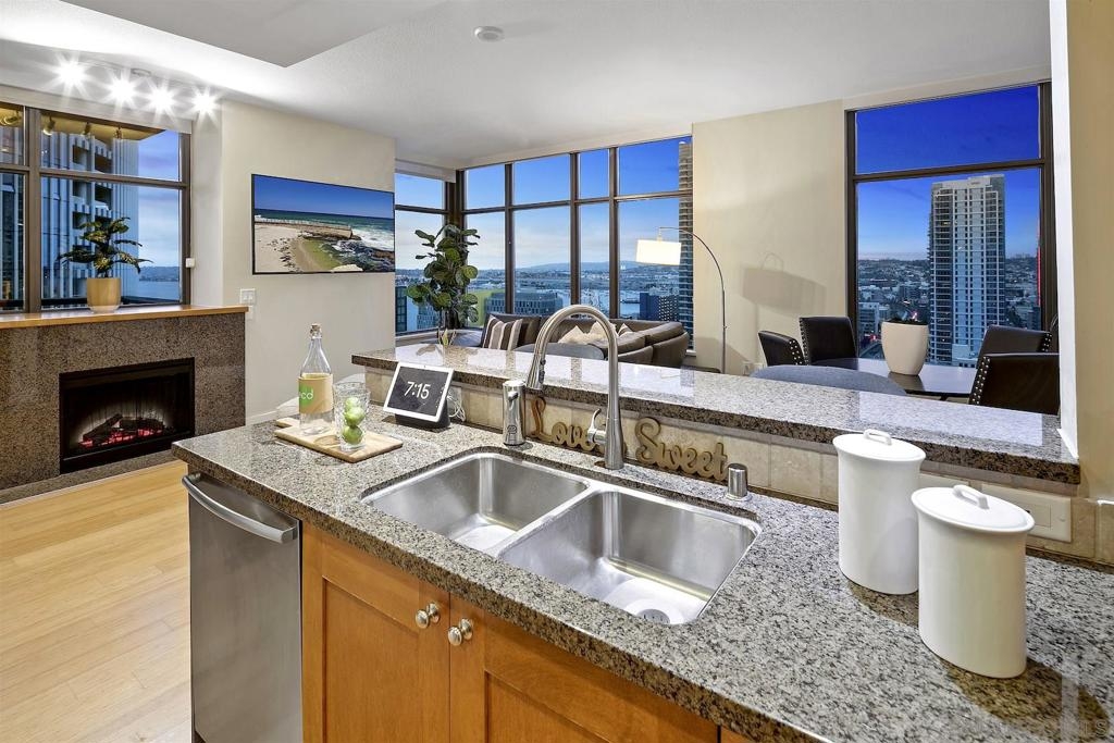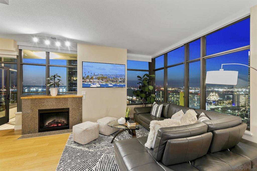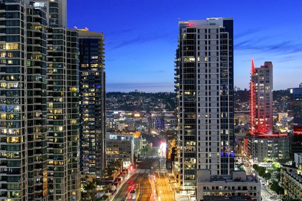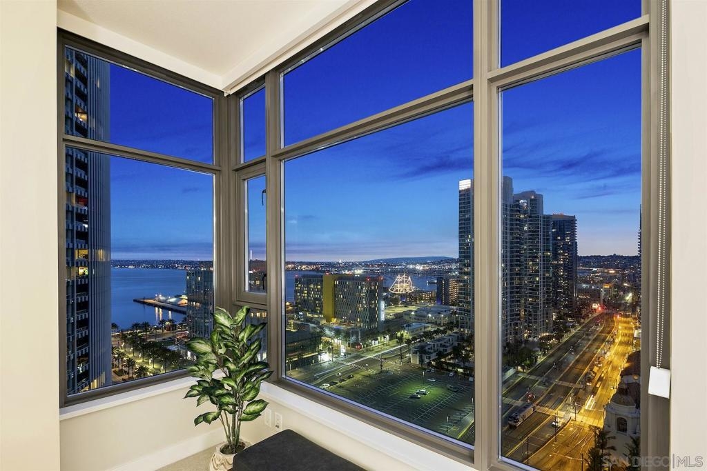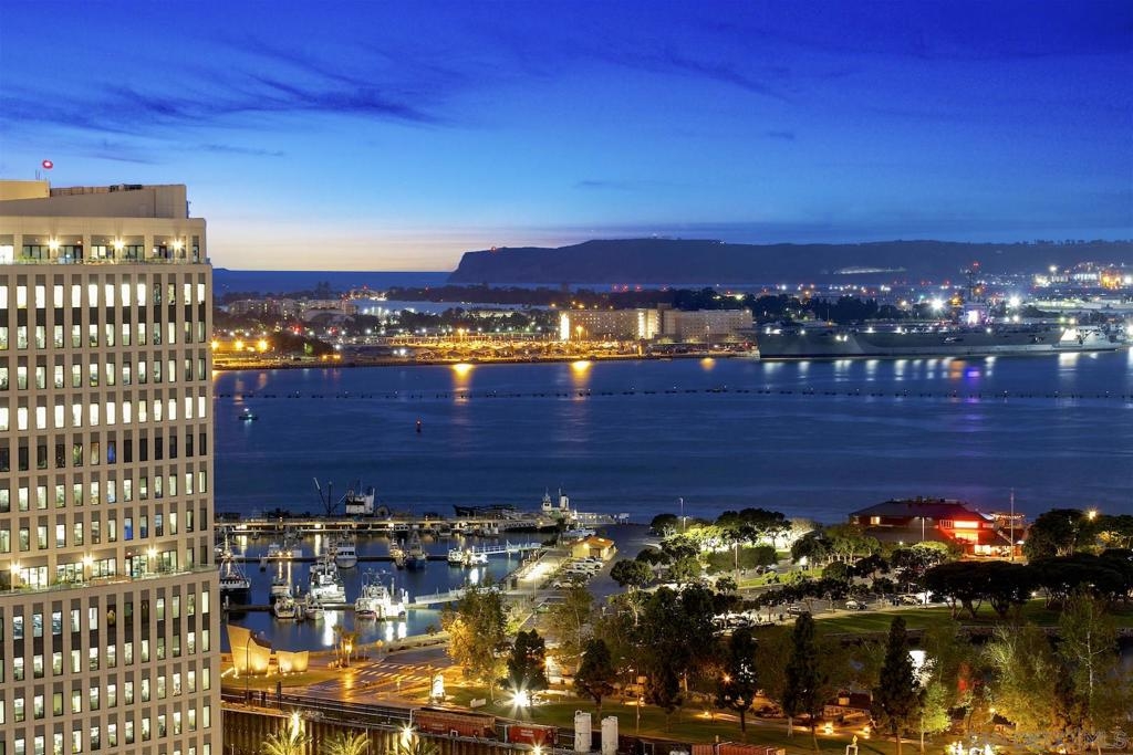 Welcome to Electra 2103! Located in one of Downtown San Diego's most luxurious condo high-rises, Electra 2103 showcases beautiful, panoramic water views to the West, & city skyline views to the North. This '03 orientation is highly sought after for its split bedroom layout, and open living area. This home is one of the few that received stylish bamboo hardwood flooring in the living area. The modern kitchen is outfitted with recessed lighting and stainless steel appliances. The in-unit, full sized, stacked washer & dryer has its own designated room. 2 parking spaces + an additional private storage cage in in the garage. Electra is widely considered as Downtown's preeminent luxury condo high-rise. Originally home to the SDGE power plant, this historical landmark was renovated, and built up in 2008. Electra amenities include: 24 hour door person, fitness center, rooftop pool & spa deck with designated BBQ area, steamroom, sauna, and community conservatory with ample seating spaces and extra kitchen. Complex Features: ,,,,,,,, Equipment: Dryer,Fire Sprinklers,Garage Door Opener, Range/Oven, Washer Sewer: Sewer Connected Topography: LL
