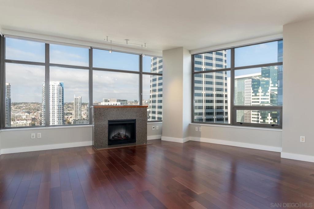This beautifully-positioned corner unit with floor-to-ceiling windows on the 24th floor offers sweeping NW-NE harbor and city views. Home features TWO balconies, gorgeous wood floors, fireplace, chef's kitchen with gas range, high-end steel appliances and granite counters, in-unit laundry, walk-in closet with built-in system to maximize space...the list goes on. Electra offers pool, spa, gym, 60-ft community atrium, concierge, security and more. Harbor, Little Italy and downtown are all just minutes away! Equipment: Dryer,Fire Sprinklers, Washer Other Fees: 0 Sewer: Sewer Connected Topography: LL