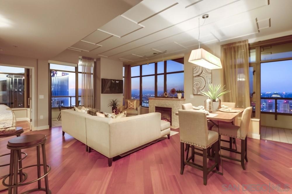 Highest condo for sale in San Diego! Amazing panoramic ocean, bay, city and mountain views. You're so high up at 41 stories you can see over the other condo buildings in downtown and the see the ocean waves breaking on the beach in Coronado. This former Bosa model home has some unique finishes not put into other units. Great two bedroom, two bath, plus den floor plan with views from every room plus two balconies and a separate laundry room. Two awesome parking spaces side by side 27' wide. The photos you see are the actual views, none were taken with a drone. Gourmet kitchen complete with 5 burner gas top and long breakfast bar with room to seat four. Unit comes with a storage room inside the unit and one of the largest storage cages in the garage (E-79). Two of the best side by side parking in the above ground garage with no one else on either side #343 & 344 (27 feet wide). The views are so incredible you can even see the ocean waves breaking on the beach in Coronado. Electra by Bosa Development has created a landmark and set a new standard for luxury living in Southern California. This iconic building will be treasured for generations with historic detailing preserved by Bosa to create a world class residential tower. Be amazed at the transformation of historical 1928 SDG&E 'Station B' into an unrivaled living experience. Upon entering you will be engaged by the grand porte-cochere & Electra's stunning lobby. Incredible millwork and stone detailing reserved for only the finest boutique hotels abound. The intricate glass dome is the crowning glory of the 7-story 'Conservatory', perfect for entertaining and stargazing. Hand wrapped books complete the luxury decor of the stunning library. Enjoy soft music from the grand piano, sophisticated furnishings, art, and the stunning Art Deco detail of the early 20th century columns and arches, painstakingly restored by Bosa's craftsman..........This is the "Deal you have been waiting for", Sellers Loss is Your Gain! Complex Features: ,,,,,,,, Equipment: Dryer, Washer Other Fees: 0 Sewer: Sewer Connected Topography: LL