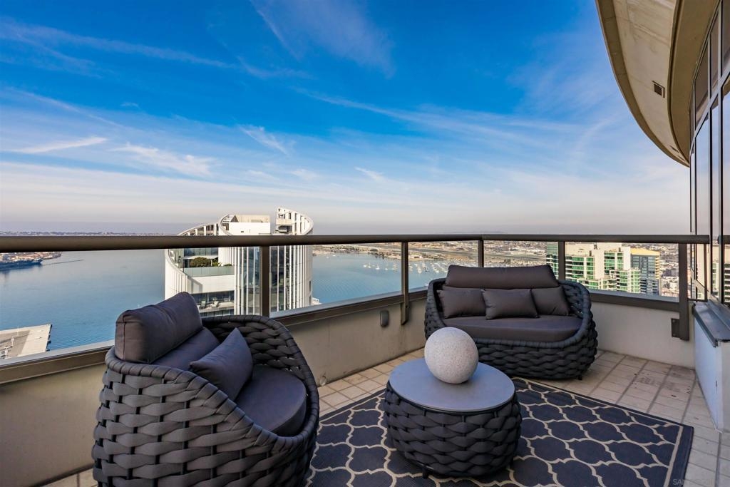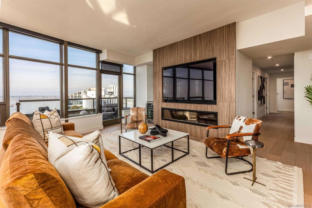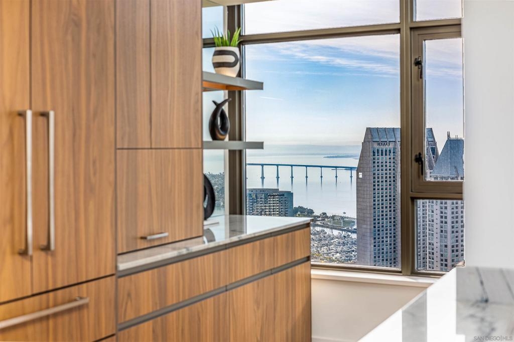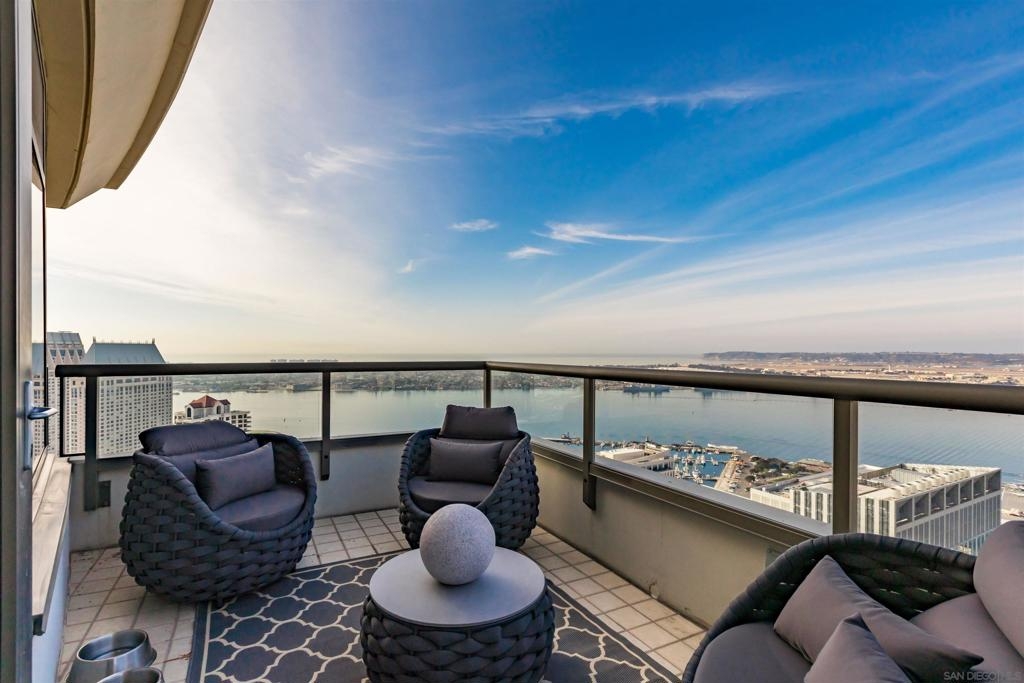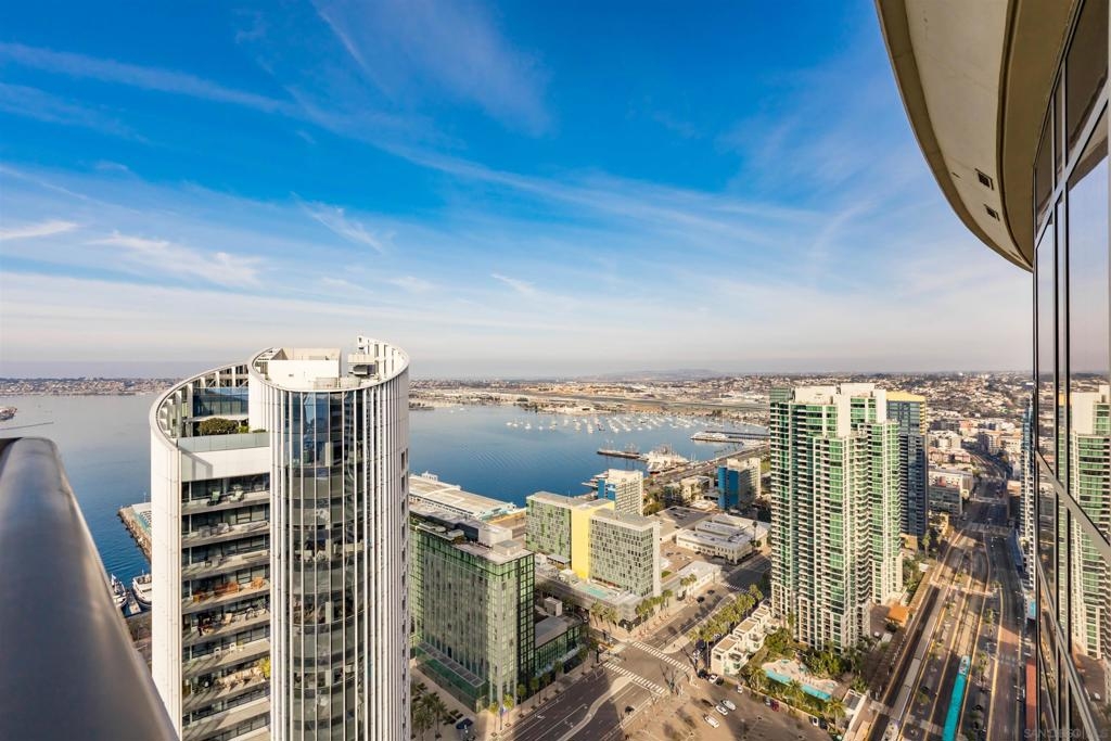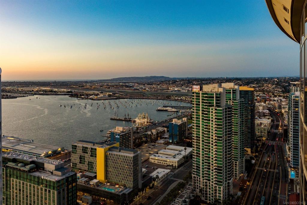 This southwest-facing Electra Penthouse is a once-in-a-lifetime find with its magnificent corner of the building placement, soaring above the skyline with panoramic bay and ocean views that stretch from the city lights to Coronado and Point Loma. Whether you’re soaking in the sunrise over the city or enjoying the sunset over the bay, the views are nothing short of spectacular from inside and on the balcony! Never before listed, this is your opportunity to own this completely remodeled Penthouse in its own corner of the sky. Discover an entertainer's dream, with an open floor plan that seamlessly connects the living room, dining area, and kitchen all enjoying those sweeping views and sunsets. The chef’s kitchen boasts stainless steel appliances, sleek, modern cabinetry, a large breakfast bar finished with a waterfall edge, and plenty of counter space. Three bedrooms, two full baths, and ample storage complete the offerings of this spectacular property. Take your company and favorite beverages to the balcony to enjoy year-round sunshine, breathtaking city views, and unforgettable sunsets. Located in the heart of Downtown, Electra offers luxury resort-style living with exceptional amenities, including Concierge service, controlled access, sparkling pool and spa, sauna, a fully-equipped fitness center, outdoor BBQ area, serene greenbelt, a clubhouse, and a stunning lobby. Don’t miss this rare opportunity – a must-see for those who seek unparalleled luxury in Downtown San Diego!