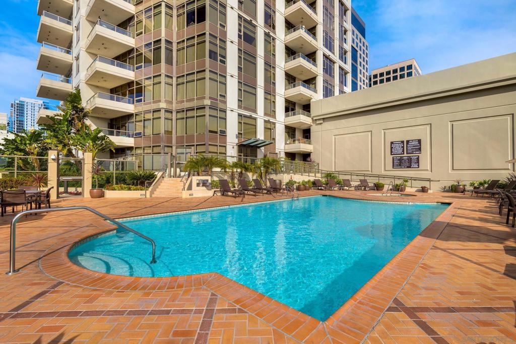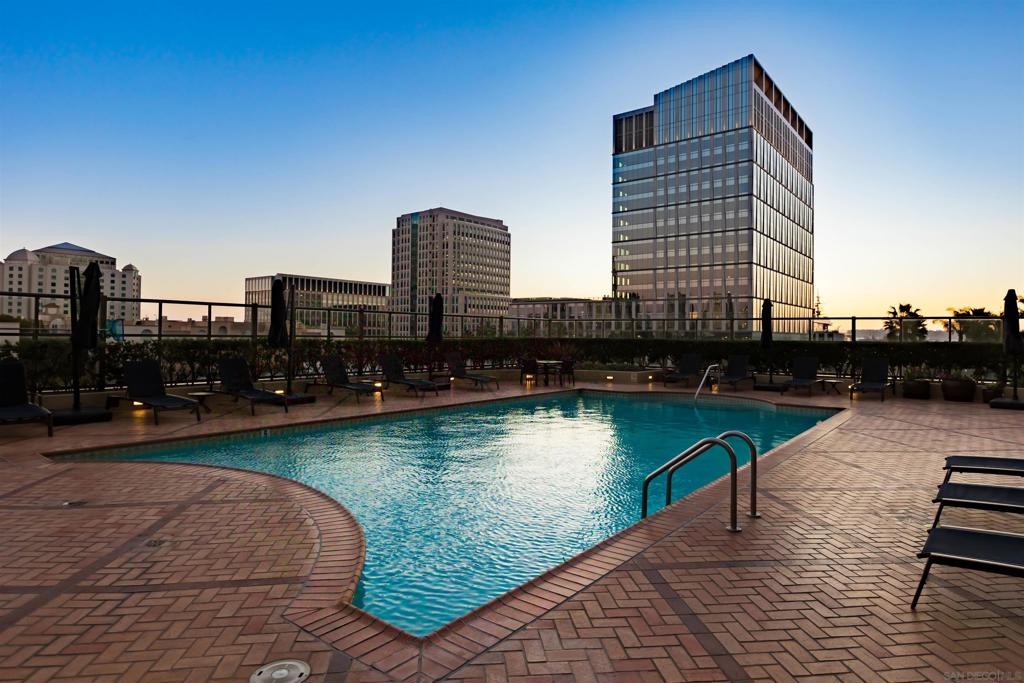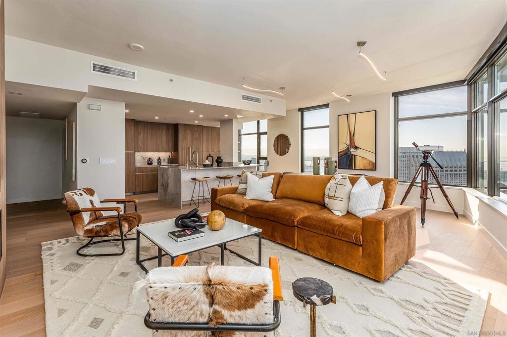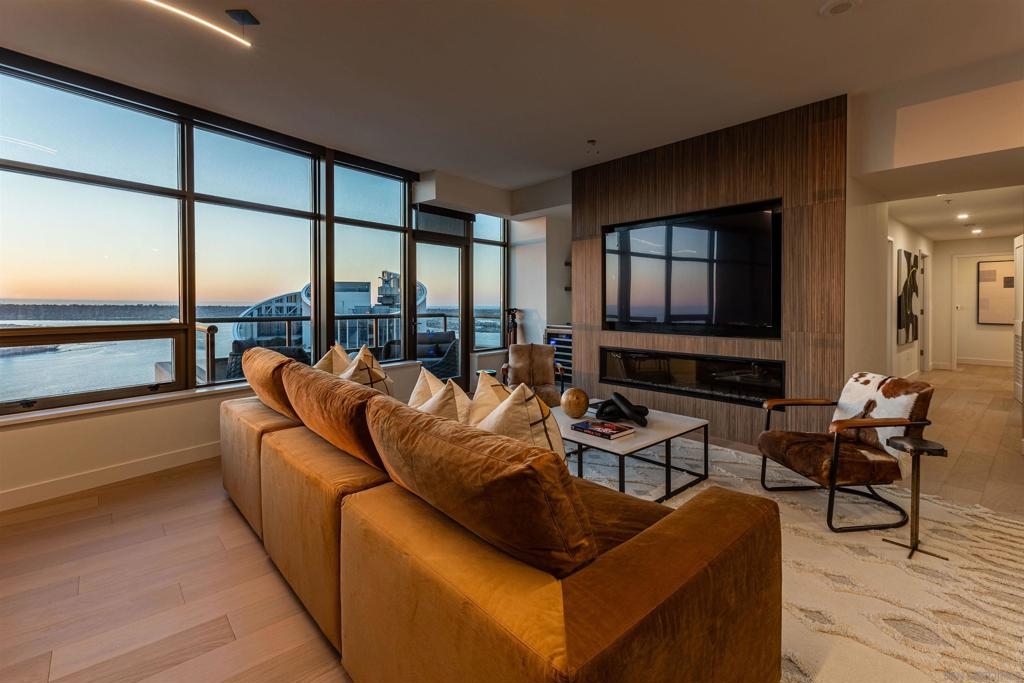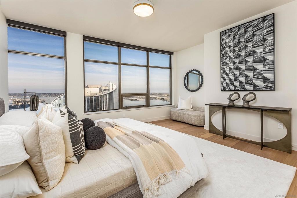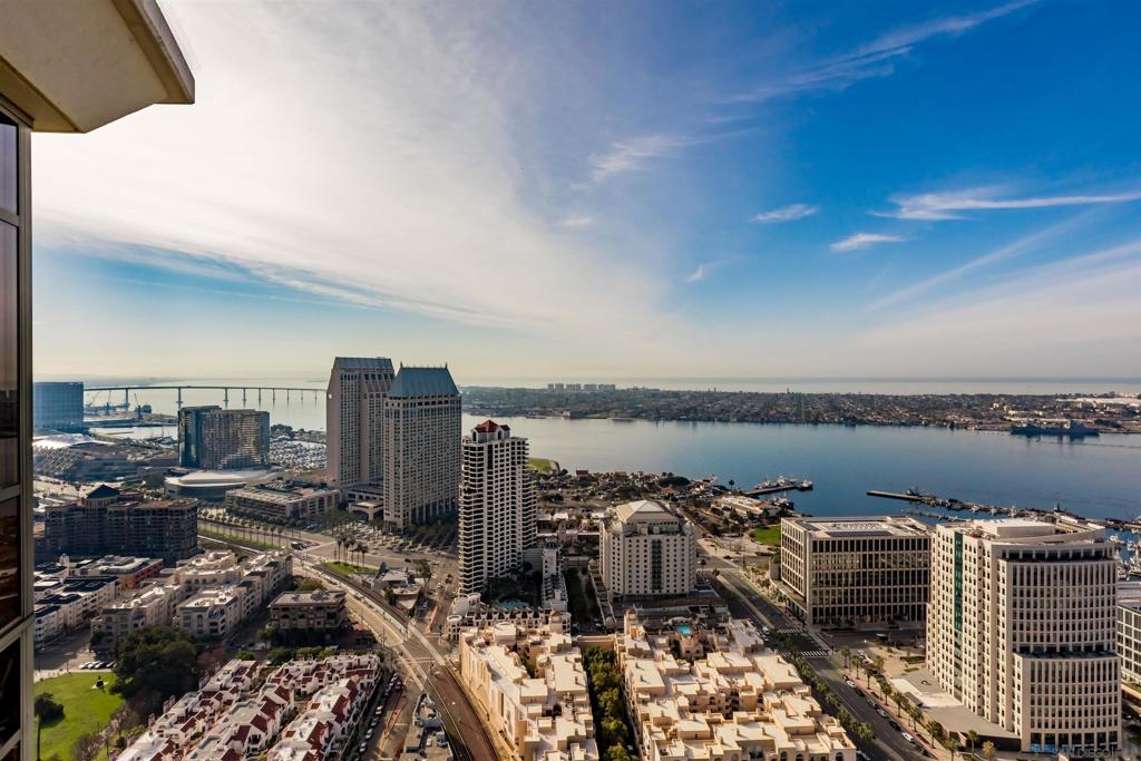 This southwest-facing Electra Penthouse is a once-in-a-lifetime find with its magnificent corner of the building placement, soaring above the skyline with panoramic bay and ocean views that stretch from the city lights to Coronado and Point Loma. Whether you’re soaking in the sunrise over the city or enjoying the sunset over the bay, the views are nothing short of spectacular from inside and on the balcony! Never before listed, this is your opportunity to own this completely remodeled Penthouse in its own corner of the sky. Discover an entertainer's dream, with an open floor plan that seamlessly connects the living room, dining area, and kitchen all enjoying those sweeping views and sunsets. The chef’s kitchen boasts stainless steel appliances, sleek, modern cabinetry, a large breakfast bar finished with a waterfall edge, and plenty of counter space. Three bedrooms, two full baths, and ample storage complete the offerings of this spectacular property. Take your company and favorite beverages to the balcony to enjoy year-round sunshine, breathtaking city views, and unforgettable sunsets. Located in the heart of Downtown, Electra offers luxury resort-style living with exceptional amenities, including Concierge service, controlled access, sparkling pool and spa, sauna, a fully-equipped fitness center, outdoor BBQ area, serene greenbelt, a clubhouse, and a stunning lobby. Don’t miss this rare opportunity – a must-see for those who seek unparalleled luxury in Downtown San Diego!