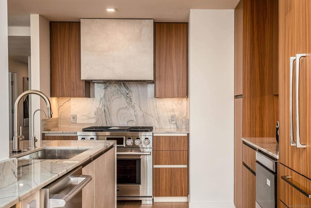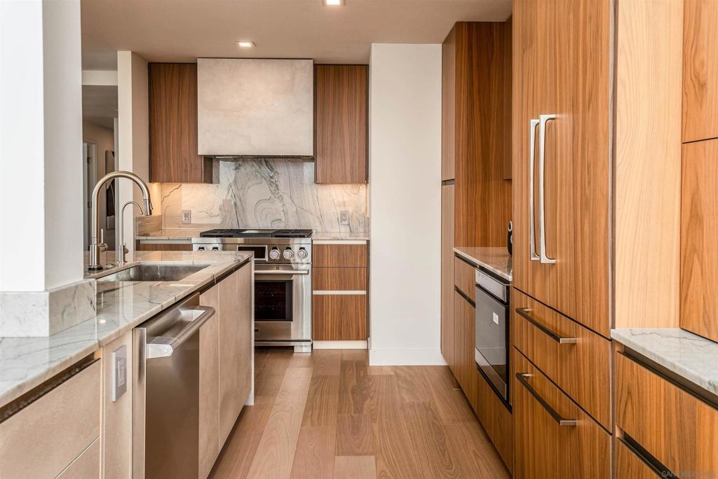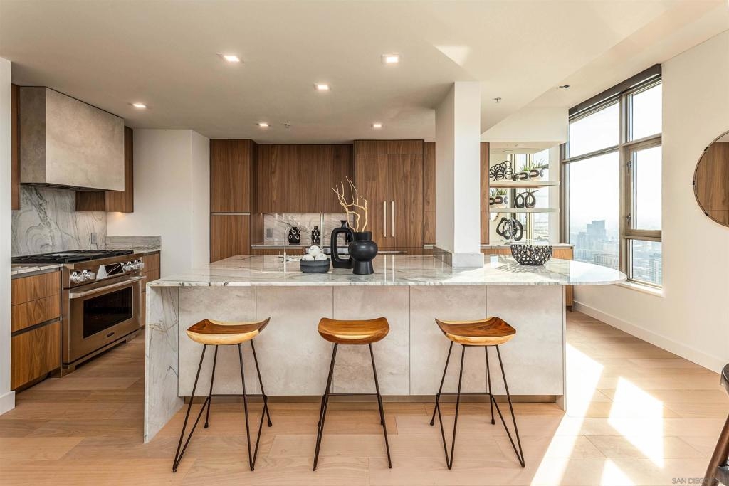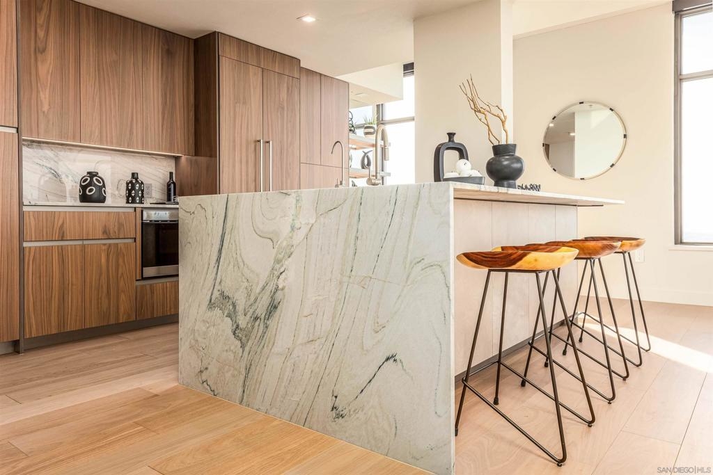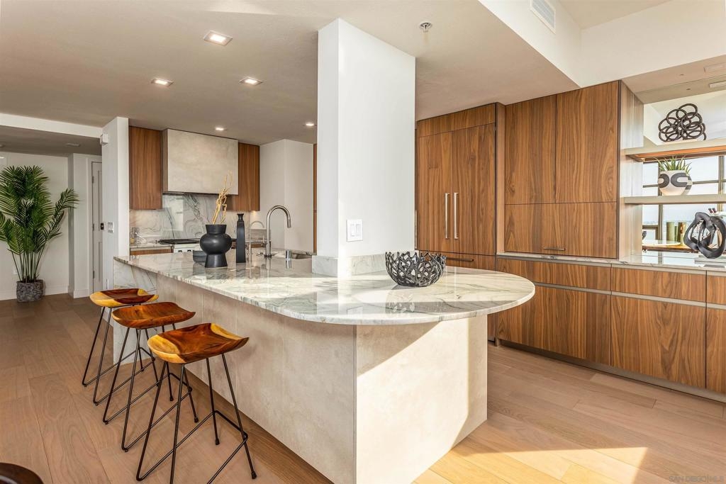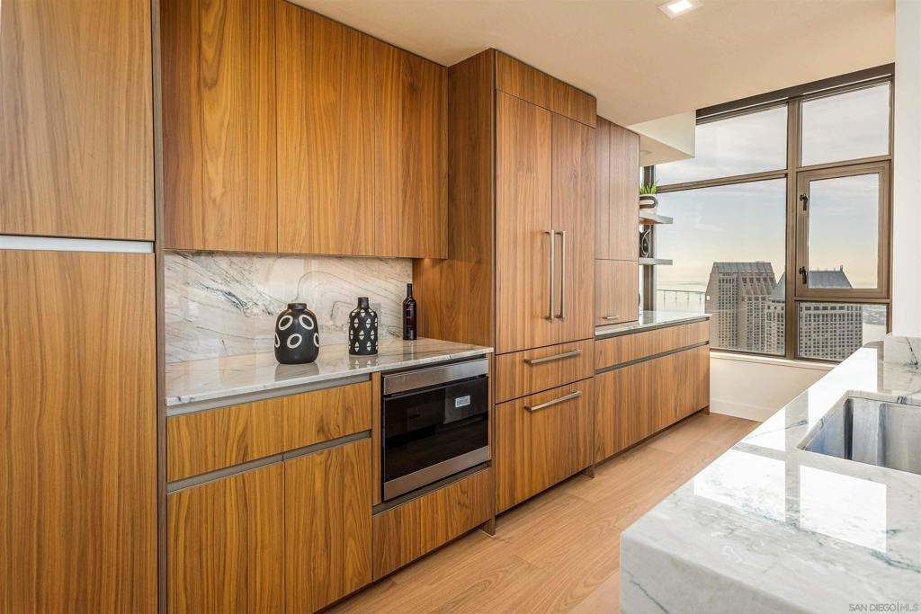 This southwest-facing Electra Penthouse is a once-in-a-lifetime find with its magnificent corner of the building placement, soaring above the skyline with panoramic bay and ocean views that stretch from the city lights to Coronado and Point Loma. Whether you’re soaking in the sunrise over the city or enjoying the sunset over the bay, the views are nothing short of spectacular from inside and on the balcony! Never before listed, this is your opportunity to own this completely remodeled Penthouse in its own corner of the sky. Discover an entertainer's dream, with an open floor plan that seamlessly connects the living room, dining area, and kitchen all enjoying those sweeping views and sunsets. The chef’s kitchen boasts stainless steel appliances, sleek, modern cabinetry, a large breakfast bar finished with a waterfall edge, and plenty of counter space. Three bedrooms, two full baths, and ample storage complete the offerings of this spectacular property. Take your company and favorite beverages to the balcony to enjoy year-round sunshine, breathtaking city views, and unforgettable sunsets. Located in the heart of Downtown, Electra offers luxury resort-style living with exceptional amenities, including Concierge service, controlled access, sparkling pool and spa, sauna, a fully-equipped fitness center, outdoor BBQ area, serene greenbelt, a clubhouse, and a stunning lobby. Don’t miss this rare opportunity – a must-see for those who seek unparalleled luxury in Downtown San Diego!