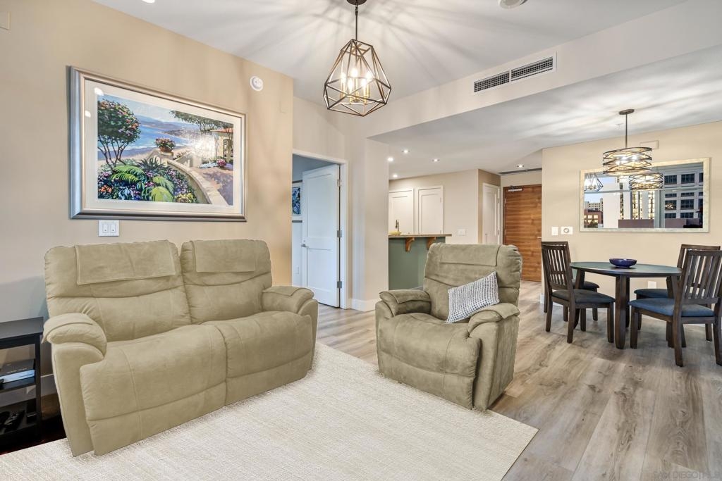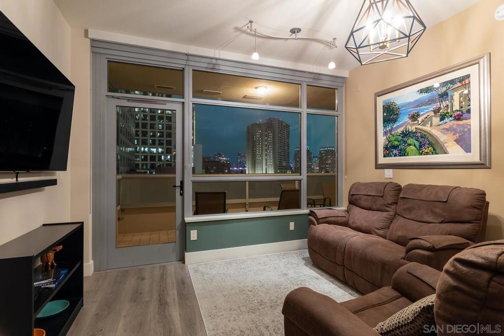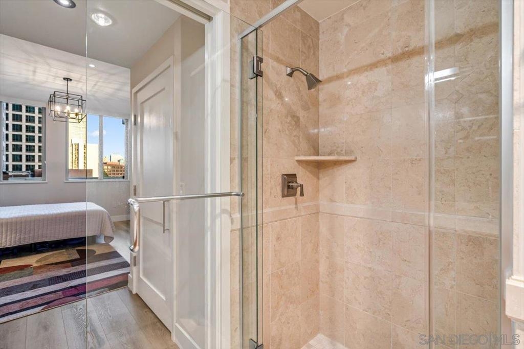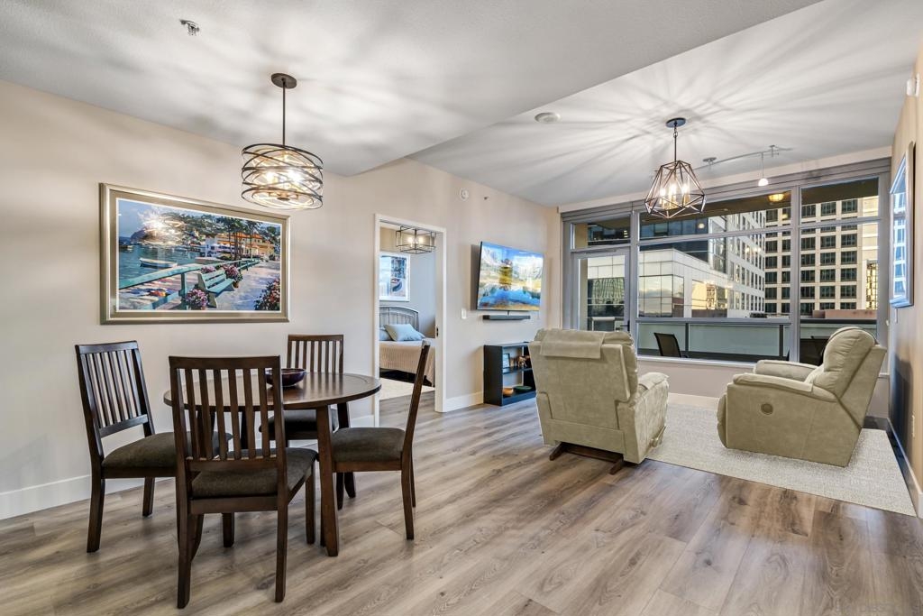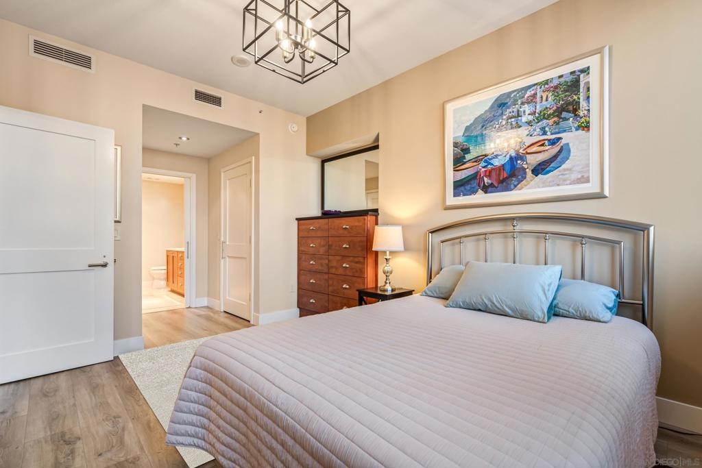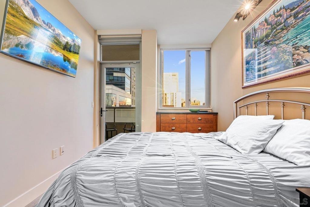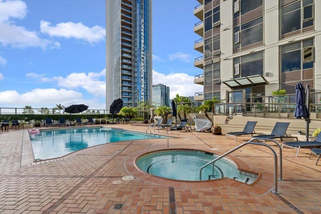 Welcome to this immaculate and beautifully upgraded 2-bed, 2-bath condo on the 8th floor with panoramic easterly city views. Enjoy luxury vinyl plank flooring, custom built-ins in both bedrooms, and a gourmet kitchen with granite counters, stainless steel appliances, and a breakfast bar. The spacious layout offers split bedrooms for privacy, with the primary suite featuring dual closets, maple built-ins, double sinks, soaking tub, and separate shower. Additional upgrades include smart lighting, Nest thermostat, newer washer/dryer, private balcony, EV parking, and oversized storage. Feels like living in a luxury hotel with 24-hour concierge, front desk security, gym, sauna, steam room, and BBQ area. Offered furnished—ask for details. Located in the prestigious Electra building, one of Downtown's most sought-after high-rise communities, this condo provides access to an exceptional lifestyle. Just steps from the water’s edge, you’ll enjoy proximity to Harbor Drive, Little Italy, the Ballpark, & the Gaslamp District. For a quick getaway, hop on a water taxi to explore Coronado. Electra offers unparalleled amenities, including a resort-style swimming pool, spa, fitness center, steam room, & sauna. The luxurious community room is perfect for entertaining, featuring a full kitchen, wine storage, & a piano. Residents also benefit from 24-hour security & concierge services, ensuring both convenience & peace of mind. This move-in-ready condo offers high-end finishes, thoughtful design, & ultimate convenience for elevated city living.