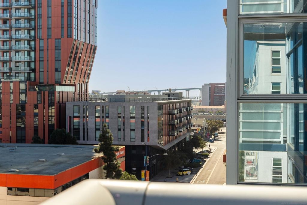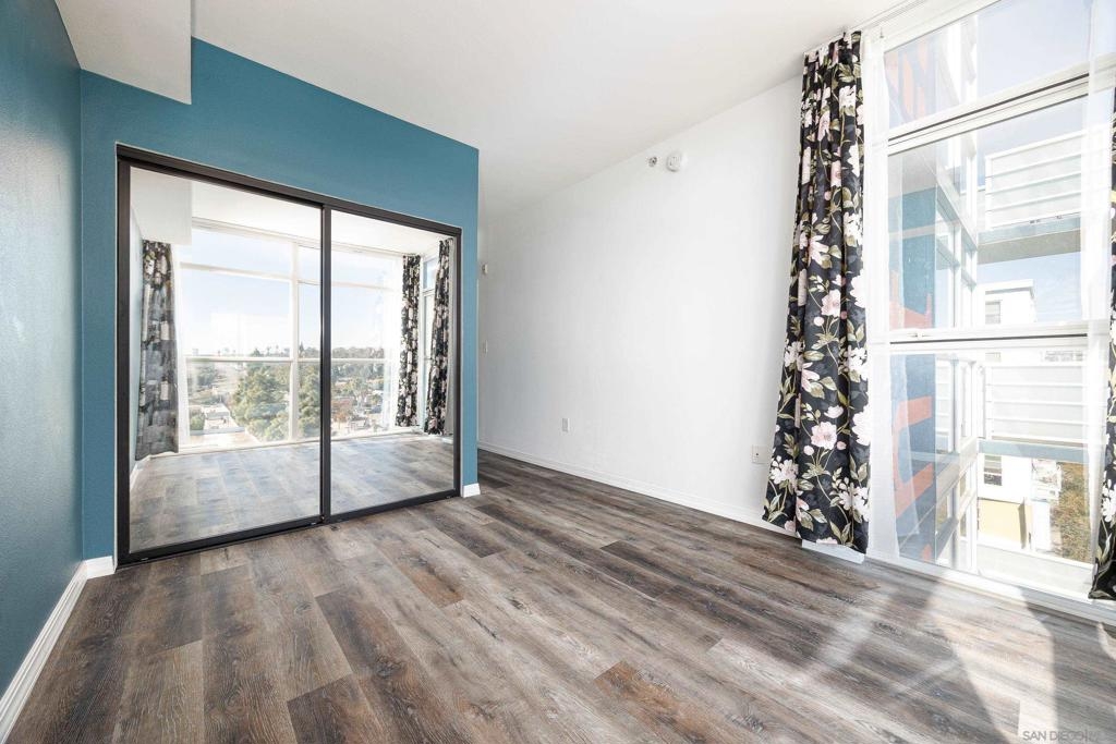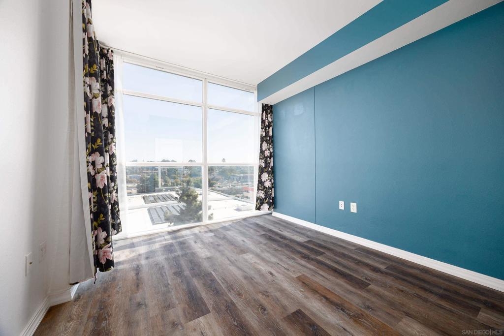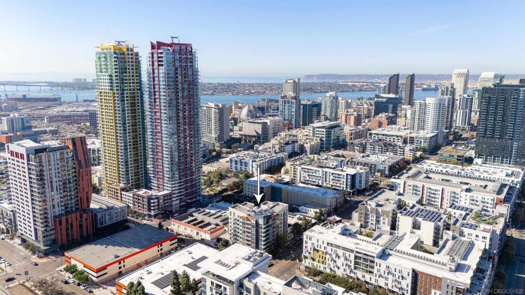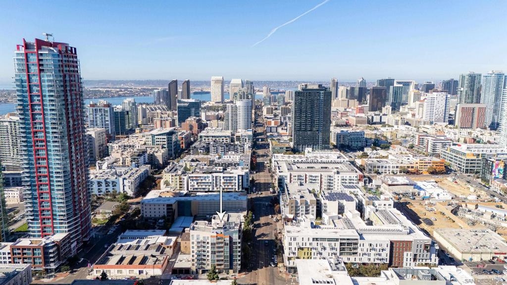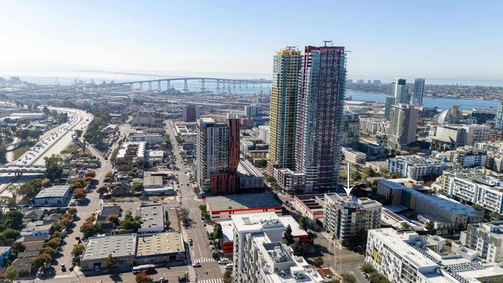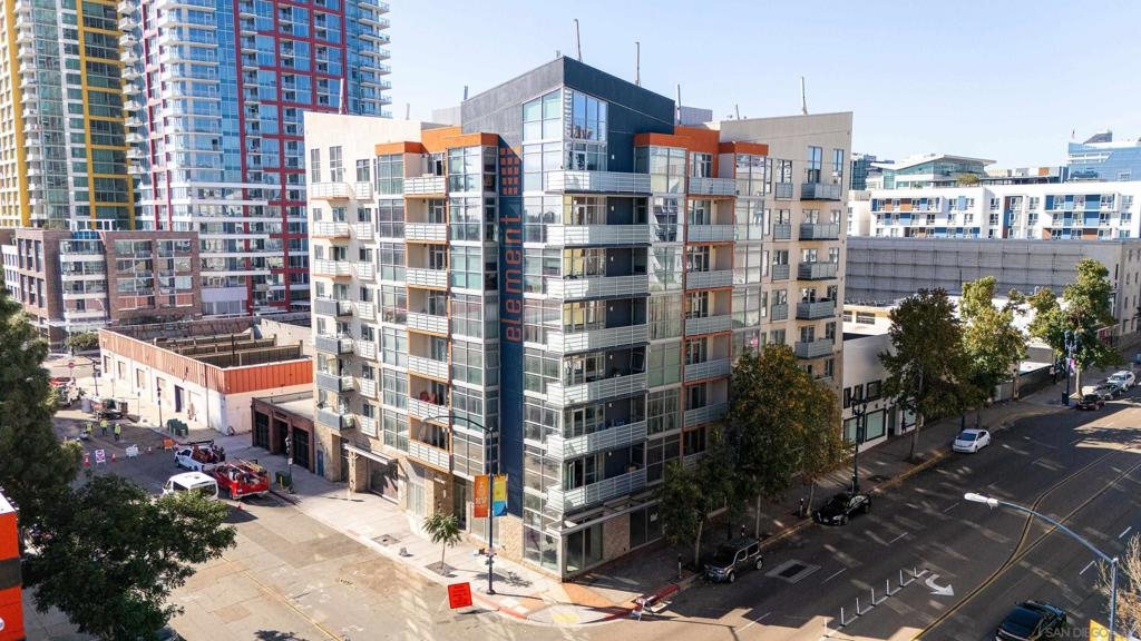 Discover modern luxury in a fully remodeled 7th-floor condo showcasing breath-taking panoramic views. Floor-to-ceiling windows, frame stunning vistas from the Coronado Bay Bridge to sweeping city views spanning east, north, & west. A thoughtful floorplan features two spacious bedrooms, each w/ private updated bathrooms, connected by inviting open living space. Recent upgrades include new laminate floors, concrete countertops, modern cabinetry, remodeled bathroom vanities, & premium appliances. In-unit laundry, LARGE storage, two tandem parking spaces complete this urban retreat. Prime location near Albertsons, boutique shops, cafes, The Courtyard, UCSD Extension, & Petco Park. VA-approved Element HOA (000934) Remodeled modern, fully automated 7th Floor condo w/functional floorplan, Views, 2 comfortably proportioned bedrooms, each w/dedicated bathrooms & a great open living space between w/ floor to ceiling windows, new laminate floors, quartze counter tops, cabinets, Matt black fixtures throughout including Kohler bathroom faucets, remodeled bathroom w/Bidet toilets & illuminated mirror w/fog control, matte black WiFi capable appliances, in-unit laundry, LARGE storage, 2 TANDEM PARKING SPACES! 7th Floor spectacular 270 degree views from expansive balcony, ending w/ Coronado bridge.! Near Albertsons, shops, cafe's, The Quartyard, UCSD Extension, Petco Park &more. VA Approved Element HOA (000934) Assumable VA loan at 2.25% for eligable Vets.
