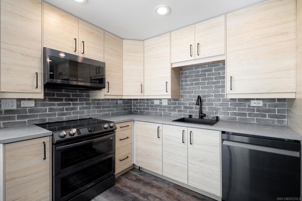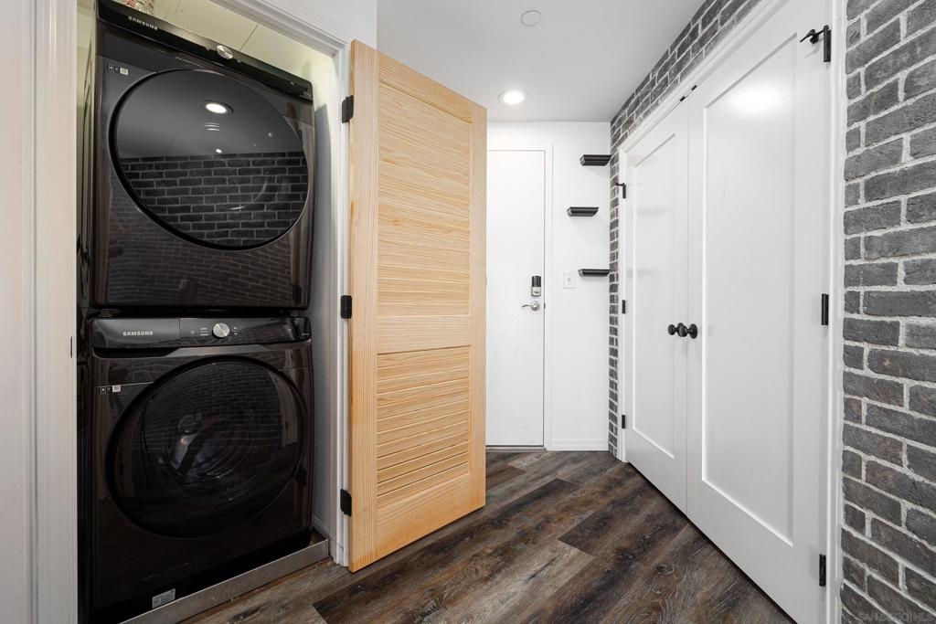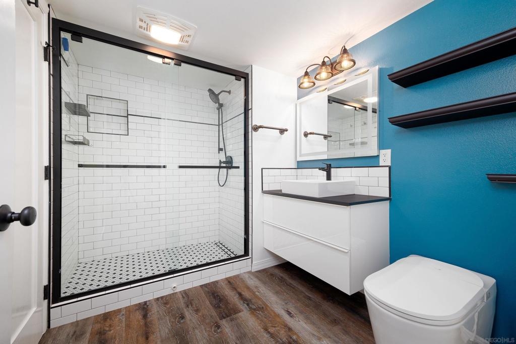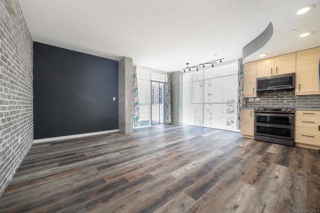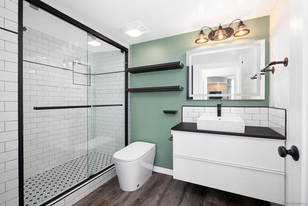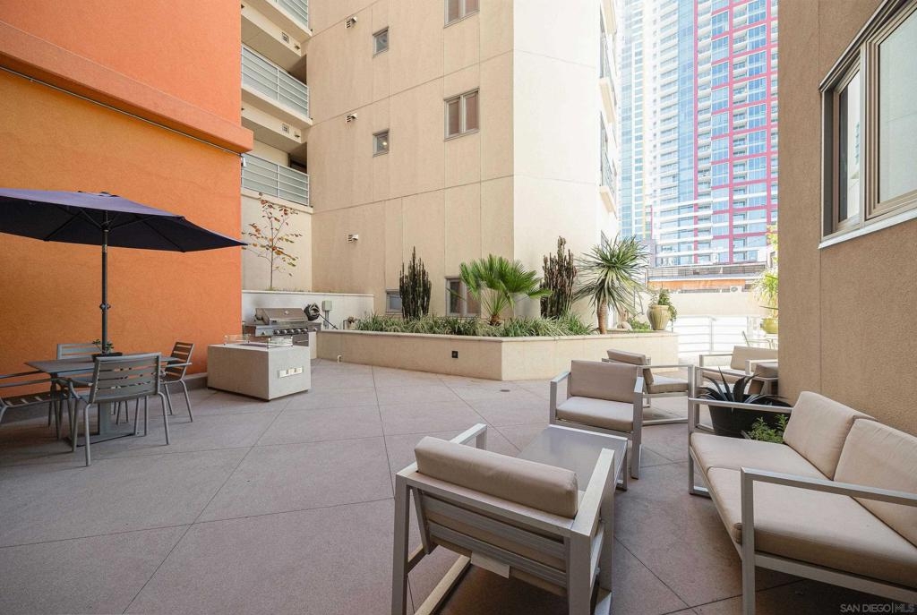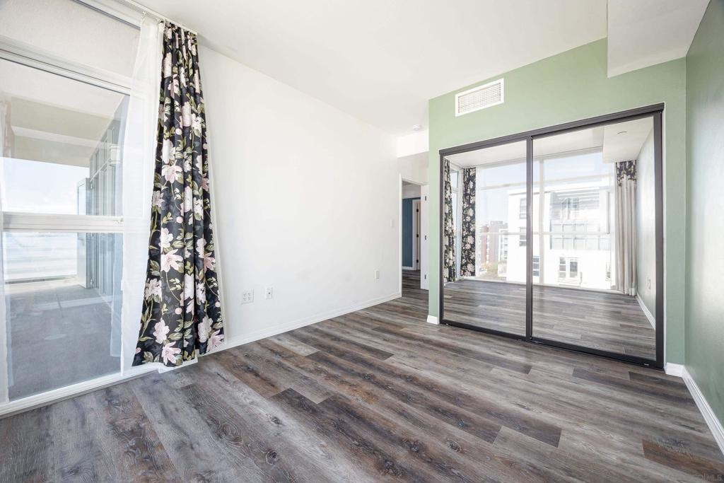 Discover modern luxury in a fully remodeled 7th-floor condo showcasing breath-taking panoramic views. Floor-to-ceiling windows, frame stunning vistas from the Coronado Bay Bridge to sweeping city views spanning east, north, & west. A thoughtful floorplan features two spacious bedrooms, each w/ private updated bathrooms, connected by inviting open living space. Recent upgrades include new laminate floors, concrete countertops, modern cabinetry, remodeled bathroom vanities, & premium appliances. In-unit laundry, LARGE storage, two tandem parking spaces complete this urban retreat. Prime location near Albertsons, boutique shops, cafes, The Courtyard, UCSD Extension, & Petco Park. VA-approved Element HOA (000934) Remodeled modern, fully automated 7th Floor condo w/functional floorplan, Views, 2 comfortably proportioned bedrooms, each w/dedicated bathrooms & a great open living space between w/ floor to ceiling windows, new laminate floors, quartze counter tops, cabinets, Matt black fixtures throughout including Kohler bathroom faucets, remodeled bathroom w/Bidet toilets & illuminated mirror w/fog control, matte black WiFi capable appliances, in-unit laundry, LARGE storage, 2 TANDEM PARKING SPACES! 7th Floor spectacular 270 degree views from expansive balcony, ending w/ Coronado bridge.! Near Albertsons, shops, cafe's, The Quartyard, UCSD Extension, Petco Park &more. VA Approved Element HOA (000934) Assumable VA loan at 2.25% for eligable Vets.