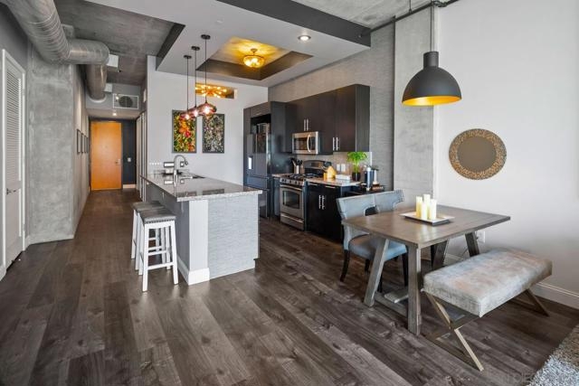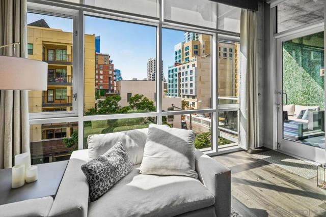 Sleek & stylish updated home at Fahrenheit! Enjoy an open floor plan, contemporary palette, modern finishes, soaring ceilings, & west-facing floor-to-ceiling windows! A private, oversized balcony adjoins both the living room & primary suite, allowing you to extend the living space outdoors. The kitchen flows effortlessly into the main living area, perfect for entertaining, & offers granite countertops & stainless appliances. You will find an updated bathroom & walk-in closet in the serene primary suite. The den is perfect for an office or second bedroom complete with a murphy bed! Enjoy the best of Downtown living with Petco park, restaurants & entertainment right outside your door + easy access to the Gaslamp, Marina District & more! Equipment: Dryer, Washer Sewer: Sewer Connected Topography: LL