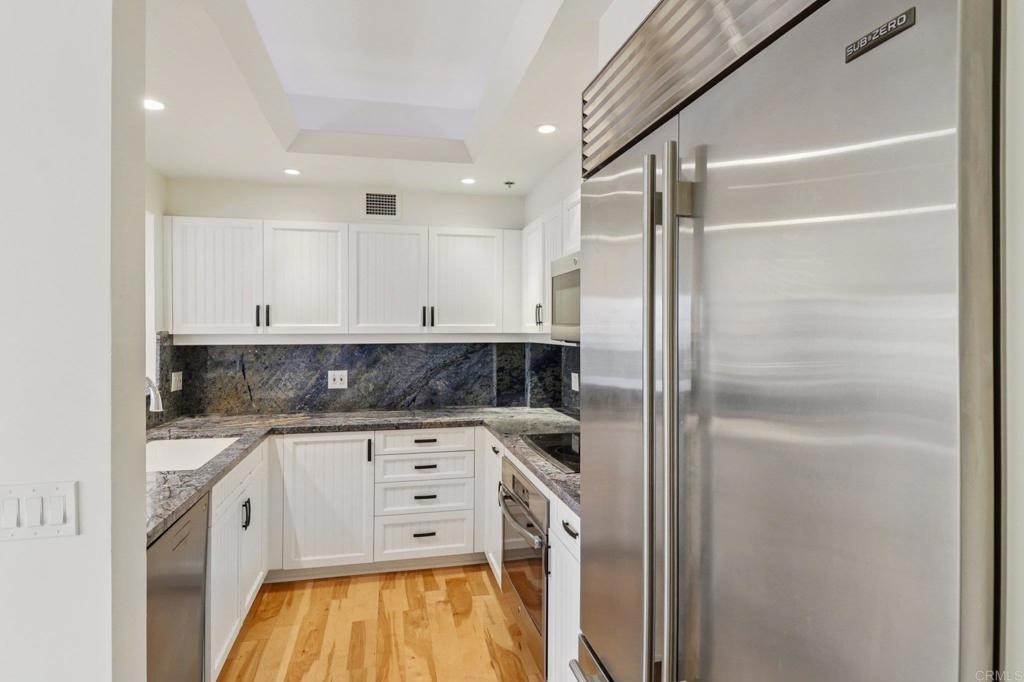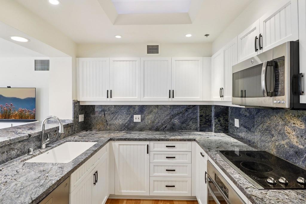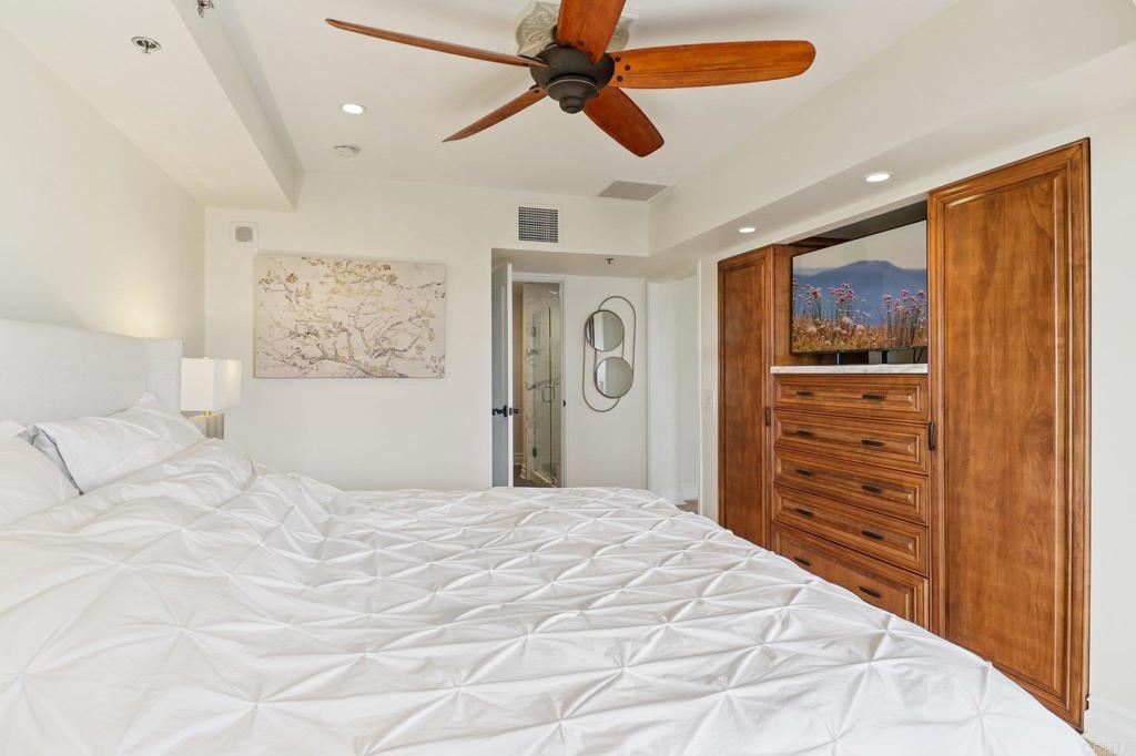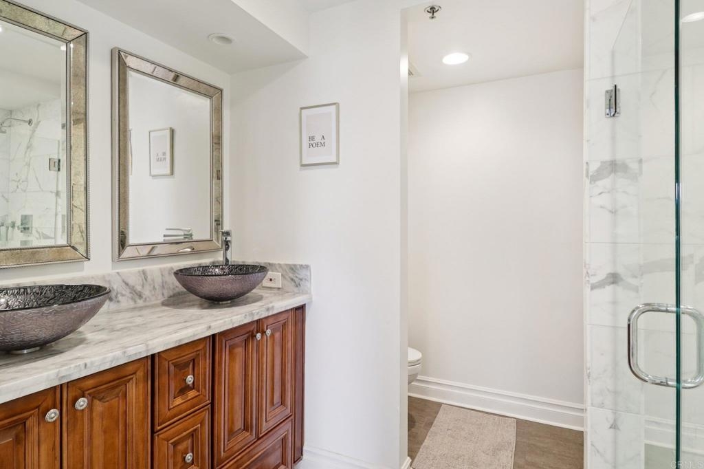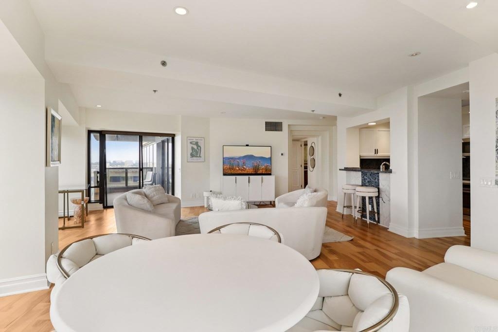 Remodeled 11th Floor Harbor Club Residence with Stunning Bay & City Views Beautifully upgraded residence in the prestigious Harbor Club, located on the 11th floor with spectacular views of San Diego Bay, Coronado Bridge, and the city skyline. This light-filled 1BR/1BA unit features hardwood flooring throughout, recessed lighting, and floor-to-ceiling windows with motorized roller shades. The modern kitchen has been fully remodeled with GE stainless steel appliances, Amazonite countertops, and a breakfast bar. The updated bathroom includes a frameless glass shower with marble wall surround and dual vessel sinks. The spacious primary bedroom offers custom built-in cabinetry, an entertainment center, and direct access to the southeast-facing private balcony. In-unit stackable washer/dryer included. Harbor Club offers luxury amenities including 24-hour front desk/security, a fully equipped fitness center, a beautifully landscaped pool deck with 95-foot lap pool and spa, club room, business center, and more. Prime Marina District location with walkability to Petco Park, Gaslamp Quarter, Embarcadero, dining, shopping, and public transportation.
