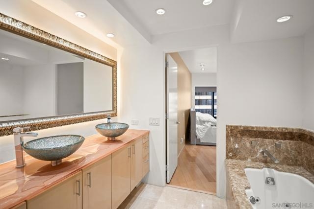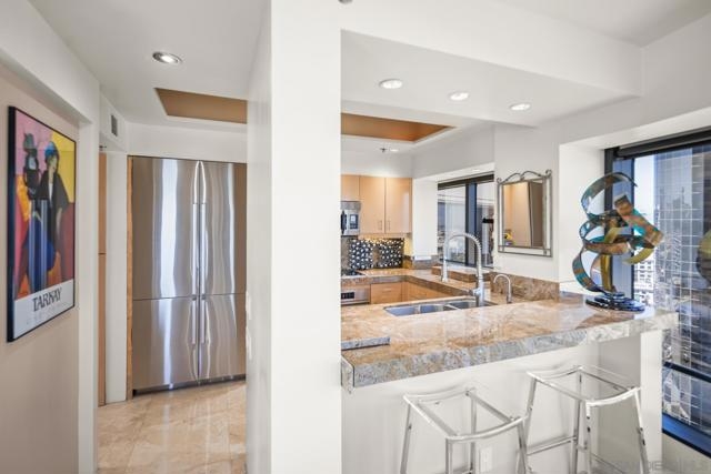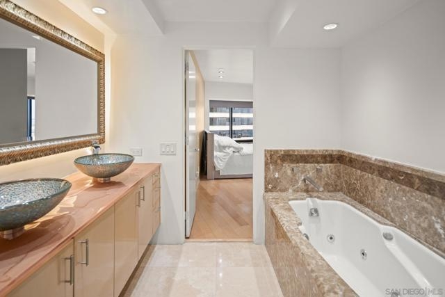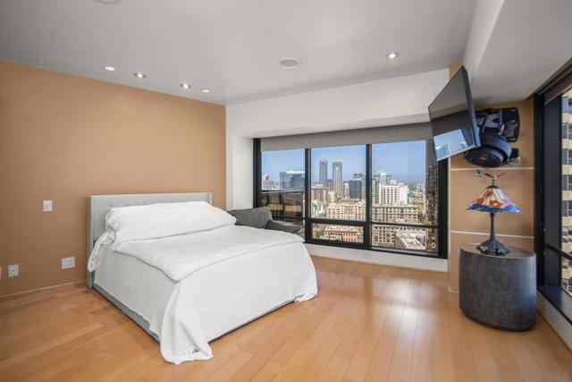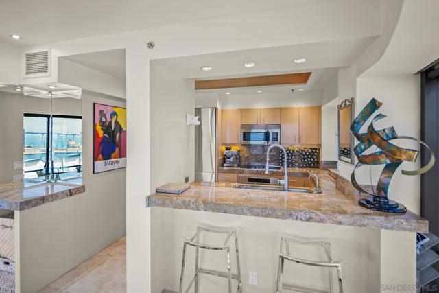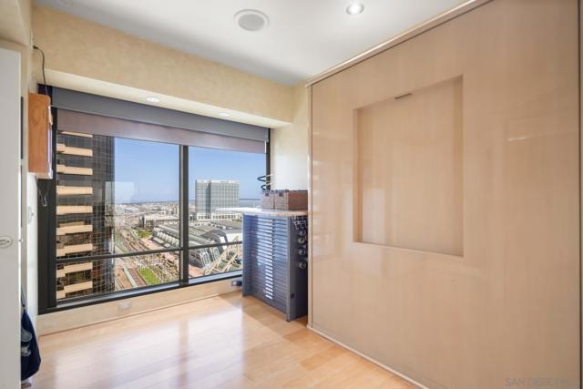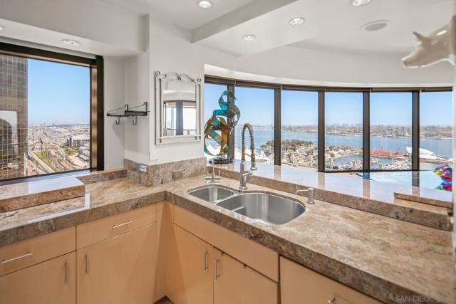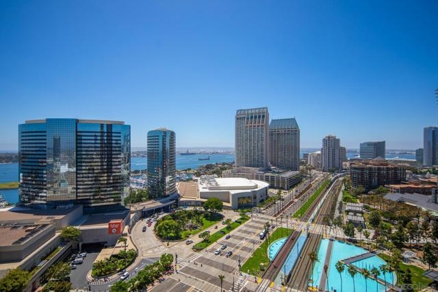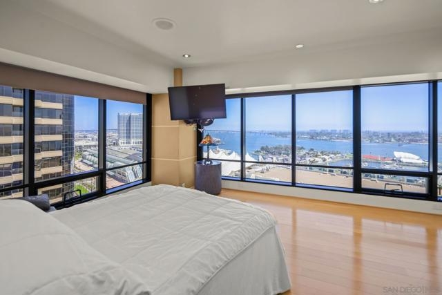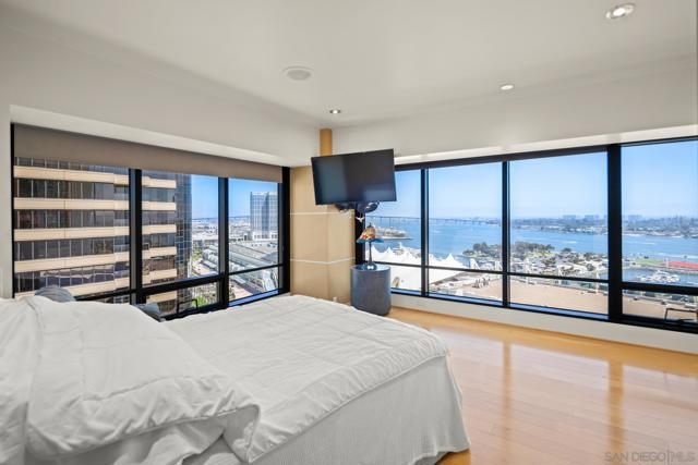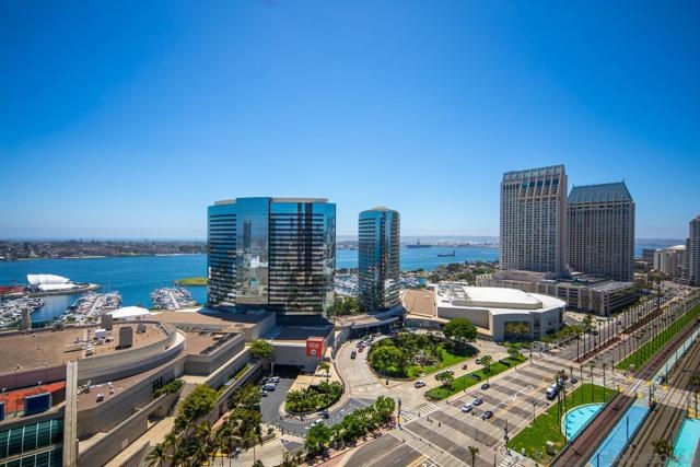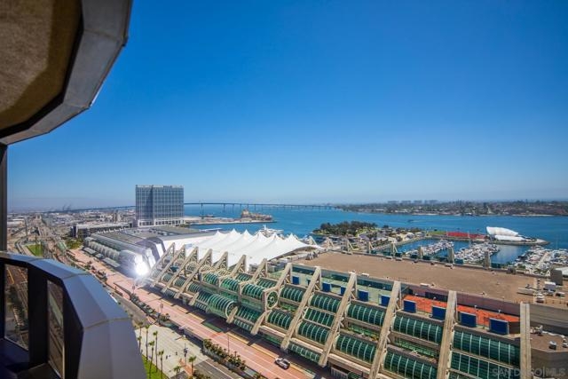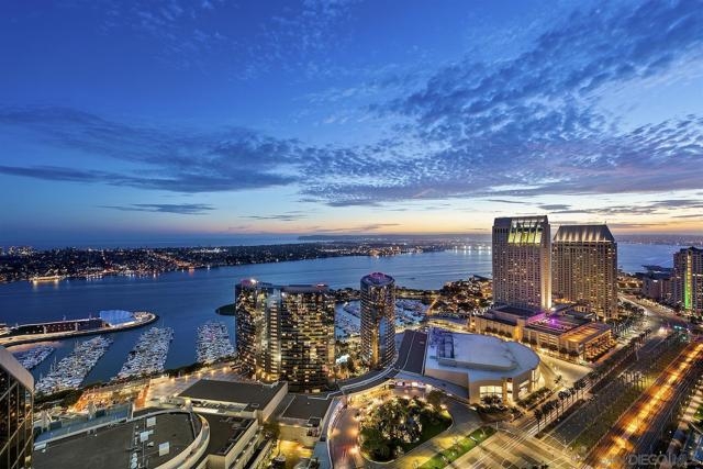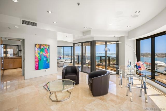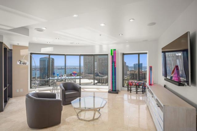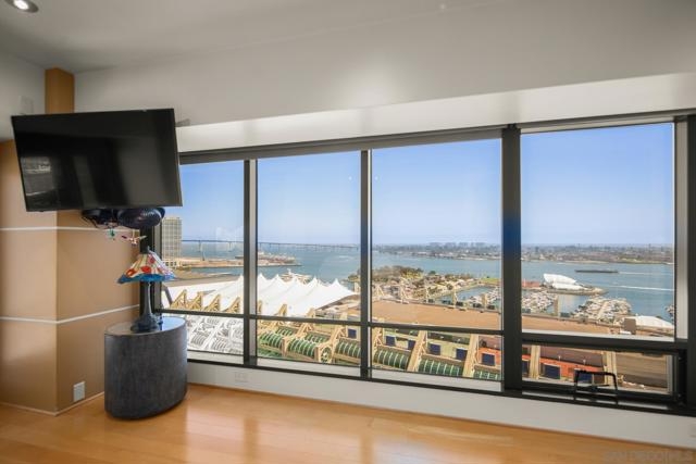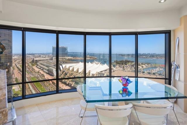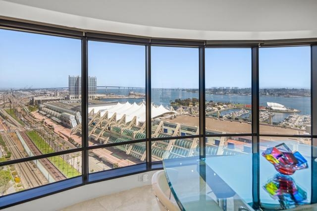 Welcome to one of the most coveted residences in the prestigious Harbor Club — the highly sought-after Bubble Unit, offering truly breathtaking panoramic views of the ocean, bay, harbor, downtown skyline, mountains, and the iconic Coronado Bridge. Enjoy luxury living at its finest in one of Downtown San Diego’s original high-rise gems. This exquisite home is wrapped in floor-to-ceiling windows, bathing the interior in natural light while framing unforgettable vistas from nearly every room. Step outside to a spacious view balcony — perfect for morning coffee, evening sunsets, or simply soaking in the sights and sounds of the city and waterfront below. Thoughtfully designed with elegant finishes throughout, the residence features a gourmet kitchen ideal for entertaining, and formal living and dining areas that exude sophistication and comfort. The expansive primary suite is a serene retreat with sweeping views and a spa-inspired ensuite bath, complete with a soaking tub and separate walk-in shower. A spacious guest bedroom with stunning views and a murphy bed plus a stylish second bath with a walk-in shower completes this exceptional floorplan. Harbor Club is a secure, private community offering full-service luxury amenities, including 24-hour concierge, on-site property management, and security. Recent upgrades to the resort-style common areas include a sparkling pool, spa, sauna, state-of-the-art fitness center, clubhouse, BBQ areas, firepits, and beautifully landscaped sitting areas. Perfectly situated in the vibrant Marina District, you’re just steps from Seaport Village, the Rady Shell, Ruocco Park, fine dining, boutique shopping, and convenient access to the trolley and train. This home offers the ultimate combination of peaceful waterfront living and the excitement of downtown just outside your door.