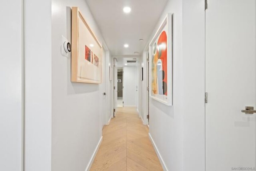 Experience refined luxury in this rarely available, beautifully updated, meticulously maintained residence in Harbor Club’s iconic East Tower, one of downtown San Diego’s premier high-rise communities. This expansive 2-bedroom, 2-bath home offers approximately 1,572 sq ft of thoughtfully designed living space, highlighted by floor-to-ceiling windows that capture natural light from sunrise to sunset and showcase sweeping panoramic views of the city skyline, San Diego Bay, Marina, and Coronado Bridge. Sophisticated finishes elevate daily living, including a curated designer color palette, hardwood flooring, quartz countertops, custom cabinetry throughout, marble bathroom flooring, recessed lighting, and a chef-inspired kitchen that flows seamlessly into generous living and dining areas—ideal for entertaining. The primary suite is a serene retreat with stunning Marina views and a spa-style bath. The guest bedroom and living room open to an expansive private balcony, extending the living space outdoors. Harbor Club residents enjoy resort-style amenities including a 95-foot lap pool, spa, sauna, fitness center, landscaped pool deck with BBQs and fire pits, community lounge and clubroom, concierge service, and a 24-hour staffed lobby. Ideally located in the Marina District, this exceptional home offers walkable access to the bayfront, dining, entertainment, and iconic destinations such as Seaport Village, The Rady Shell, USS Midway Museum, Petco Park, and the Convention Center. With only three residences per floor, this is a rare opportunity for premier downtown living.